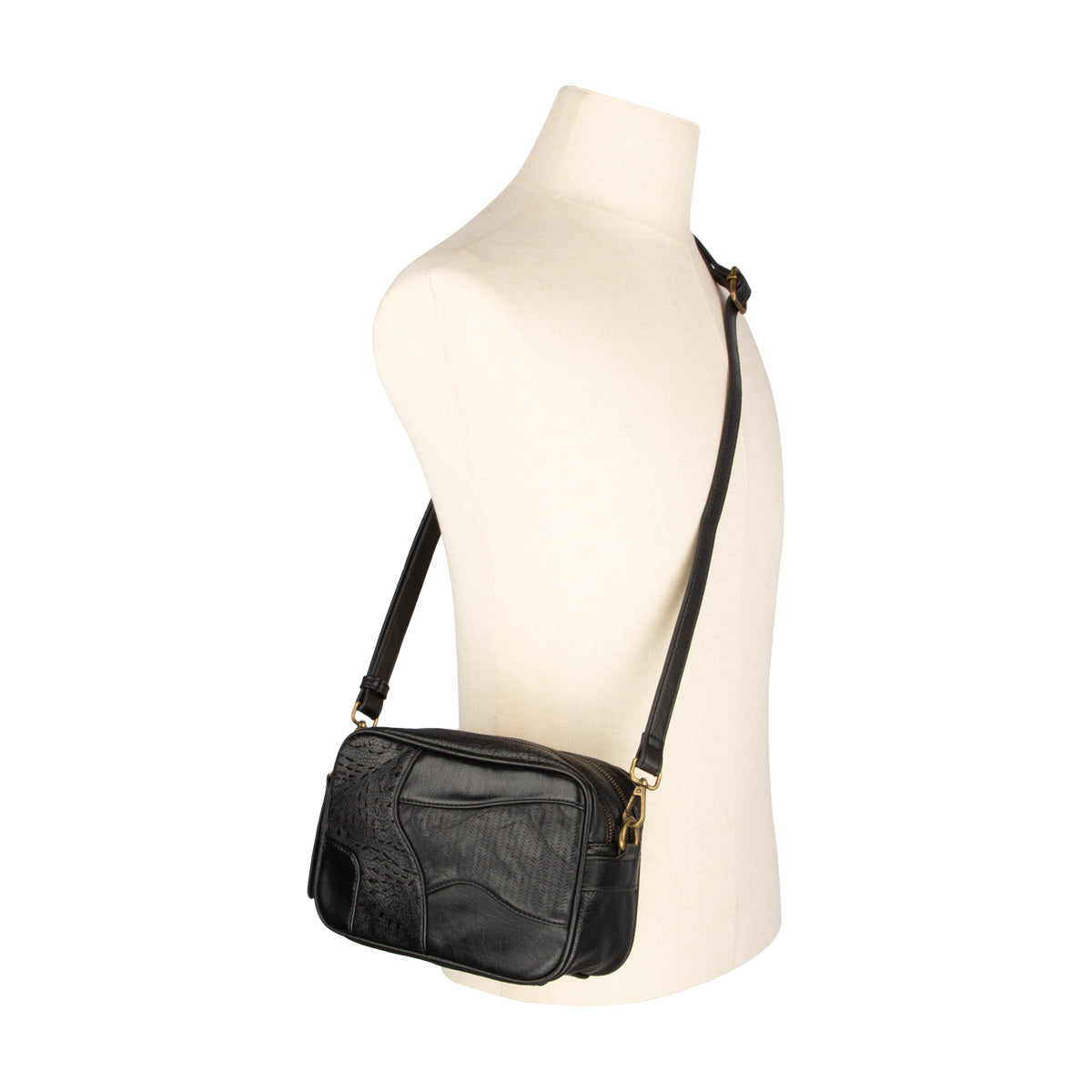 Ce sac à main Alberto pour femmes est doté d'une bandoulière ajustable et amovible, offrant une grande flexibilité d'utilisation. Conçu en cuir synthétique, il est à la fois pratique et stylé, avec des perforations décoratives sur le devant pour une touche de raffinement. Ses deux compartiments à fermeture éclair permettent une organisation optimale, parfait pour transporter vos essentiels au quotidien. Ce modèle allie parfaitement esthétique et praticité.