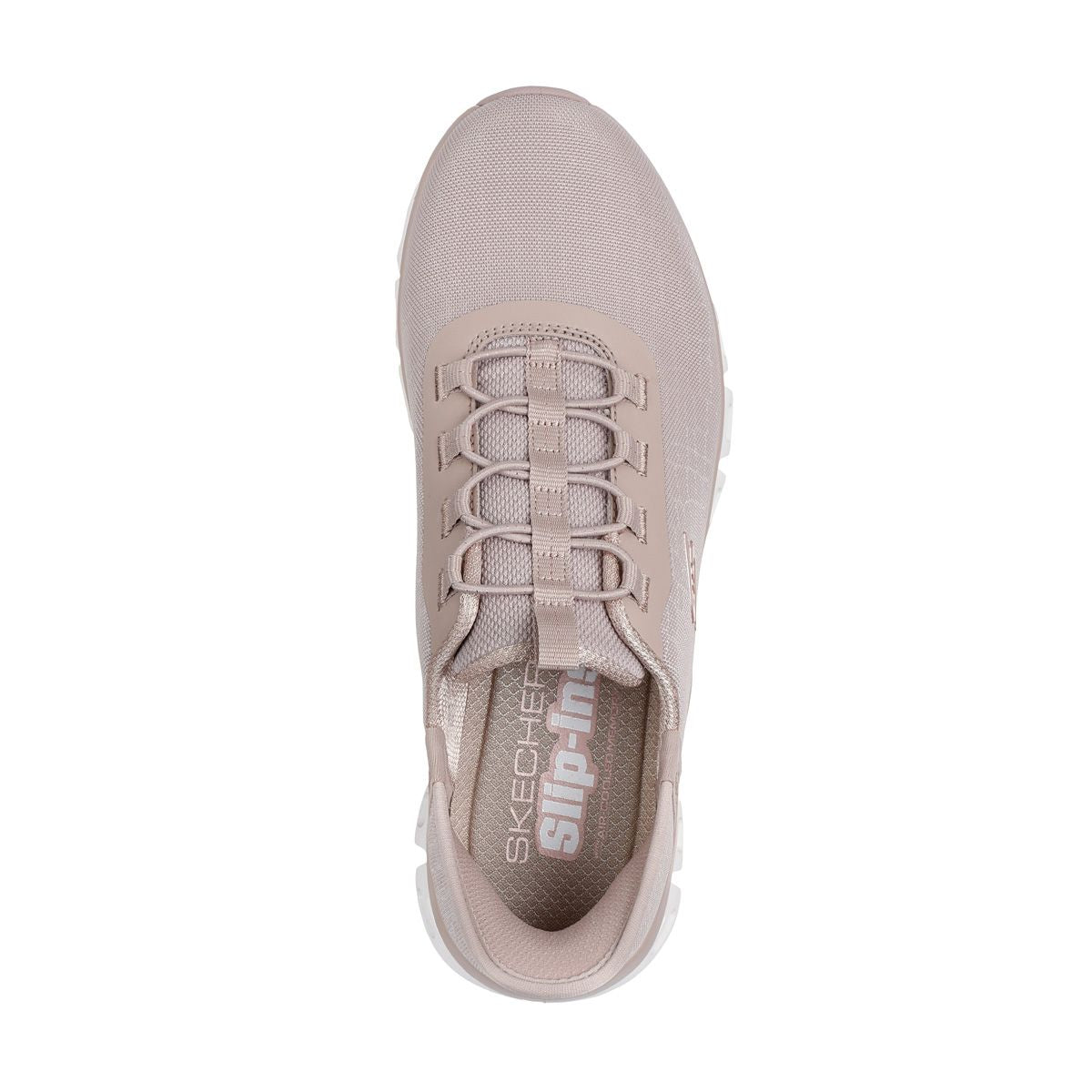 Ces souliers à enfiler Skechers Hands Free Slip-ins® pour femmes sont conçus pour un ajustement facile et un confort optimal tout au long de la journée. Le coussinet de talon exclusif Heel Pillow™ maintient votre pied bien en place, tandis que la semelle intercalaire géométrique Glide-Step® procure un élan naturel à chaque pas. La semelle intérieure coussinée Skechers Air-Cooled Memory Foam® offre un amorti supérieur et une ventilation accrue. Les lacets Skechers No Tie Fit™ restent toujours en place, éliminant le besoin de les renouer. Avec leur empeigne en jersey chiné extensible et leur semelle extérieure antidérapante flexible, ces souliers combinent praticité et style décontracté.