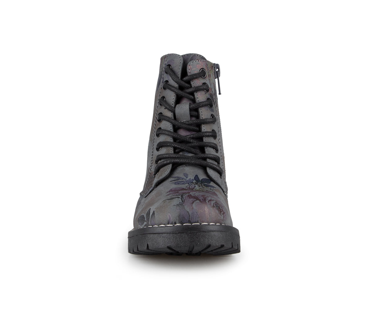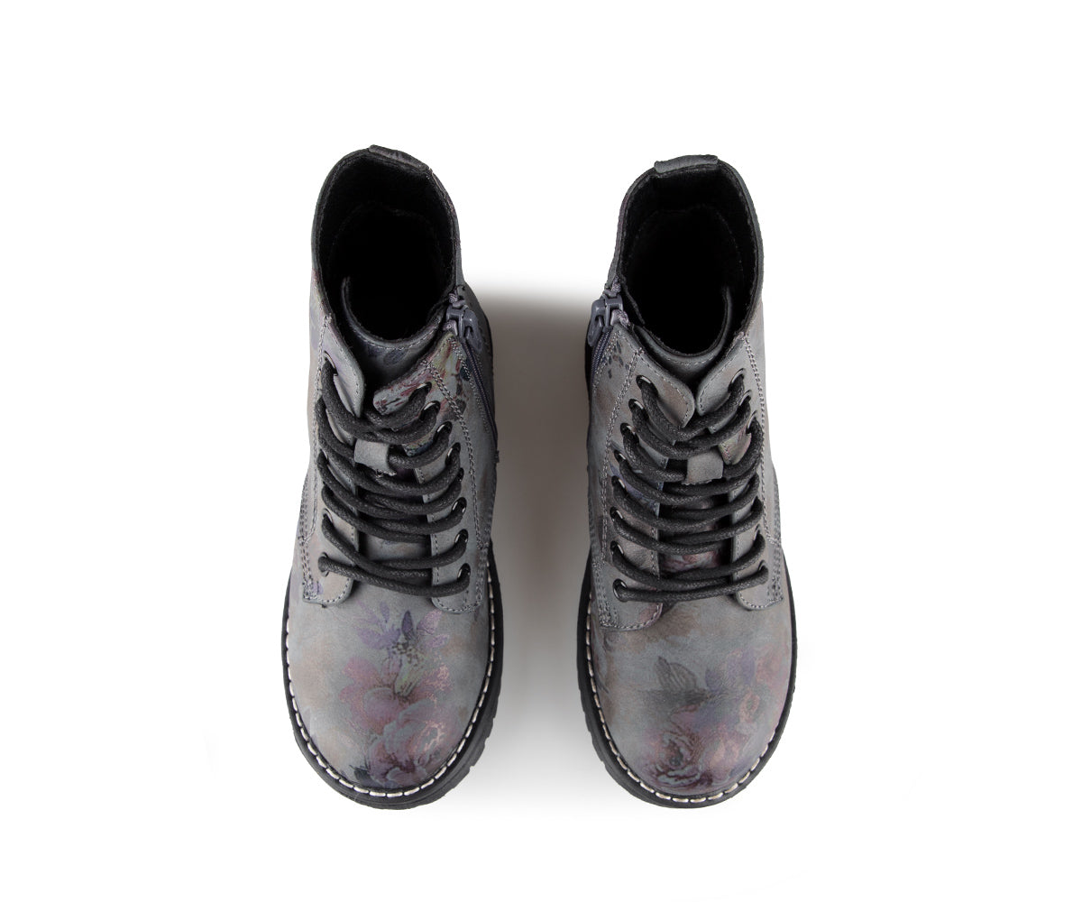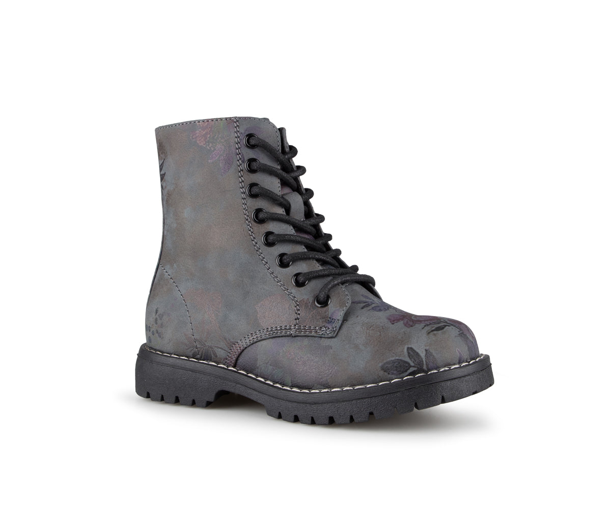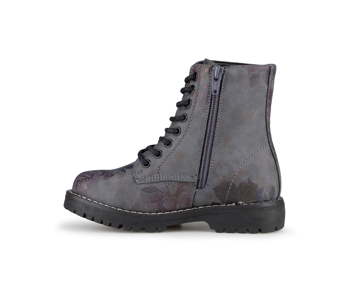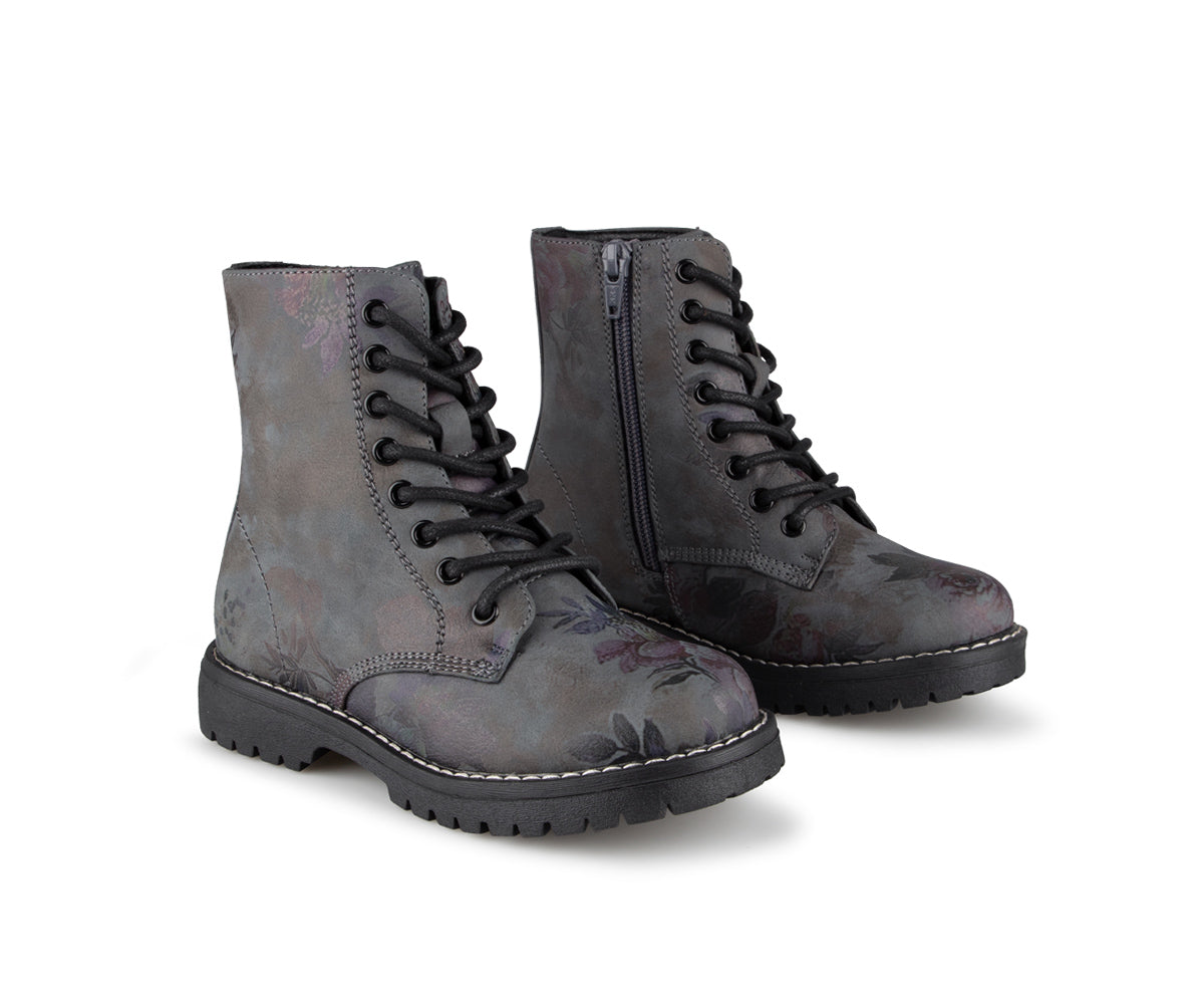 Les bottillons courts Alberto pour filles arborent une élégante empeigne imprimée fleurie et une fermeture éclair YKK pour un enfilage facile. Ils sont dotés d'un talon plat et d'une doublure en fourrure douce noire, offrant un confort optimal. La semelle intérieure en feutre et la semelle extérieure en TPR assurent une bonne adhérence et durabilité, parfaites pour les journées actives.