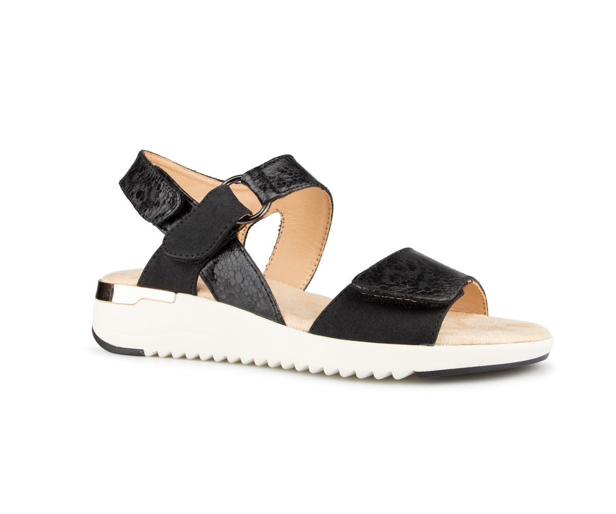 Ces sandales Alberto pour femmes en cuir synthétique sont pourvues de trois velcros sur l'empeigne, offrant un ajustement personnalisé et sécurisé. Avec une largeur B, elles assurent un confort optimal pour toutes vos activités estivales. Le talon compensé de 1.5 pouce ajoute une touche d'élégance tout en maintenant un bon amorti. Une combinaison parfaite de style, de confort et de praticité pour vos pieds.