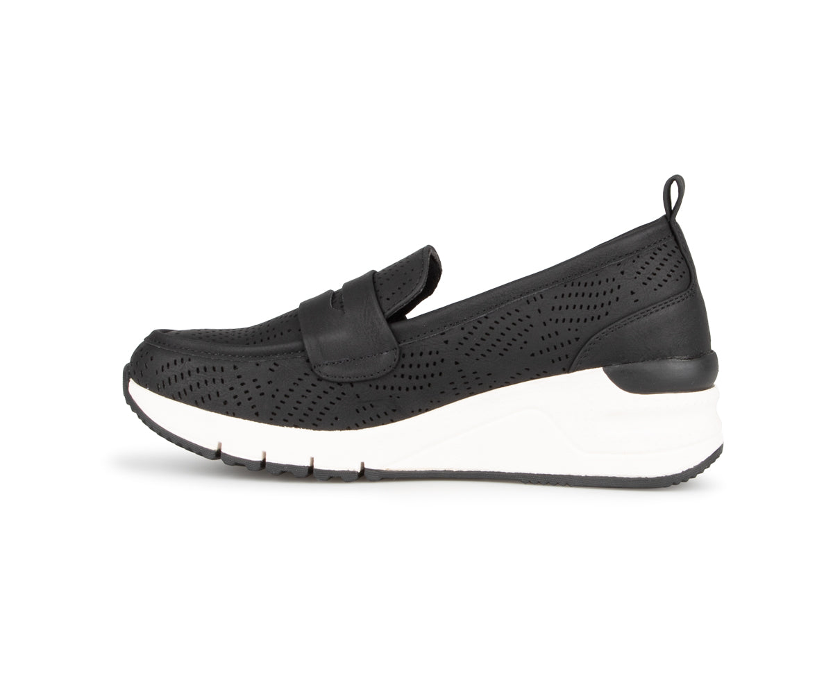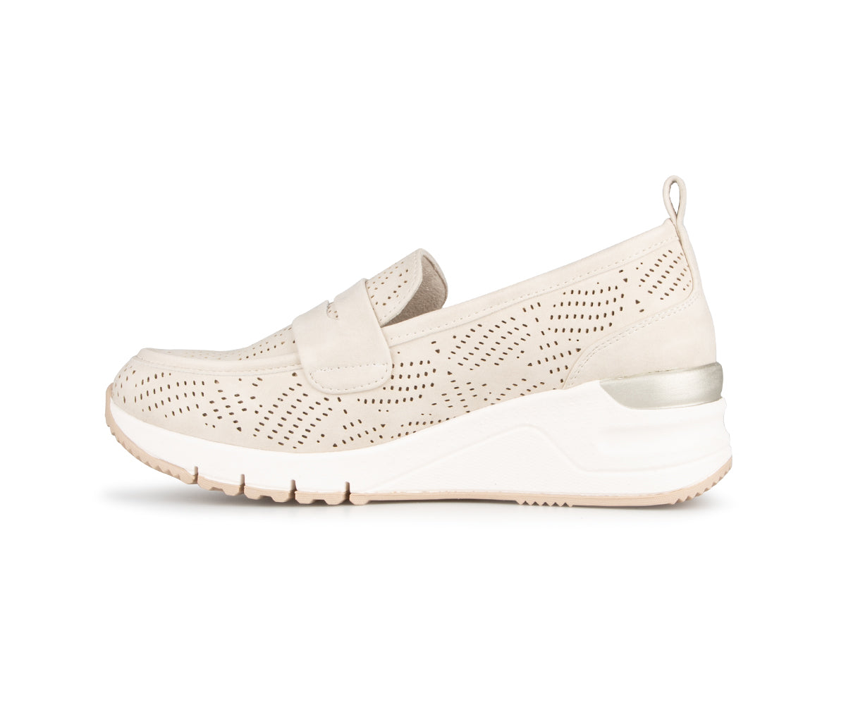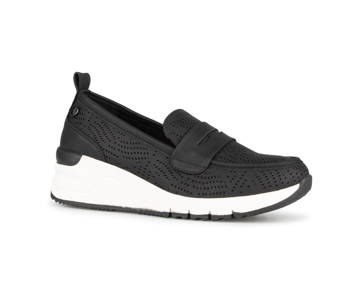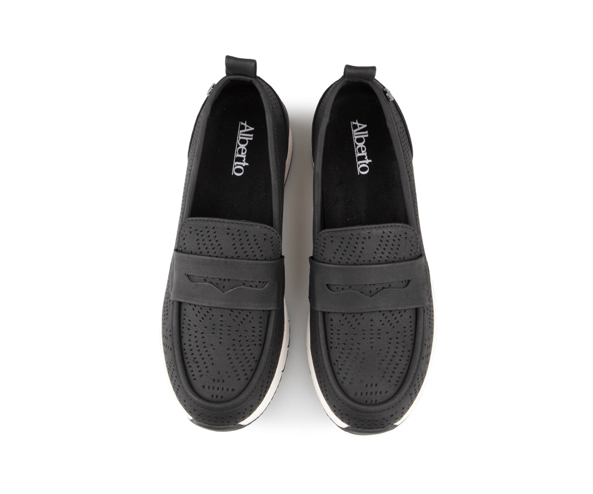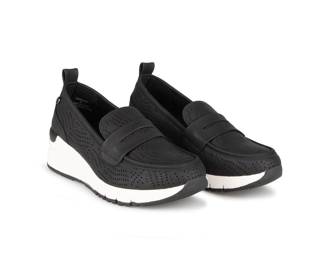 Ces souliers à enfiler Alberto pour femme allient style et confort avec leur talon compensé de 2 pouces. Fabriqués en cuir synthétique perforé et cuir, ils offrent une respirabilité optimale tout en restant élégants. La semelle intérieure amovible et la semelle Tamaris en EVA-caoutchouc assurent un amorti exceptionnel pour un confort prolongé. Un choix parfait pour les journées actives sans compromettre le style.