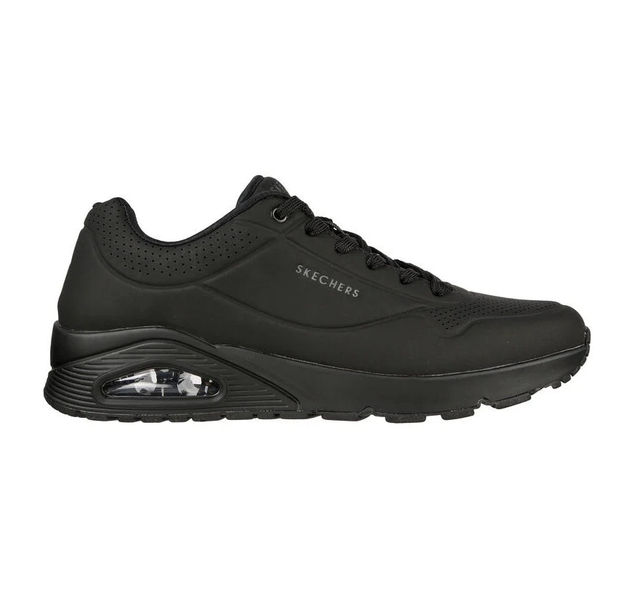 Offrant un confort optimal, ces souliers Skechers pour homme sont équipés d'une empeigne en cuir synthétique texturé et lisse, avec des surpiqûres et des perforations décoratives pour un style moderne. La semelle intérieure Air Cooled Memory Foam et la semelle intercalaire à coussinage d'air visible (Skech-Air) garantissent un confort durable et un amorti réactif. La tige perforée en matière synthétique durabuck lisse améliore la respirabilité, tandis que la semelle extérieure antidérapante assure une adhérence fiable.