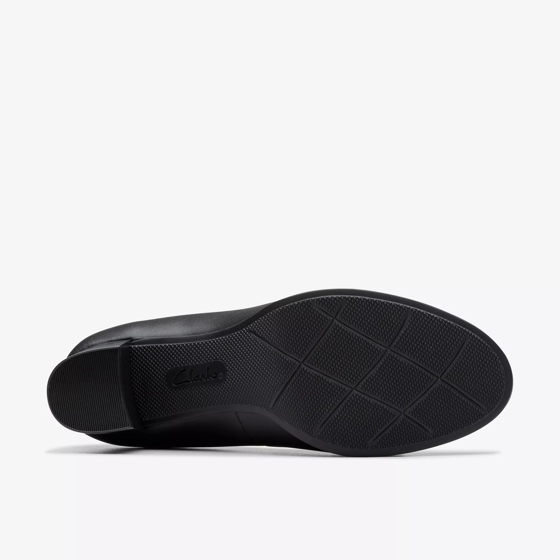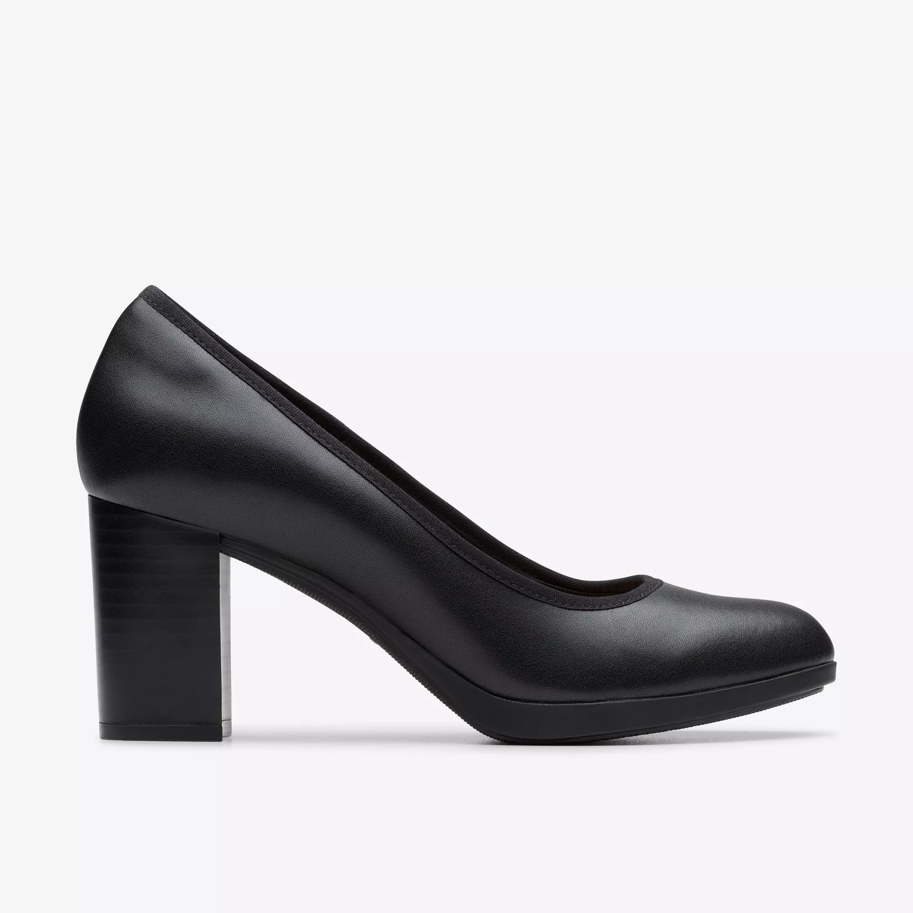 Ces chaussures à talon Clarks pour femmes allient élégance et confort pour toutes vos occasions. La tige en cuir noir de première qualité offre durabilité et style raffiné. L’assise plantaire en mousse Ultimate Comfort procure un amorti durable, tandis que les lignes supérieures rembourrées ajoutent soutien et confort tout au long de la journée. La doublure en tissu douce et respirante complète le confort, et la semelle flexible en caoutchouc thermoplastique (TPR) assure une adhérence optimale. Hauteur du talon : 3 pouces, parfaite pour allier élégance et stabilité.