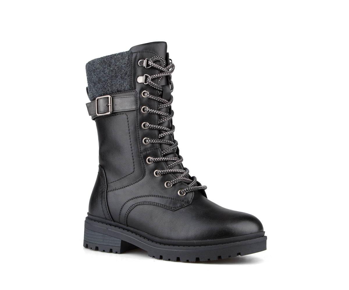 Ces bottes d’hiver West Way pour femmes allient chaleur et confort pour affronter la saison froide. Fabriquées en cuir synthétique et feutre, elles sont doublées à 50 % en laine pour plus de douceur. La semelle intérieure en feutre offre un bon amortissement, tandis que la semelle extérieure en caoutchouc avec Artic Grip assure une adhérence optimale sur les surfaces glissantes. Les lacets combinés à la fermeture éclair YKK facilitent l’enfilage et le maintien du pied.