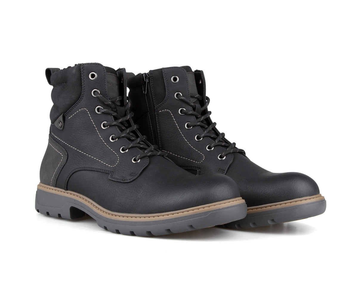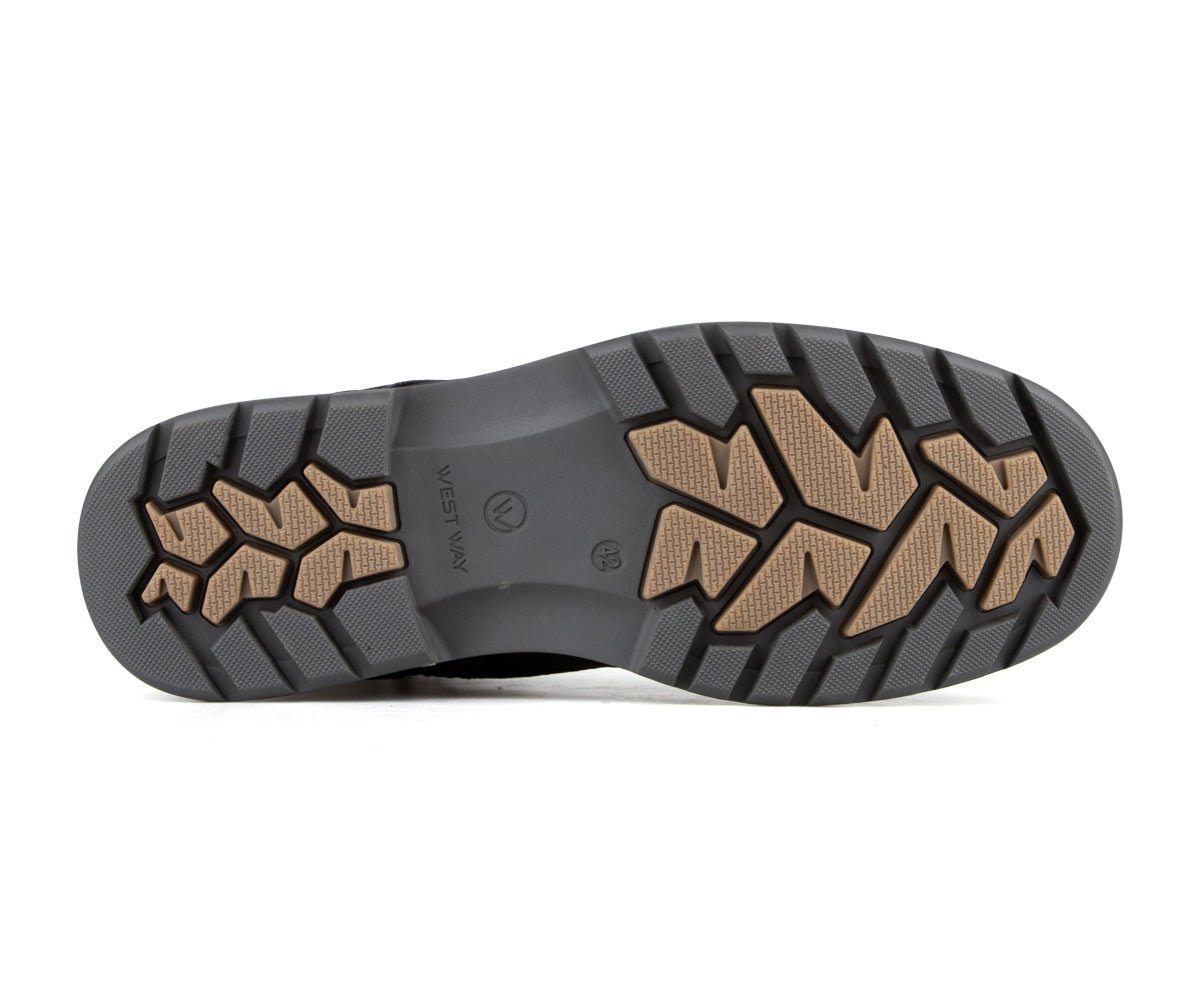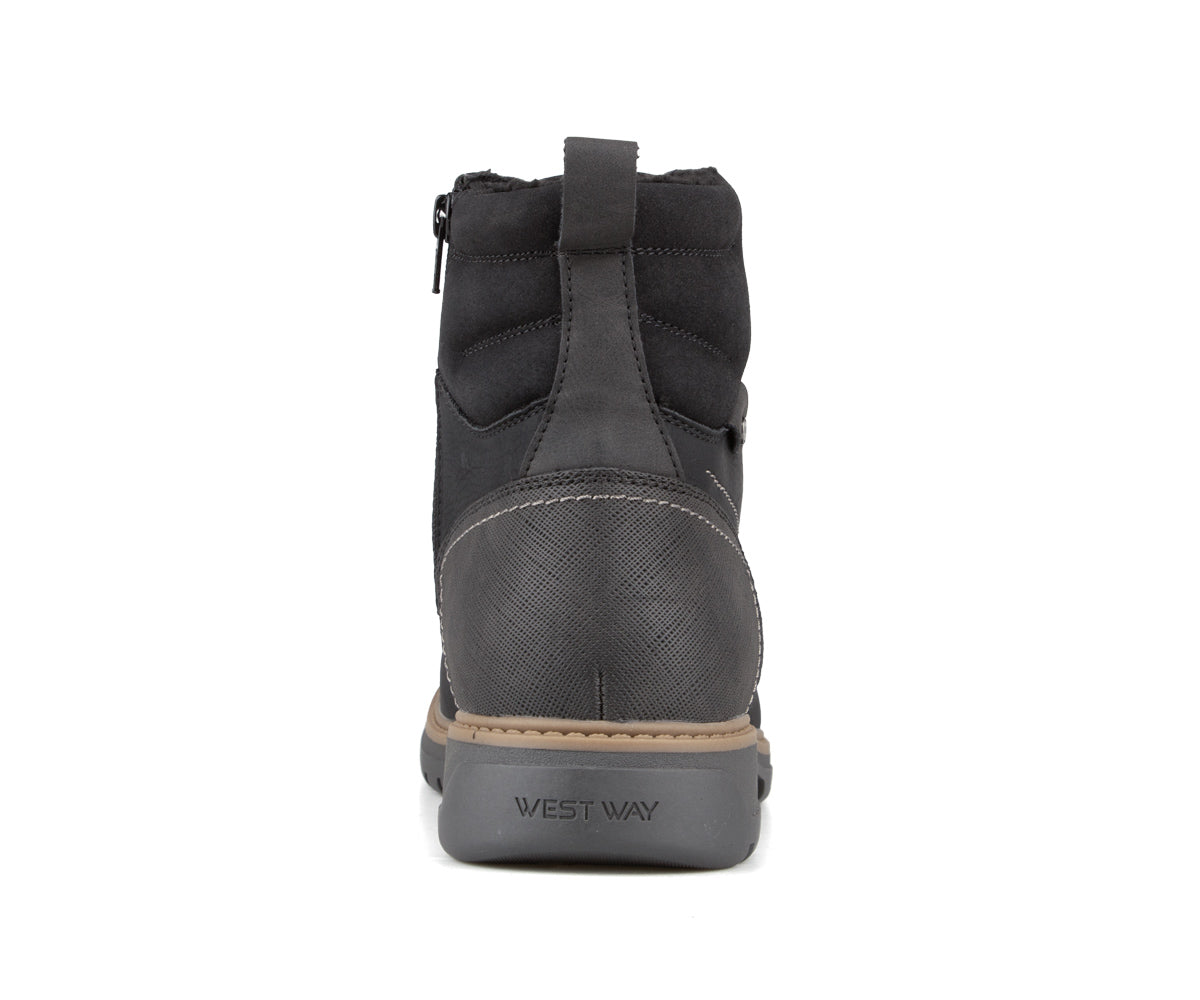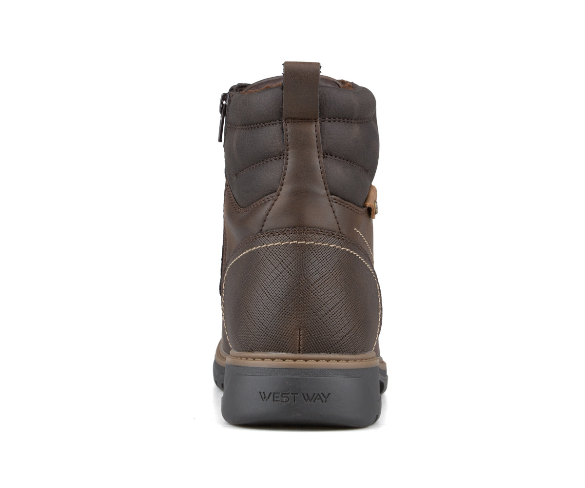 Ces bottillons West Way pour hommes offrent confort, chaleur et praticité pour l’hiver. Fabriqués en cuir synthétique et doublés en matière polaire, ils gardent vos pieds au chaud. La semelle intérieure amovible en feutre assure confort et hygiène, tandis que la semelle extérieure en TPR offre adhérence et durabilité. La combinaison fermeture éclair et lacets facilite l’enfilage et garantit un bon maintien, avec un excellent amortissement pour un confort prolongé au quotidien.