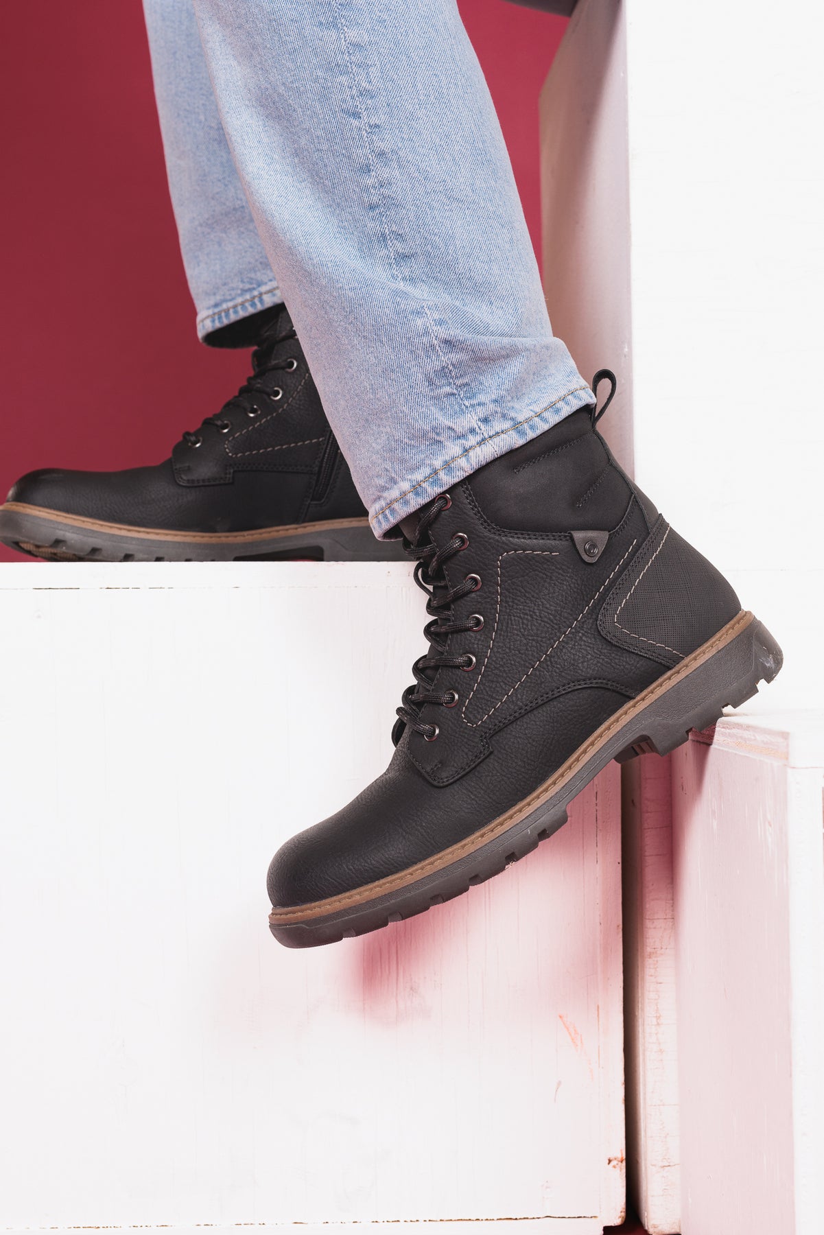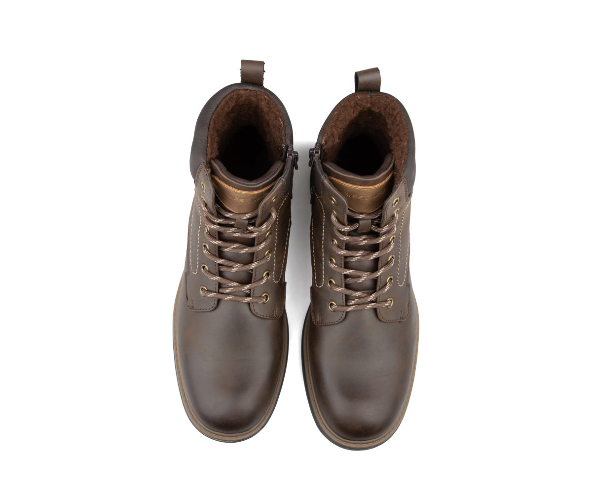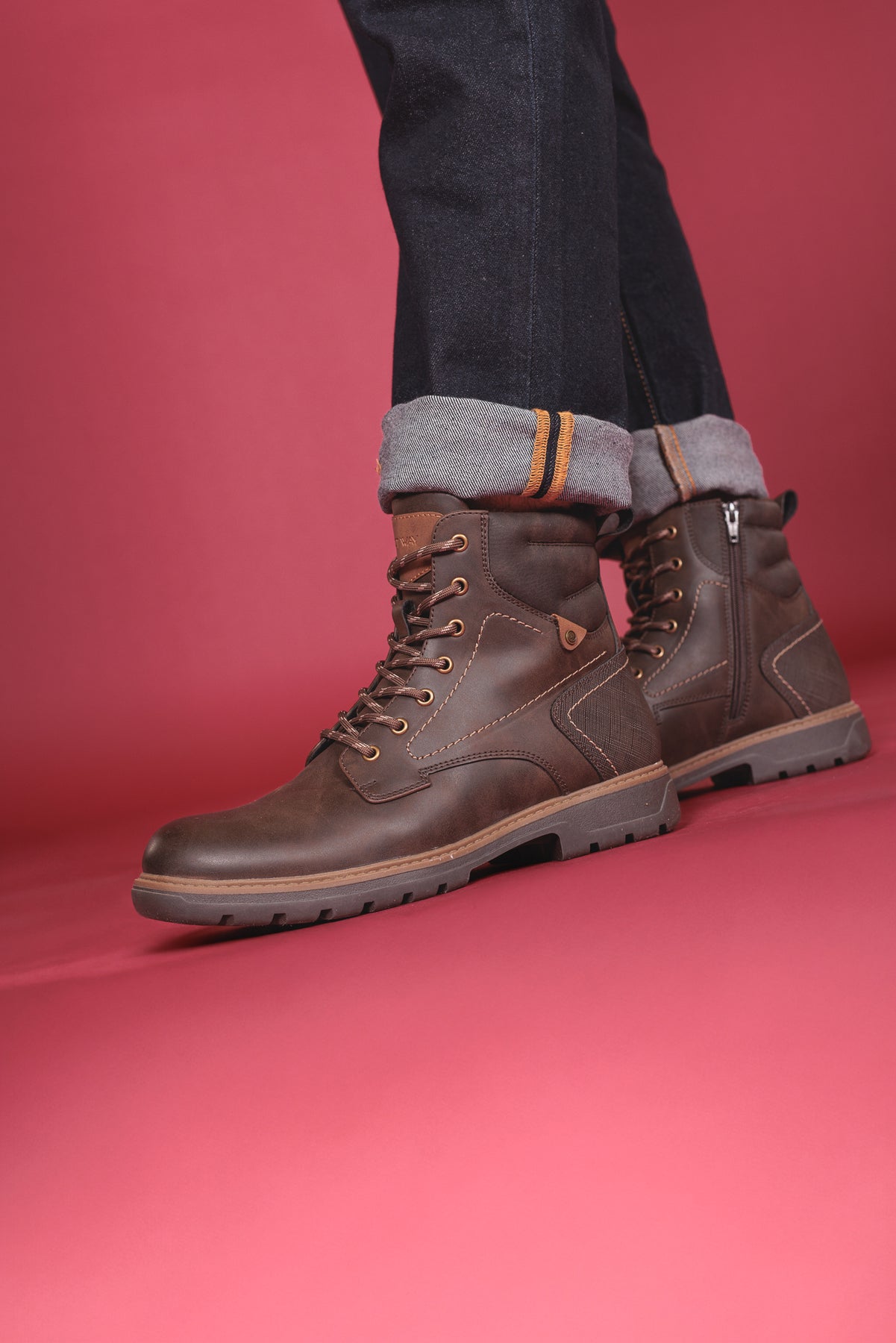 Ces bottillons West Way pour hommes offrent confort, chaleur et praticité pour l’hiver. Fabriqués en cuir synthétique et doublés en matière polaire, ils gardent vos pieds au chaud. La semelle intérieure amovible en feutre assure confort et hygiène, tandis que la semelle extérieure en TPR offre adhérence et durabilité. La combinaison fermeture éclair et lacets facilite l’enfilage et garantit un bon maintien, avec un excellent amortissement pour un confort prolongé au quotidien.
