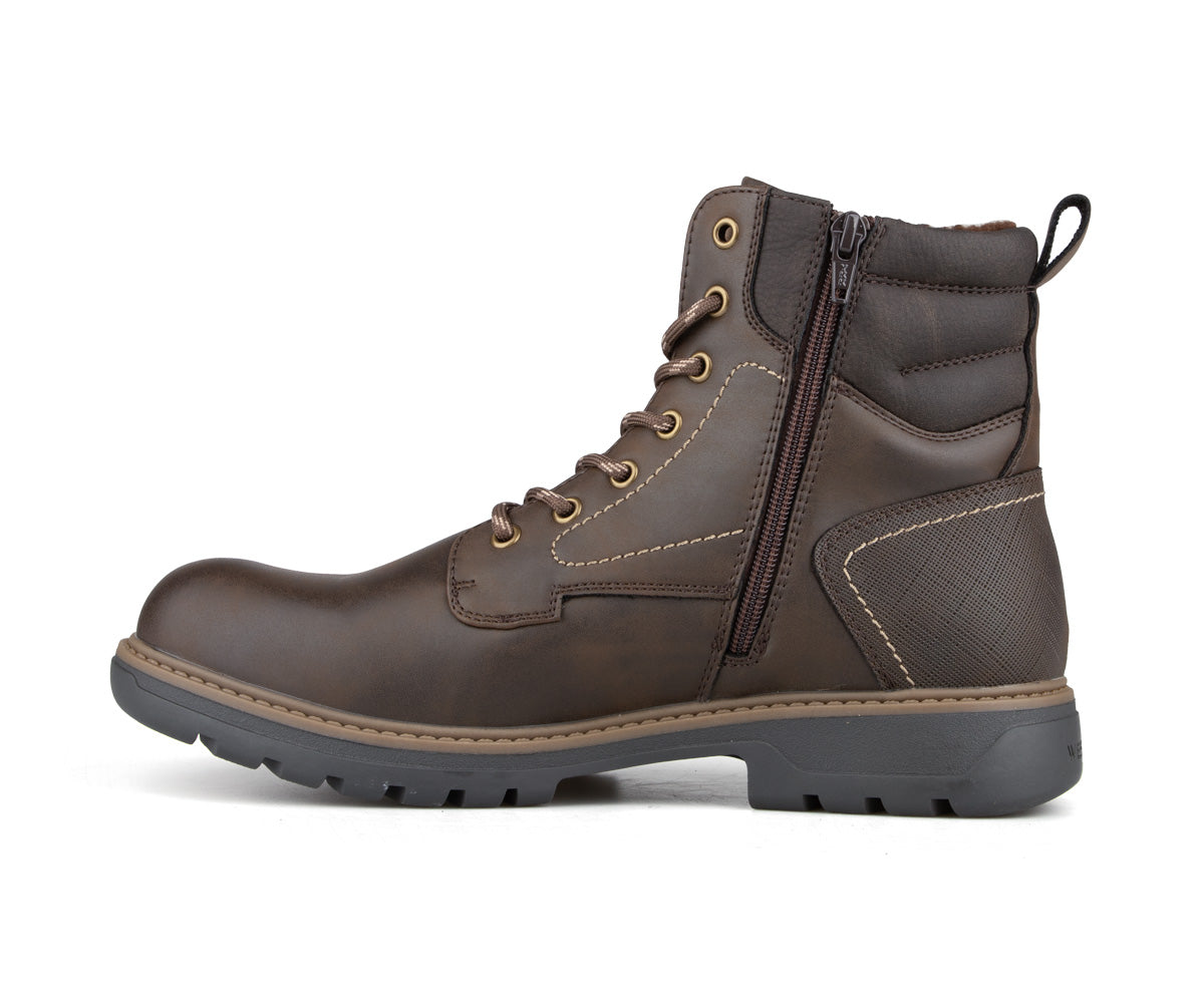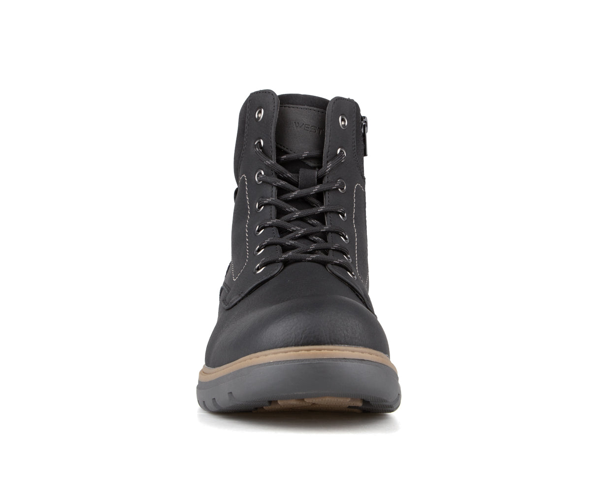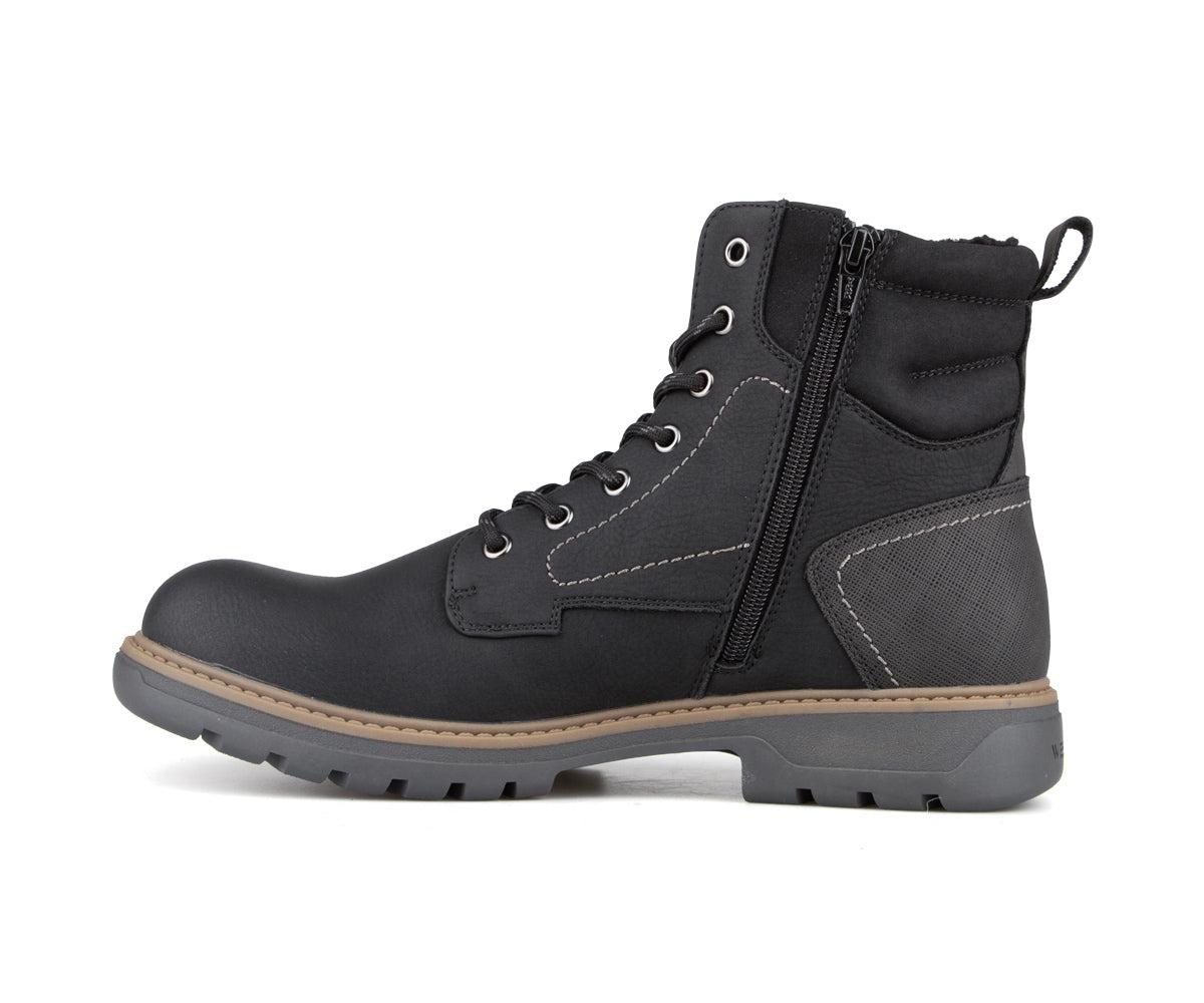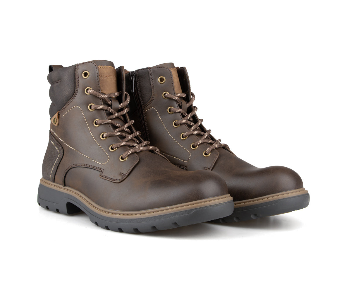 Ces bottillons West Way pour hommes offrent confort, chaleur et praticité pour l’hiver. Fabriqués en cuir synthétique et doublés en matière polaire, ils gardent vos pieds au chaud. La semelle intérieure amovible en feutre assure confort et hygiène, tandis que la semelle extérieure en TPR offre adhérence et durabilité. La combinaison fermeture éclair et lacets facilite l’enfilage et garantit un bon maintien, avec un excellent amortissement pour un confort prolongé au quotidien.