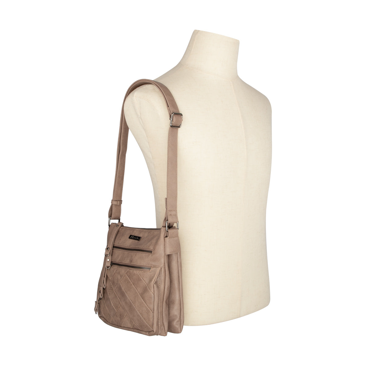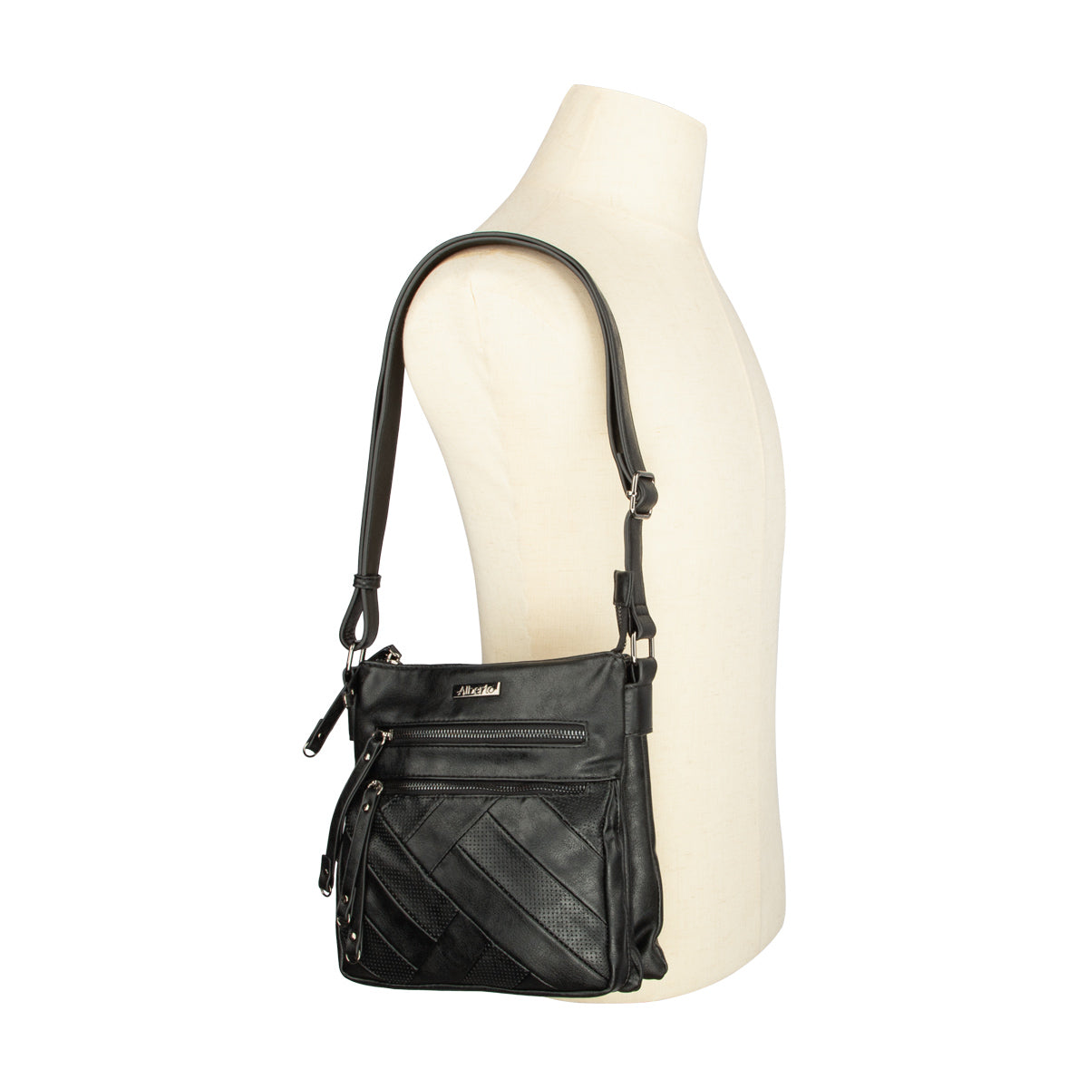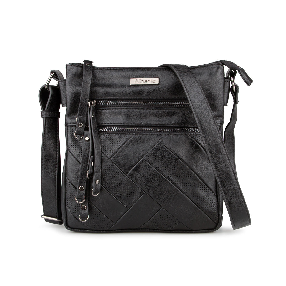 This Alberto women's handbag combines elegance and practicality for everyday use. Made of synthetic leather with a printed fabric interior, it features an adjustable shoulder strap and several inner and outer pockets for optimized storage. Its classic design is perfect to complement all your outfits.