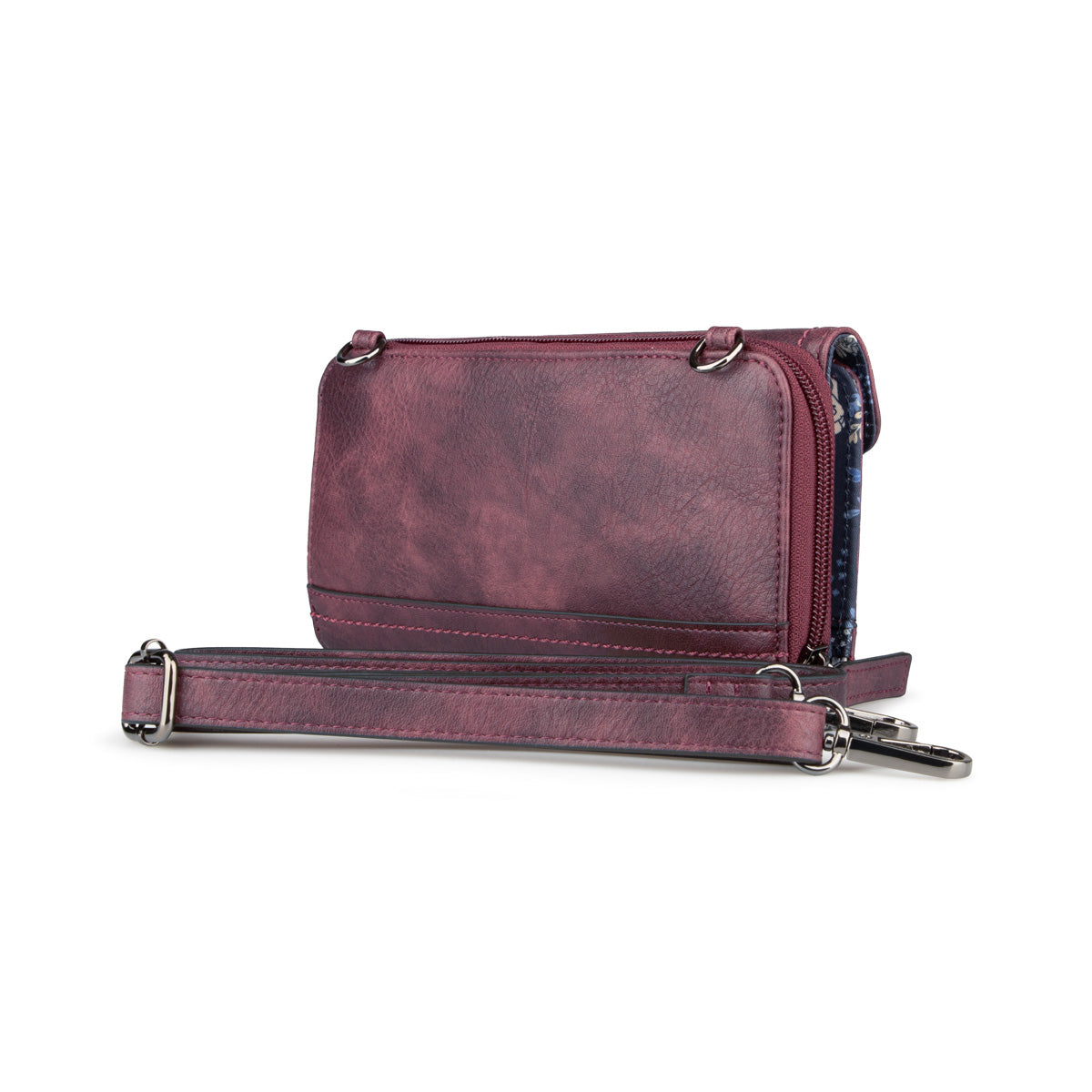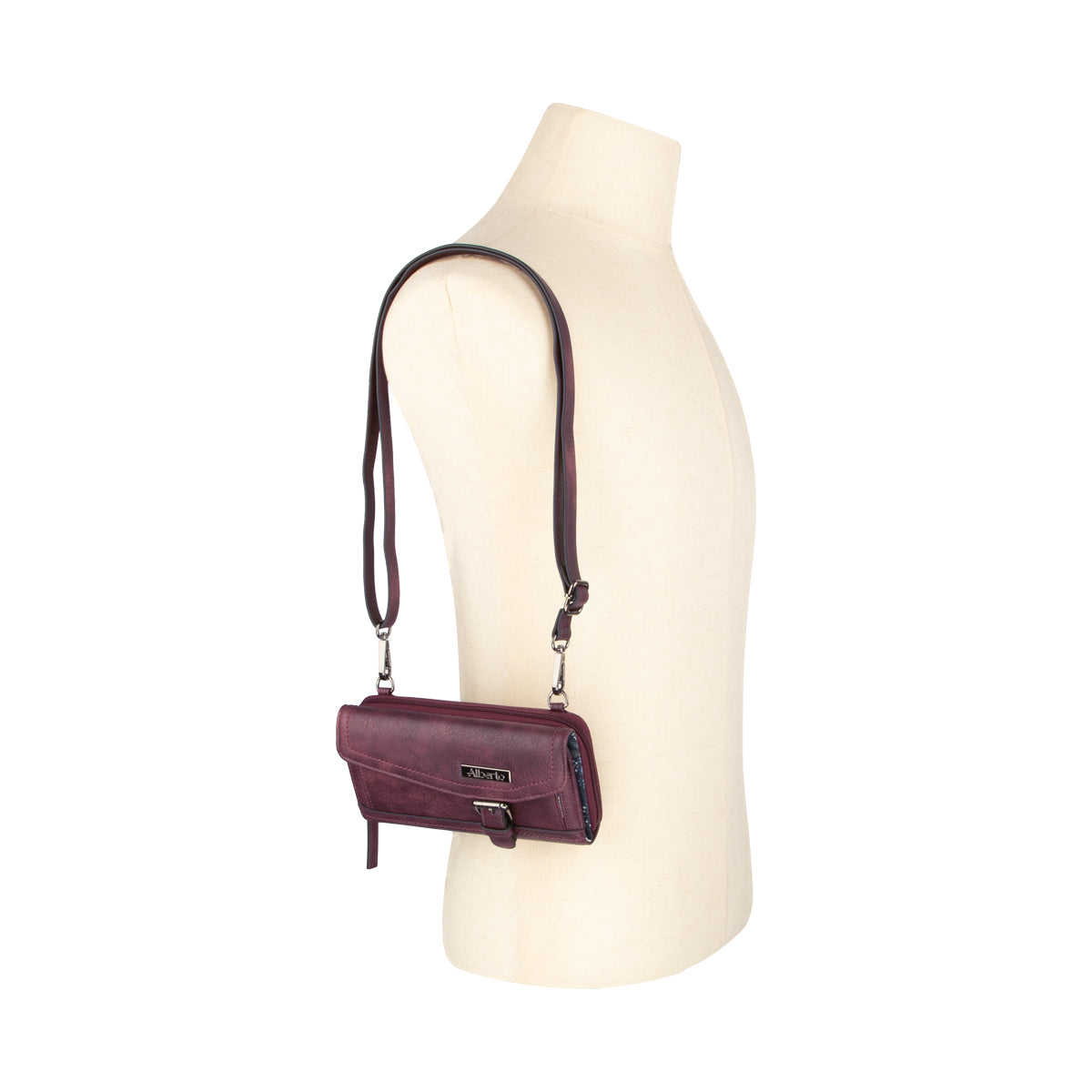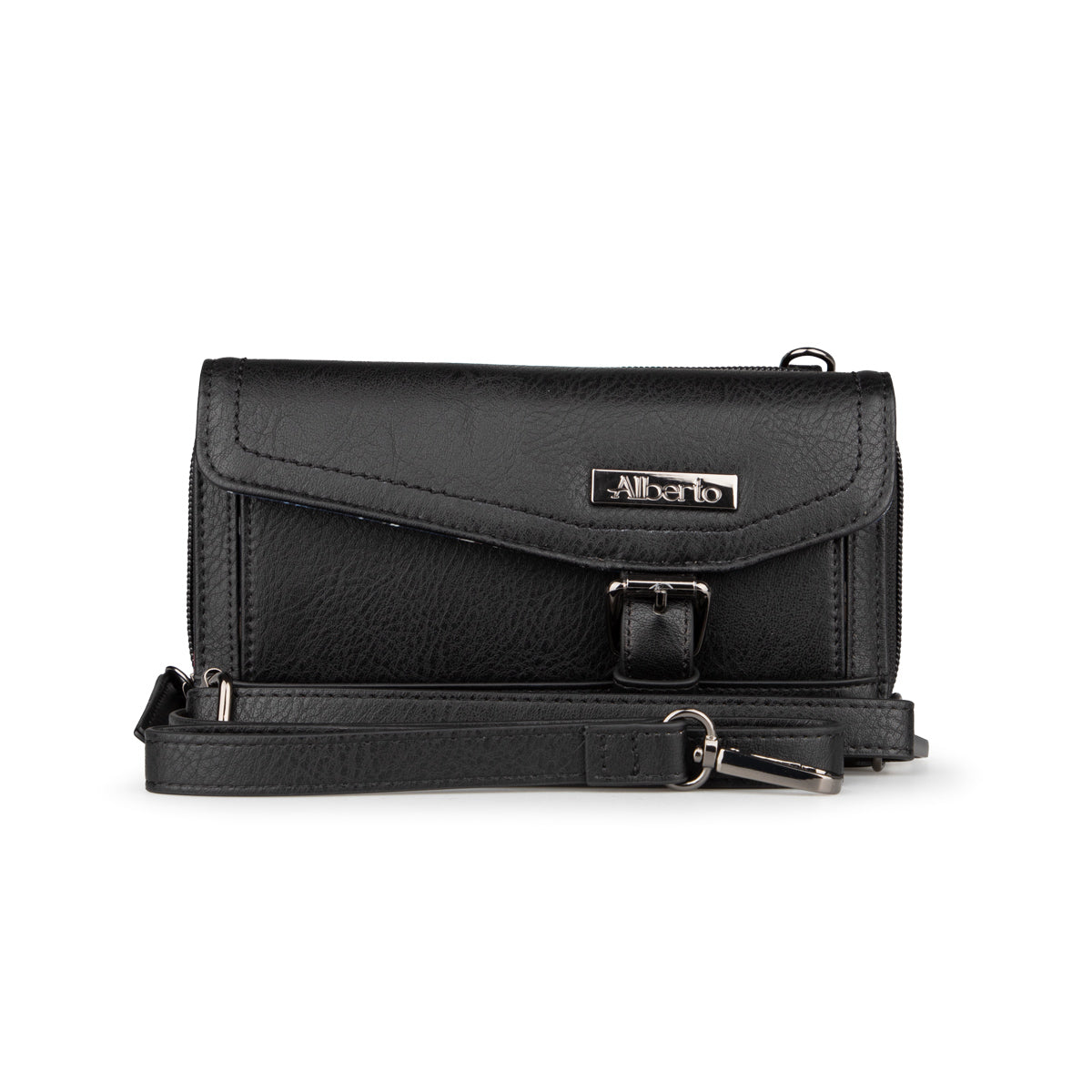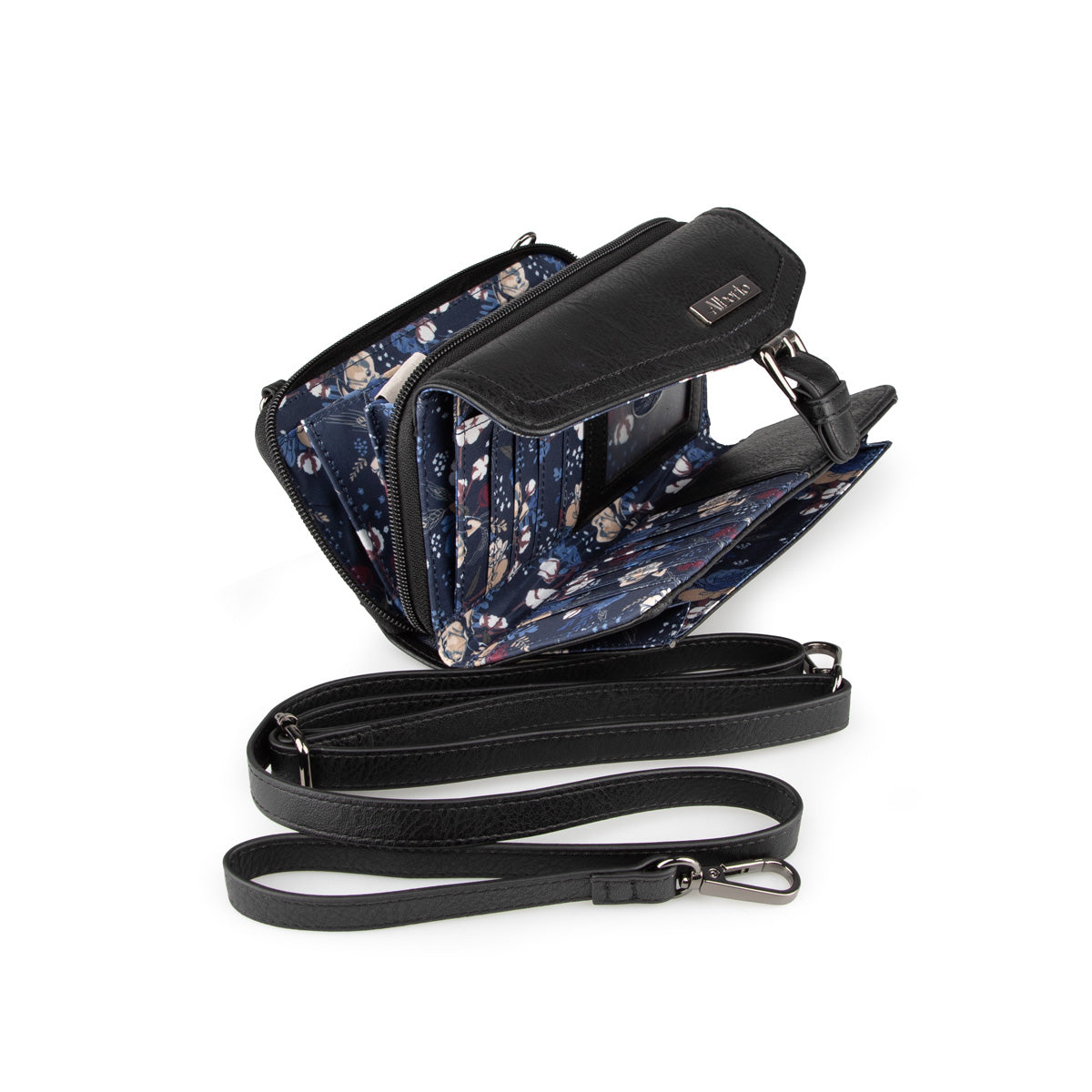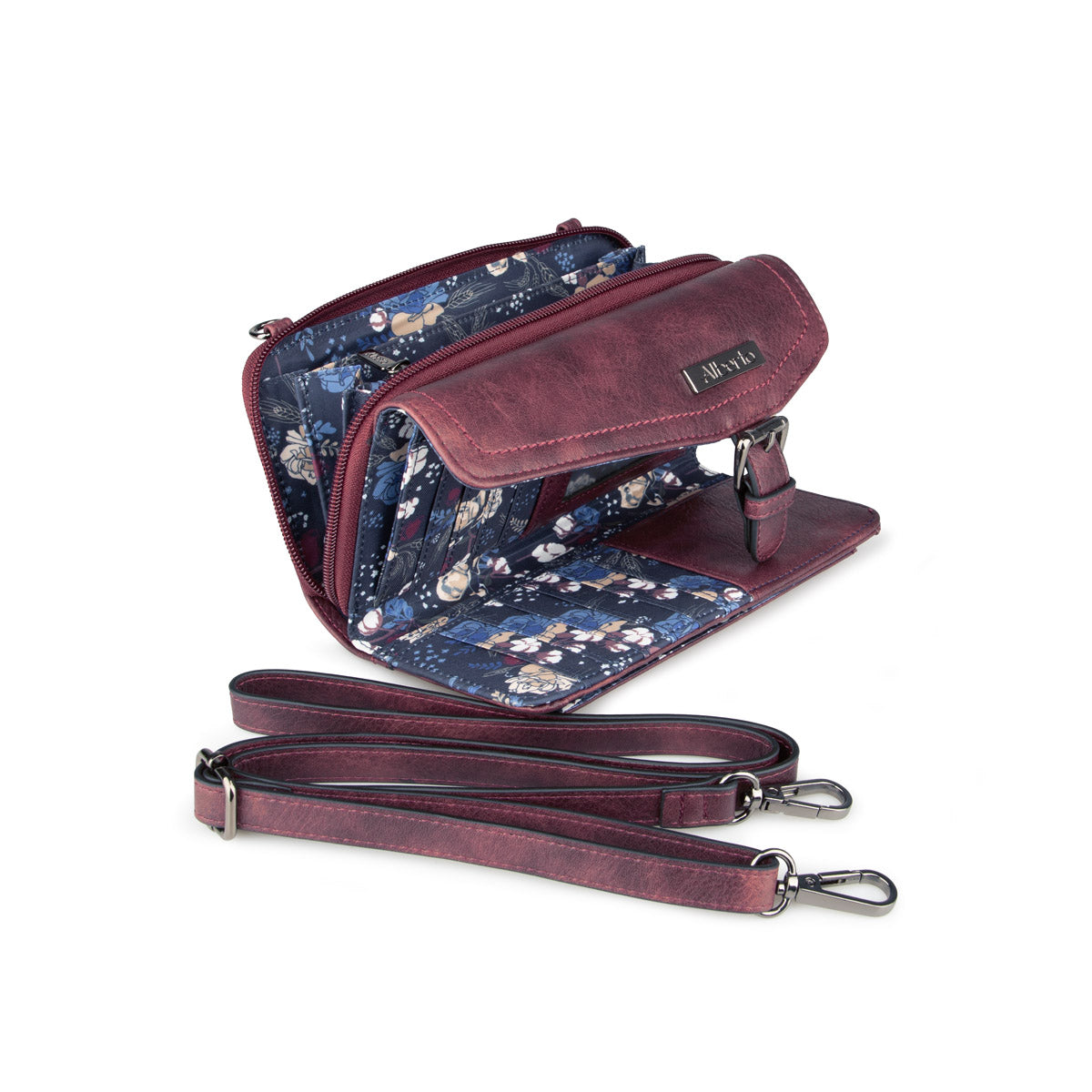 This Alberto wallet in synthetic leather with a flower-printed lining offers several compartments for optimal organization. It has an adjustable and removable strap, a compartment for money, several slots for cards, as well as a pocket closed with a zipper for added security.