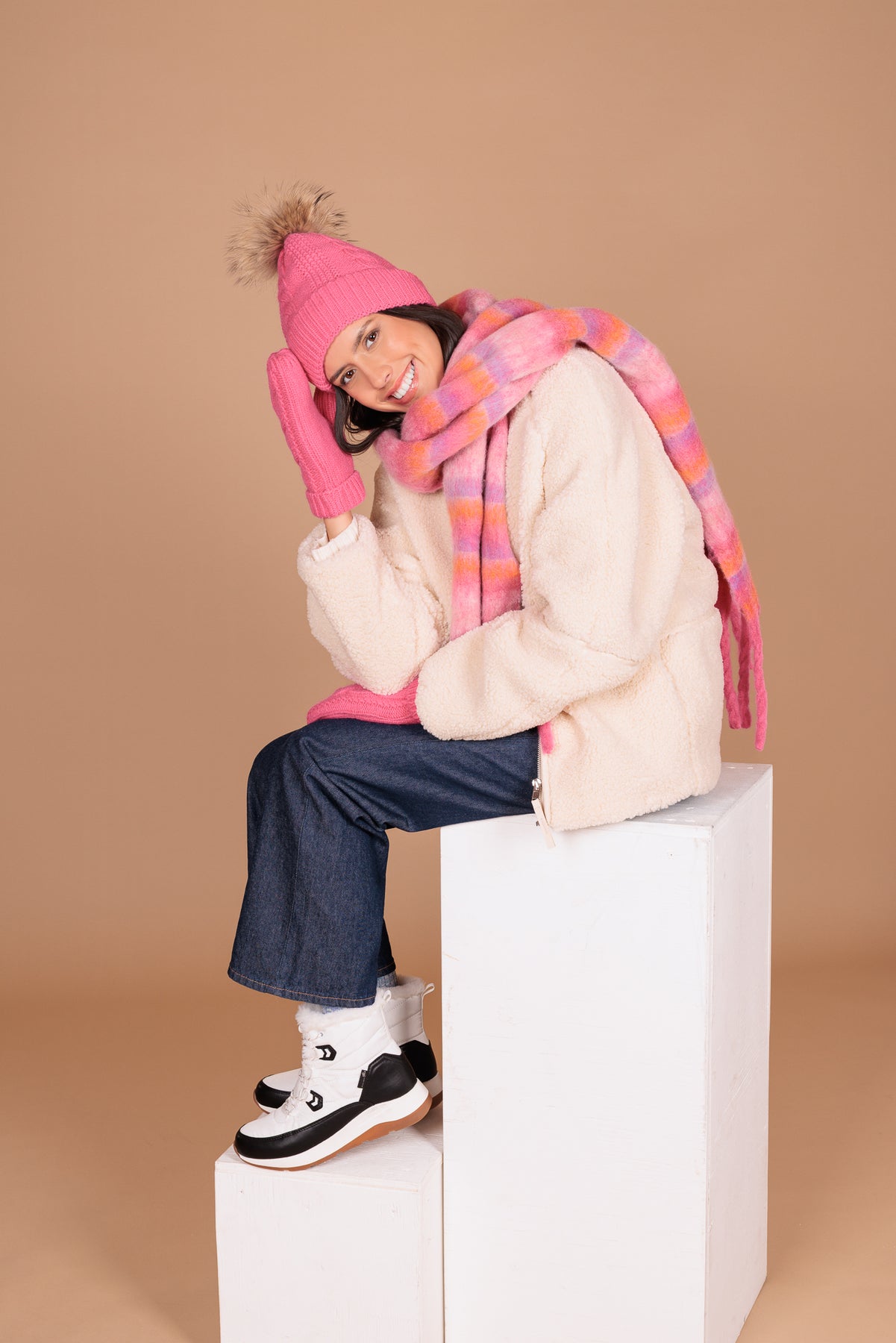This Alberto knitted scarf for women is the perfect accessory to face the cold season in style. Made of 100% acrylic, it offers softness and warmth while adding an elegant touch to your winter outfits. Ideal for everyday wear or outdoor outings.