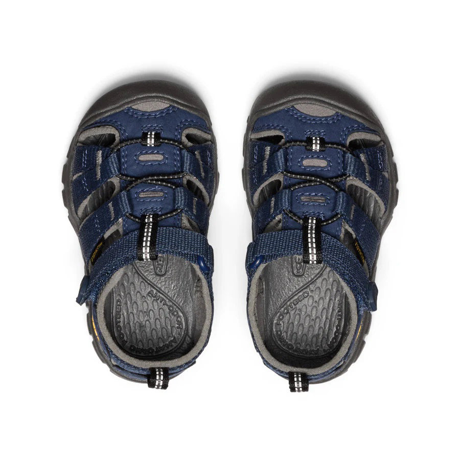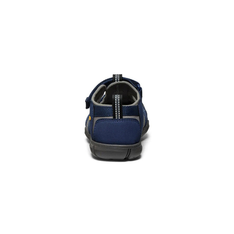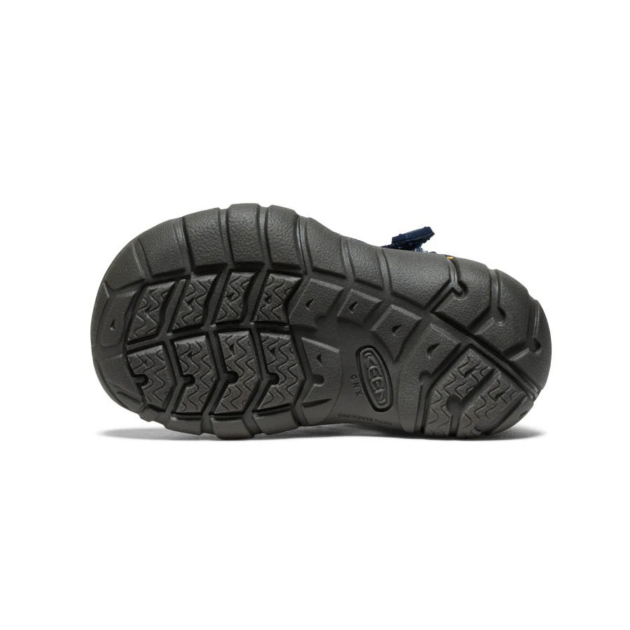 Designed to keep up with active little boys, these Keen Seacamp II CNX sandals offer robust protection with exceptional comfort. Their washable polyester strap upper and quick-drying lining make them perfect for outdoor days, even near water. A secure fit is ensured by an elastic lacing system combined with a hook-and-loop strap, while the low-profile sole promotes good ground contact. Perfect for running, climbing, or jumping, they provide support, protection, and durability.