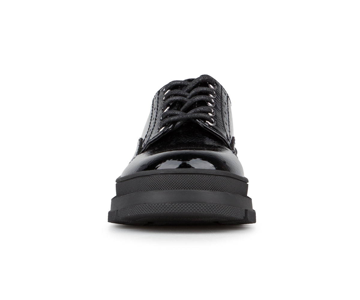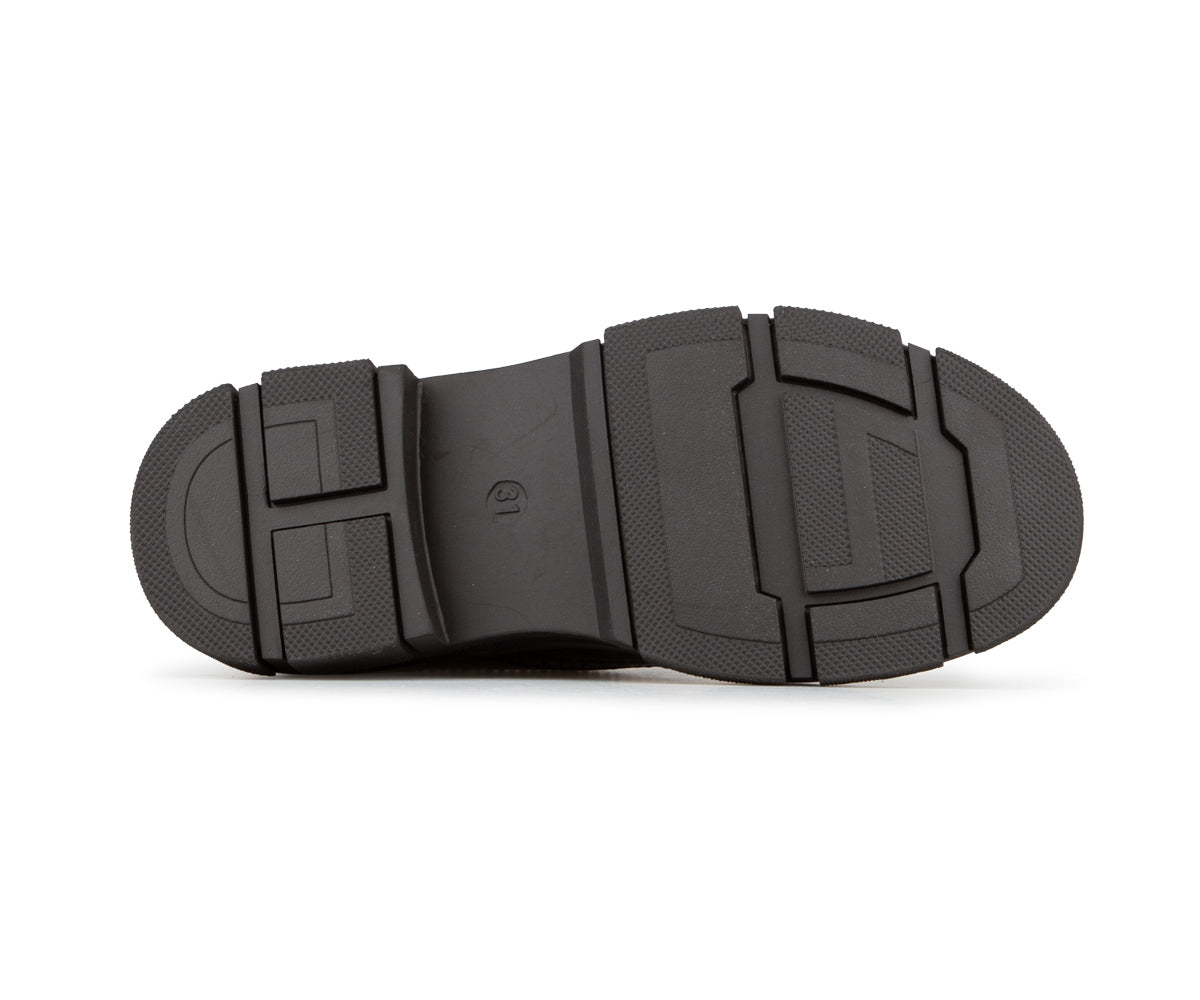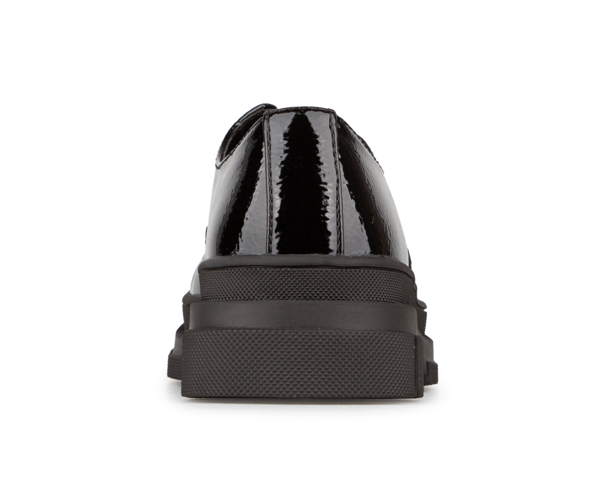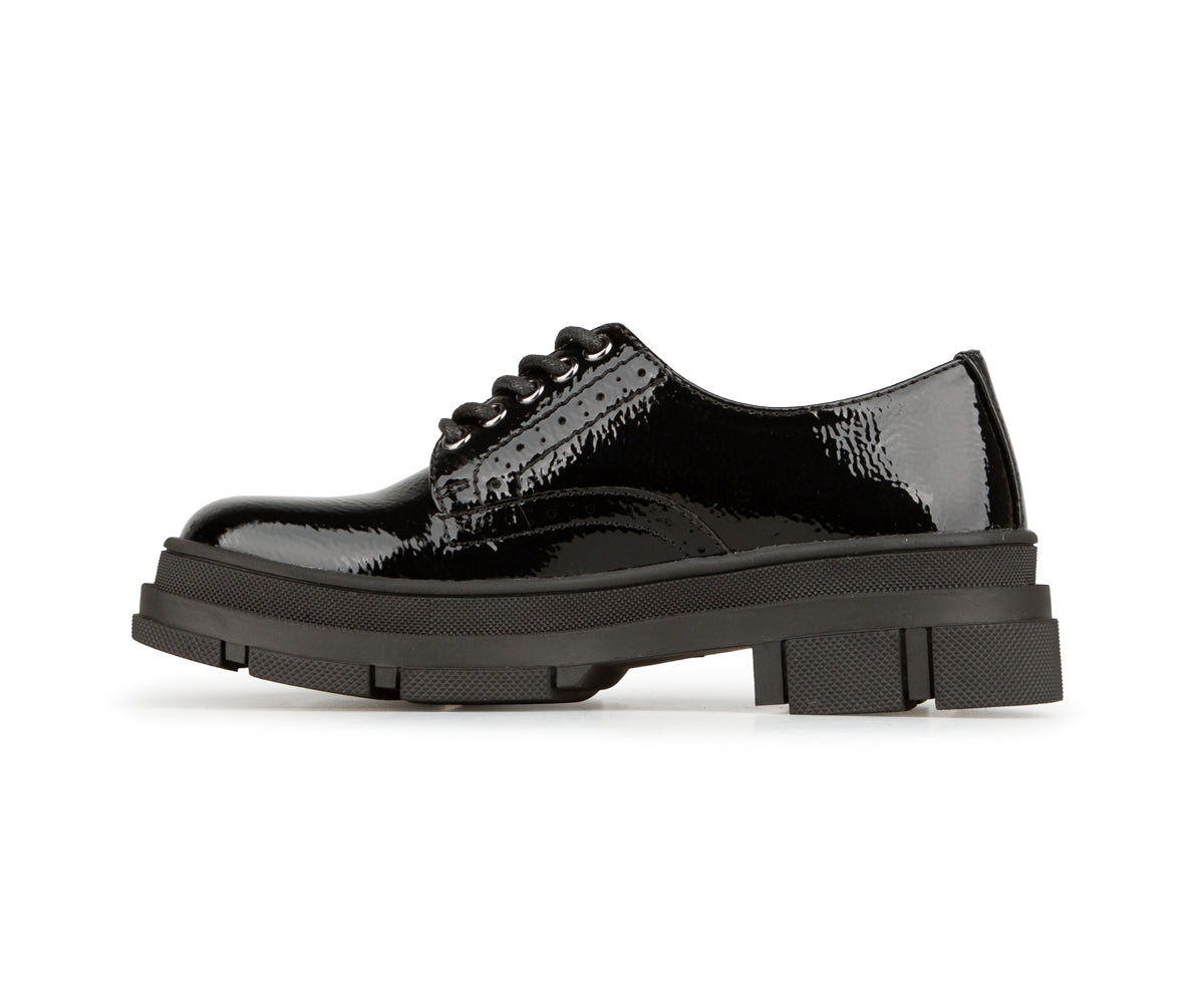 These lace-up shoes for girls combine elegance and durability with their black patent synthetic leather upper. Their thick serrated TPR sole offers good grip, while the versatile style pairs well with both dressy outfits and everyday looks.