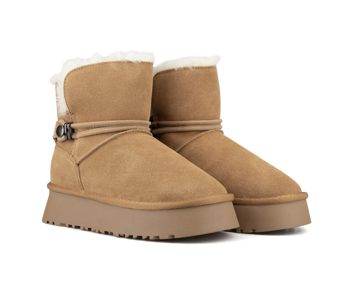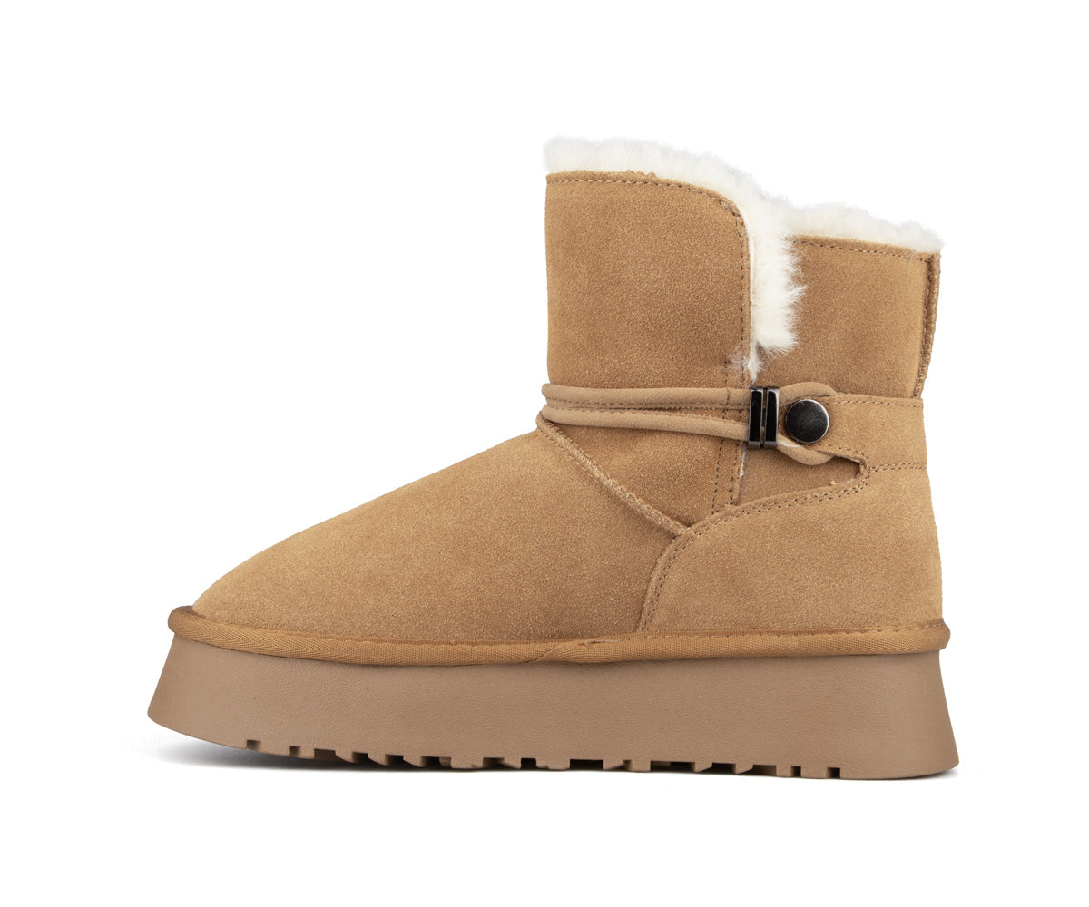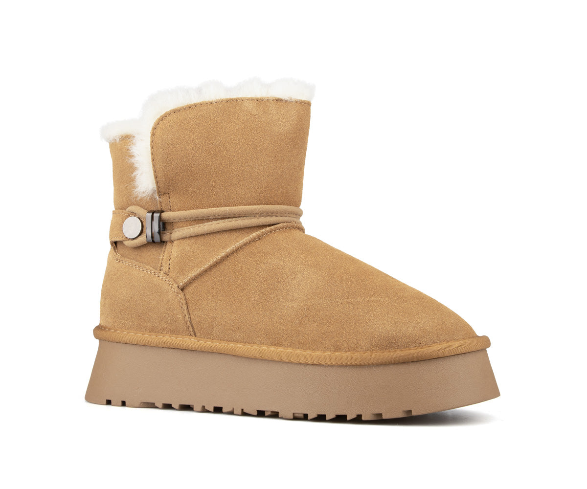 These Alberto women's snow boots combine style and warmth thanks to their beige fur lining and insole. Made of waterproof suede, they keep your feet dry while offering cozy comfort. Their 2-inch TPR platform sole provides better ground insulation and a trendy touch to your winter outfits.