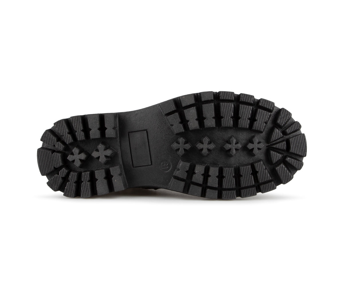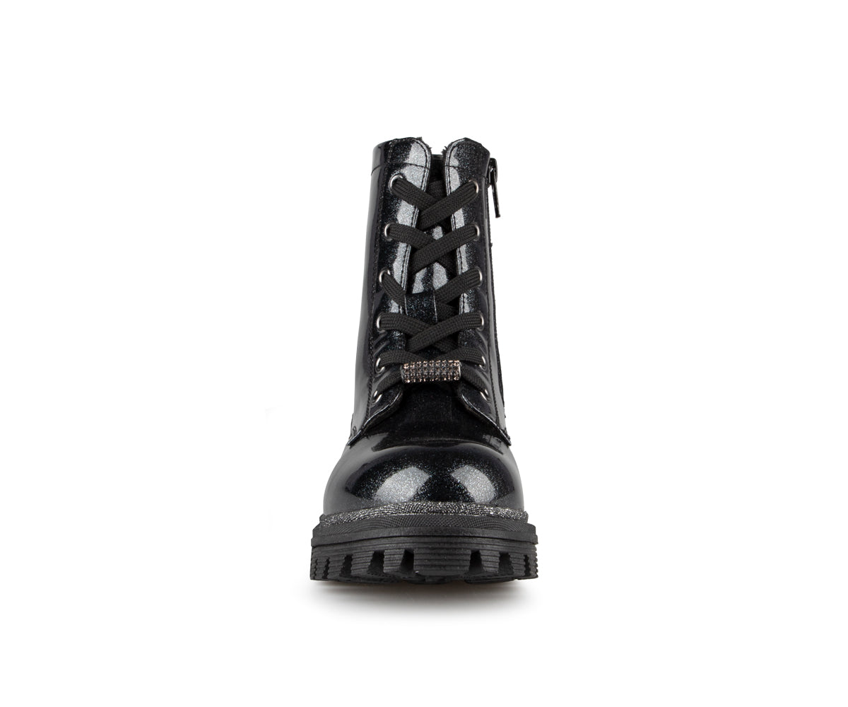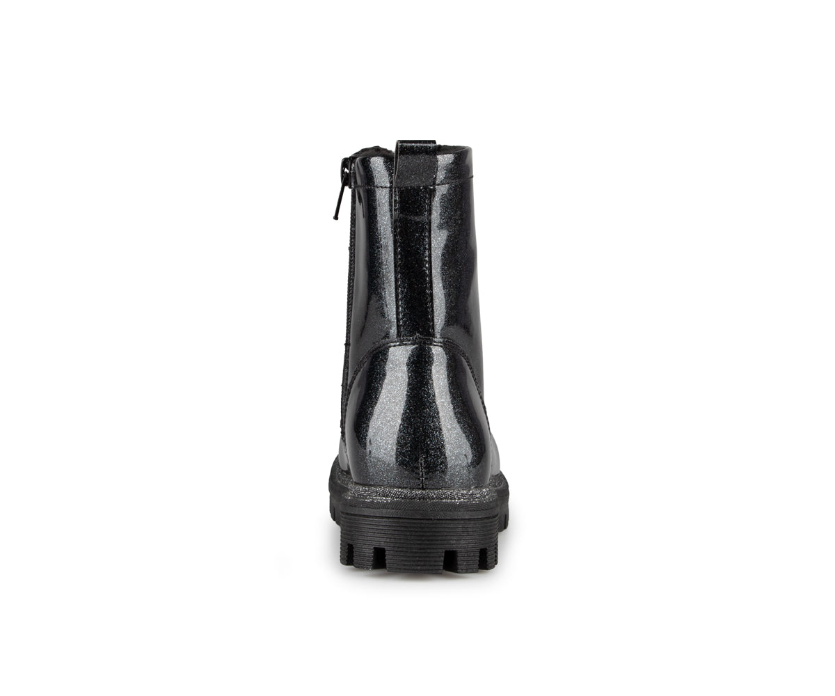 The Alberto girls' booties feature a patent faux leather upper and a soft faux fur lining. They have a flat heel and a YKK zipper for easy putting on. The insole is made of felt, while the outsole is brushed TPR, providing excellent grip and durability. These booties combine style and comfort, ideal for the cold months.