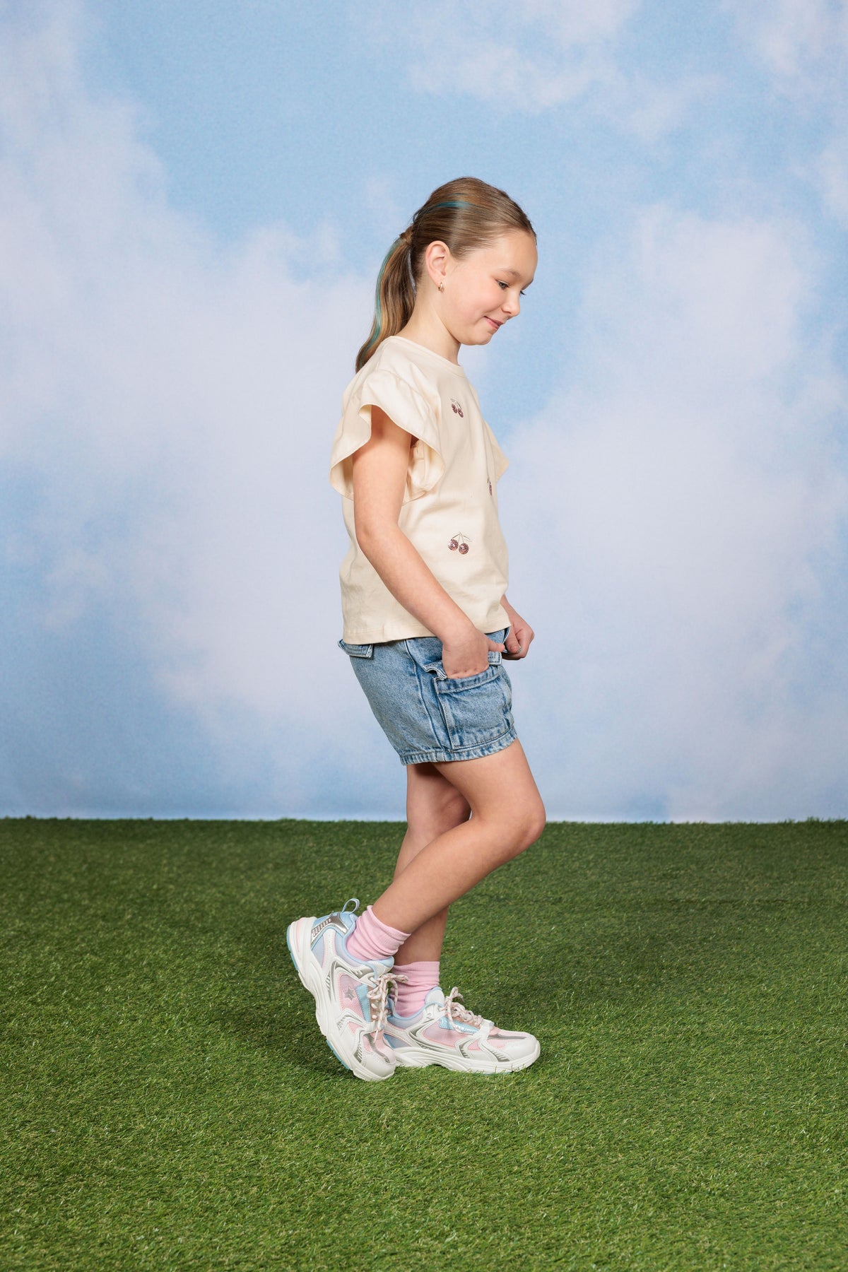 Primus athletic fashion shoes for junior girls, made of synthetic leather and mesh fabric for a modern look and good breathability. The TPR outsole offers excellent grip and great durability, perfect for active days at school or the park.