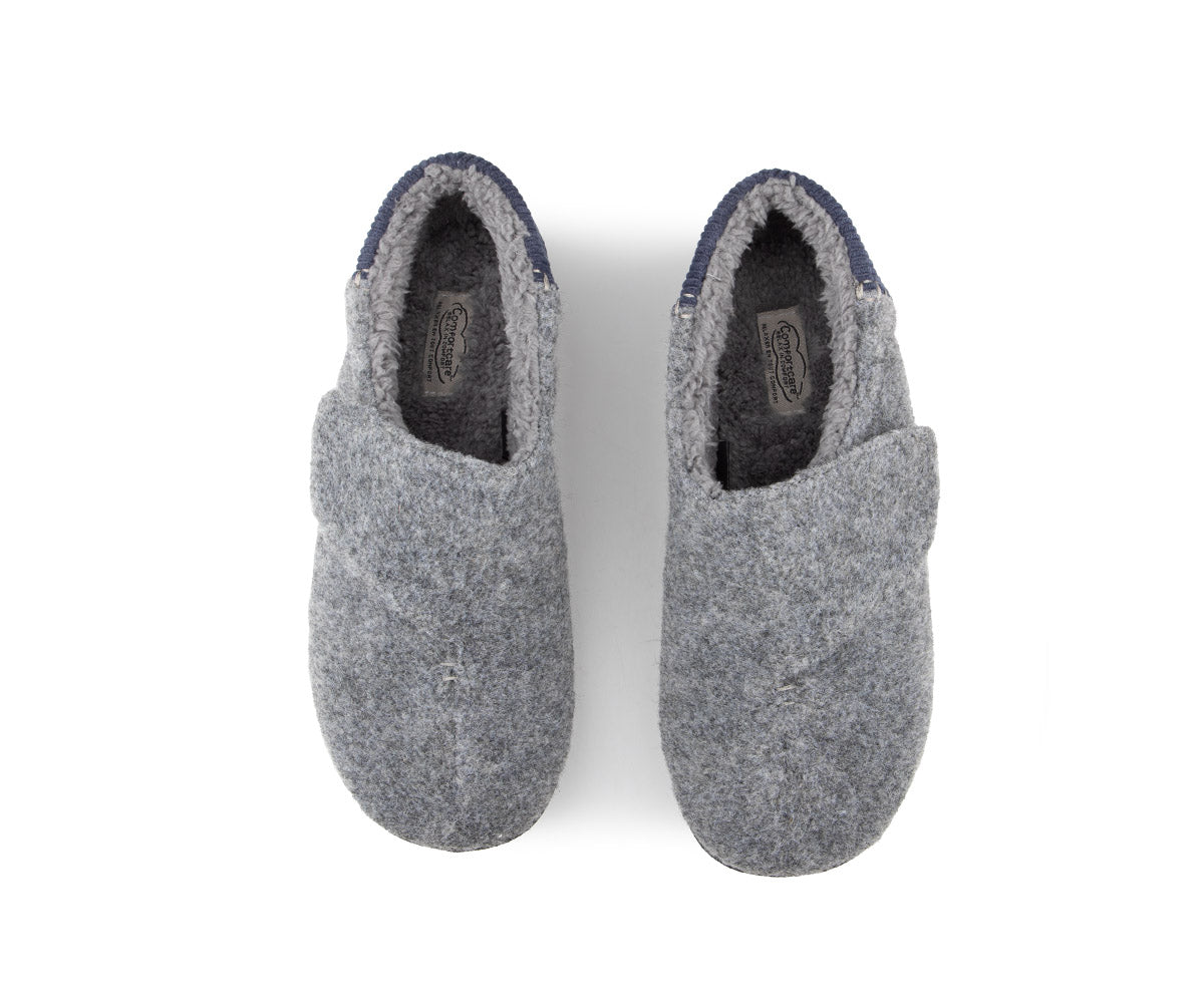 These Comfortcare men's slippers are perfect for maximum comfort at home. Equipped with a Velcro closure, they combine felt and corduroy for a soft feeling. Synthetic fleece lining and memory foam provide excellent cushioning. The black TPR sole ensures optimal durability and grip, guaranteeing you a secure and stable footing on all surfaces.