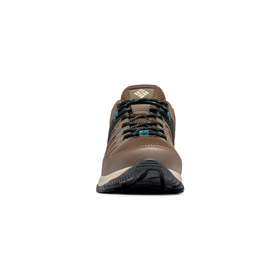 Columbia brand Granite Trail hiking shoes for men. Waterproof textile upper with leather and synthetic overlays for protection and support, textile strap for superior comfort, Omni-Tech™ waterproof and breathable construction, lightweight Techlite™ midsole for long-lasting comfort, superior cushioning and increased energy return, grippy, non-marking Omni-Grip™ rubber.