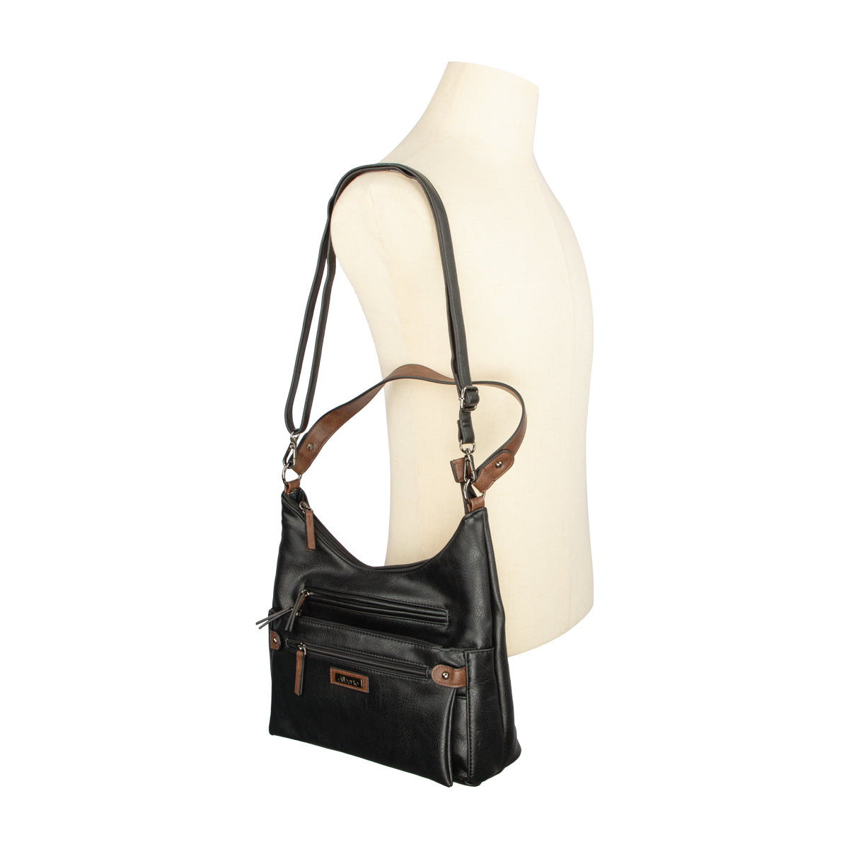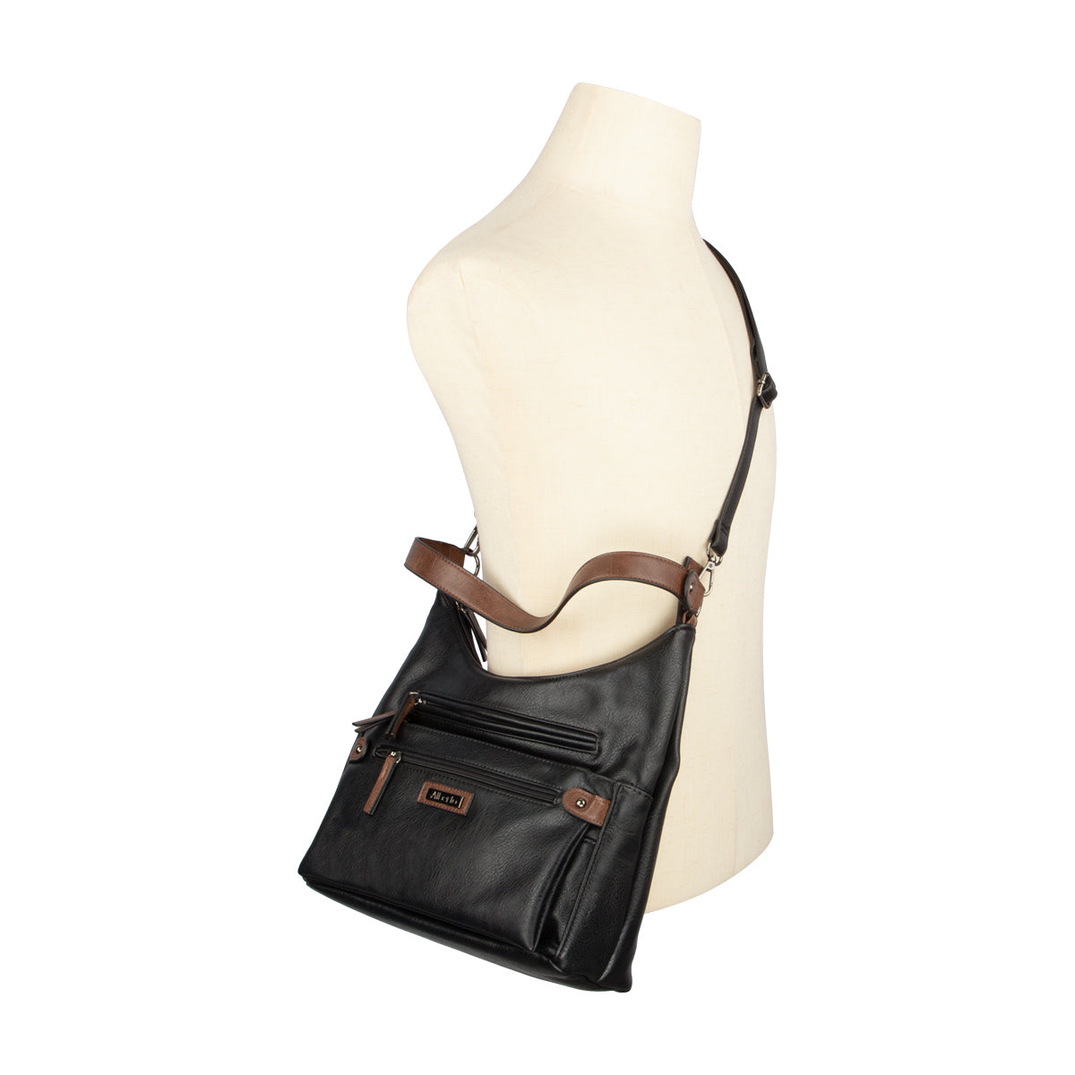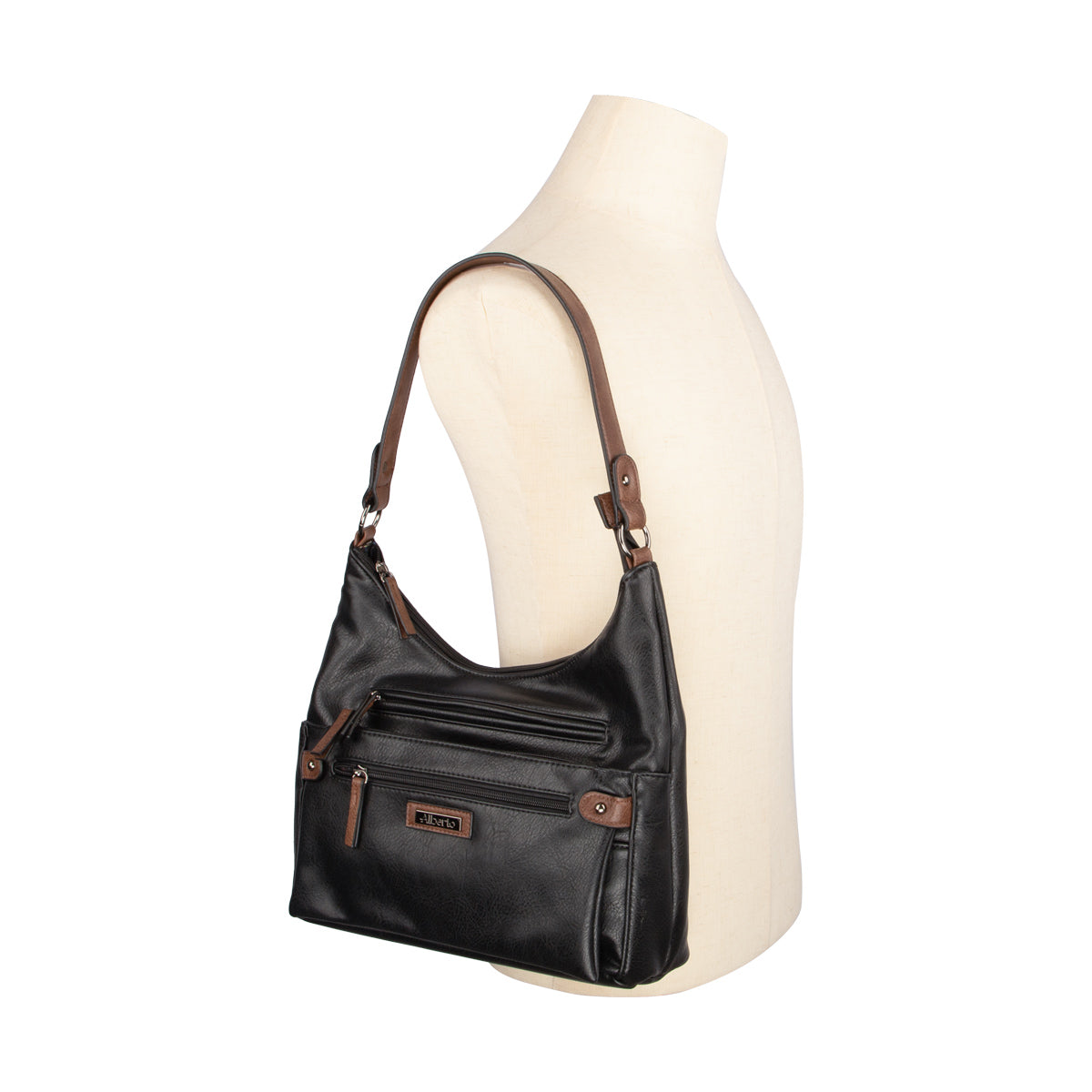 This Alberto hobo bag for women combines style and comfort. Made of synthetic leather with a printed fabric interior, it features an adjustable and removable shoulder strap and handle to suit all your needs. Its practical size is perfect for accompanying your days.