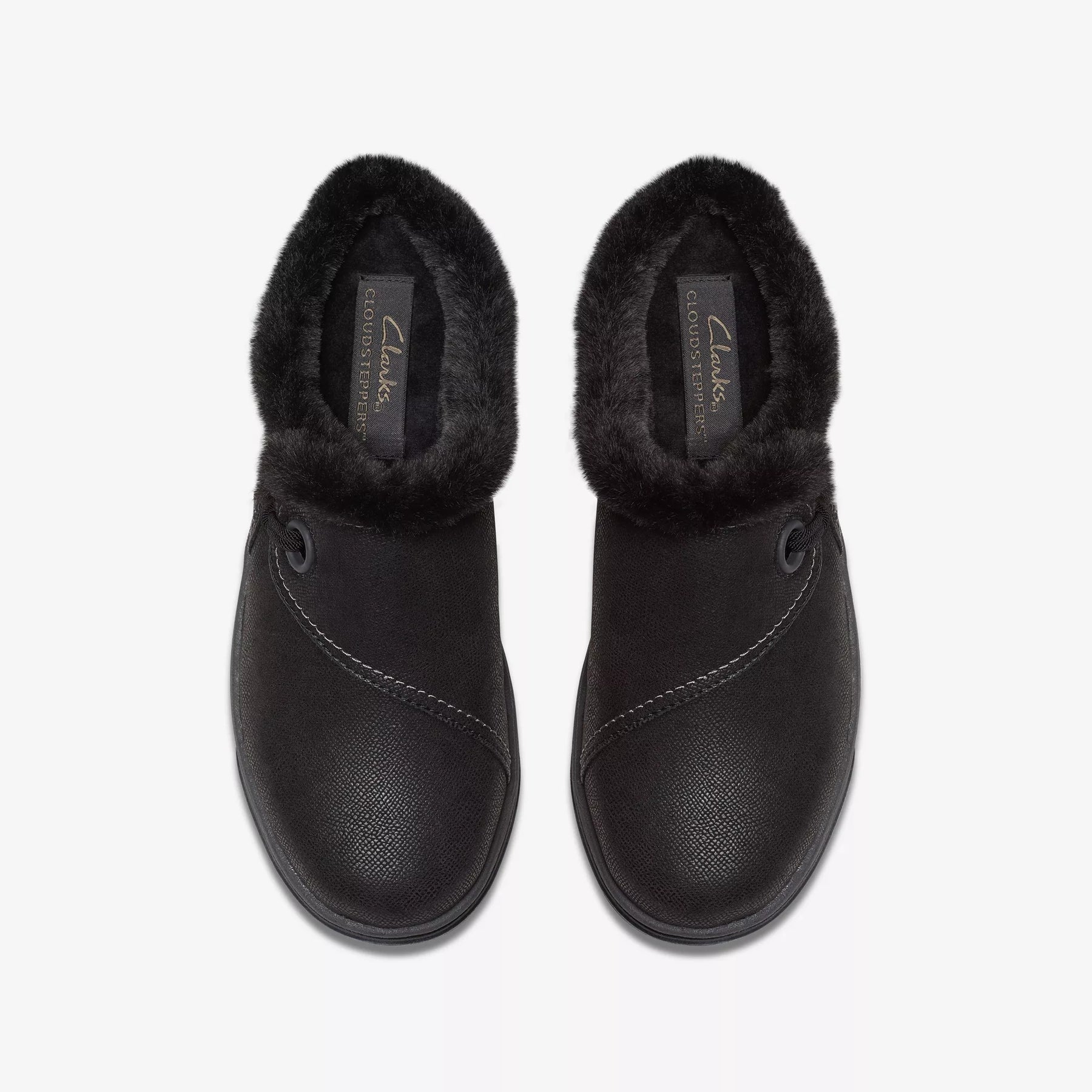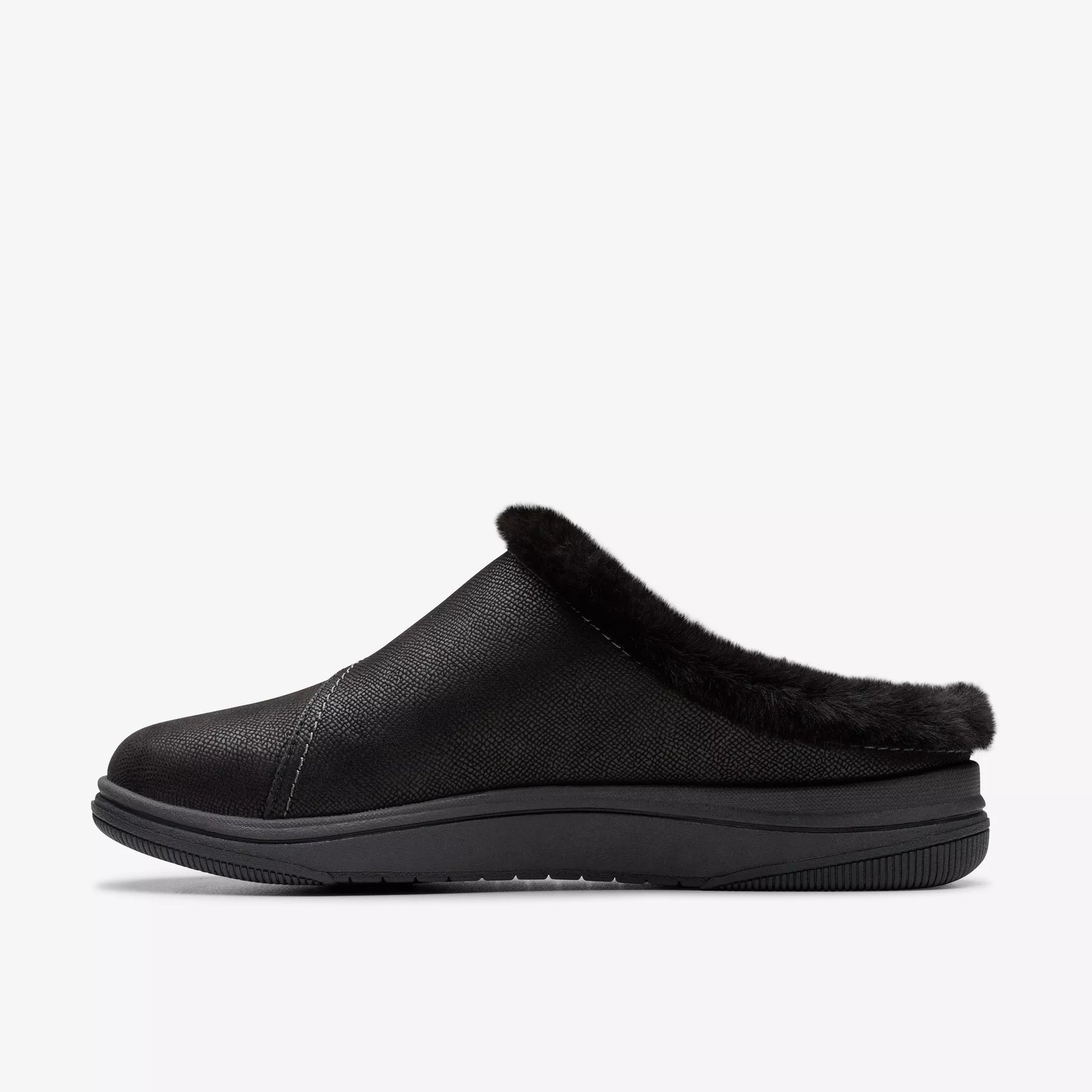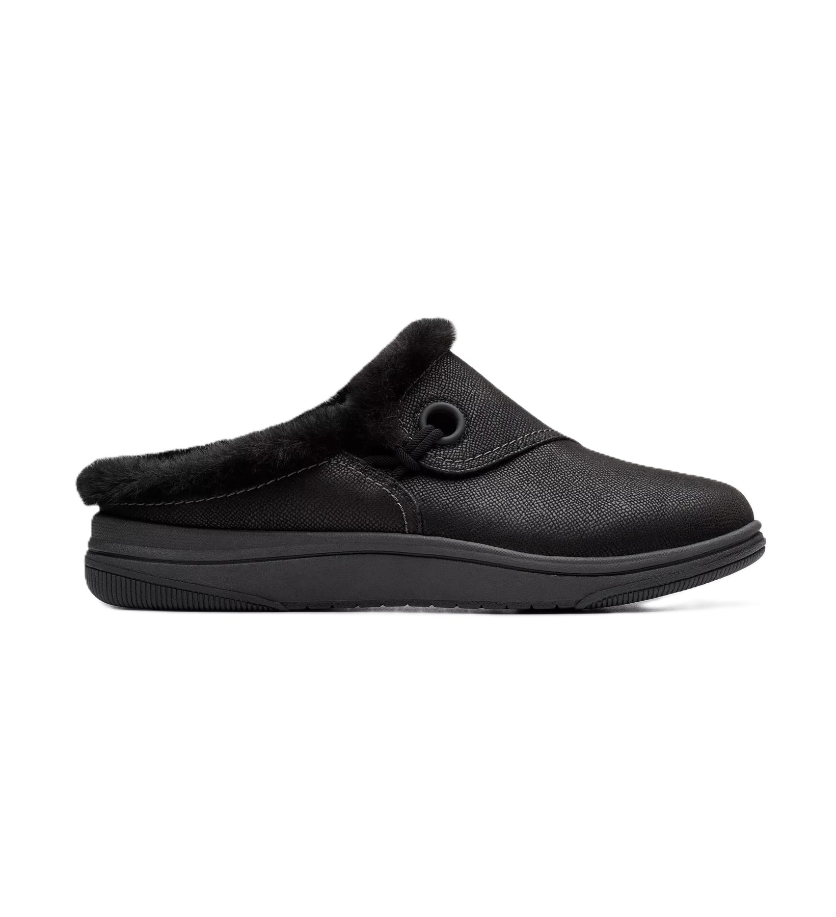 These Clarks slip-on shoes for women feature a soft black fabric upper and their signature Breeze stripe, adding a modern and casual touch. Their flexible TPR sole ensures reliable grip and good stability for everyday wear.