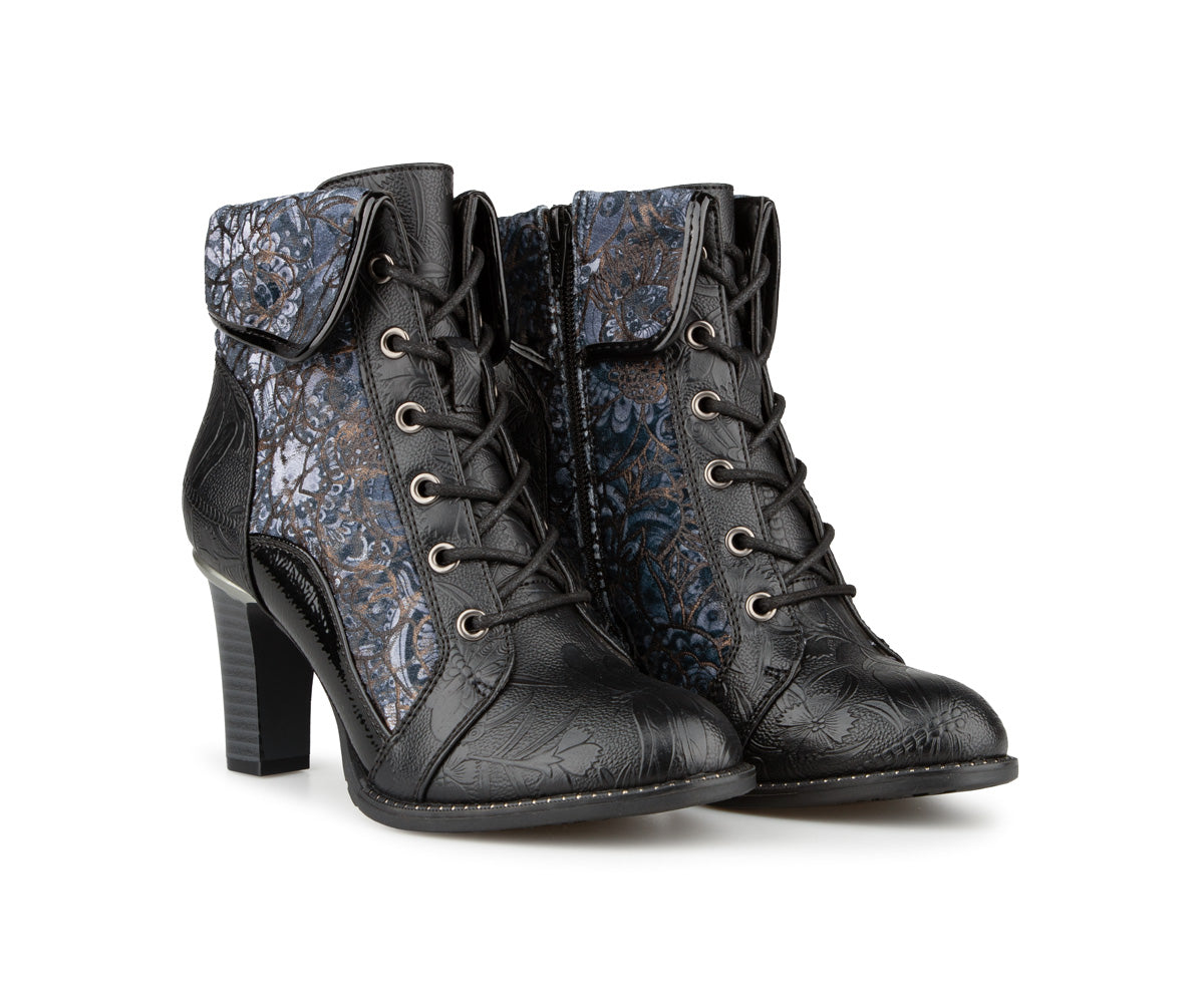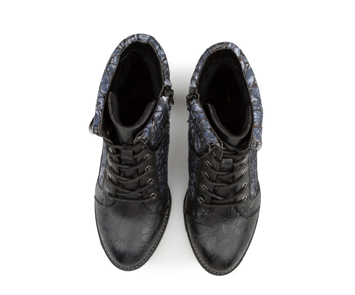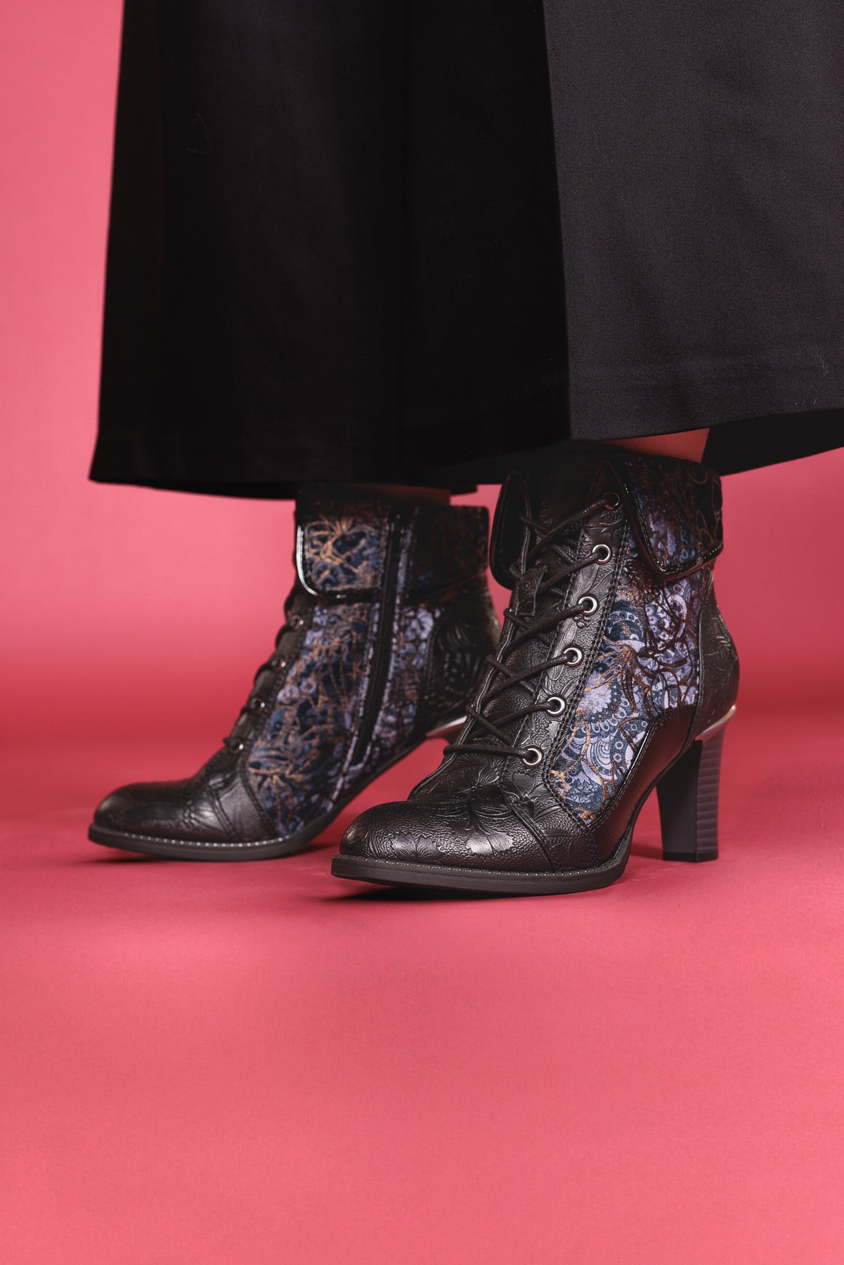 These Alberto women's boots stand out with their floral printed textile and chic design. Featuring a 3-inch high heel, they combine elegance and comfort thanks to an ultra-soft synthetic fur lining. The zipper and lacing offer an easy and personalized fit, while the TPR outsole ensures good grip.