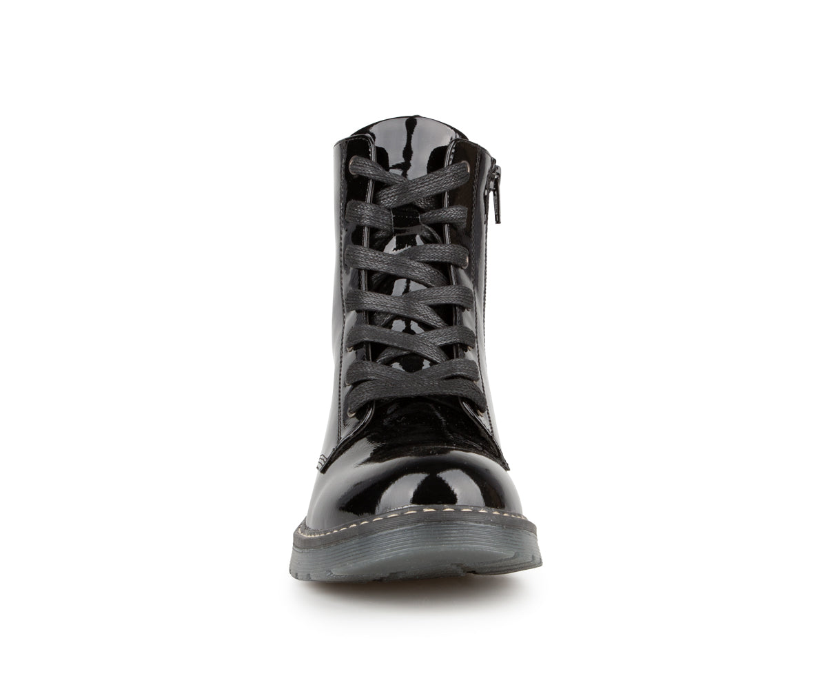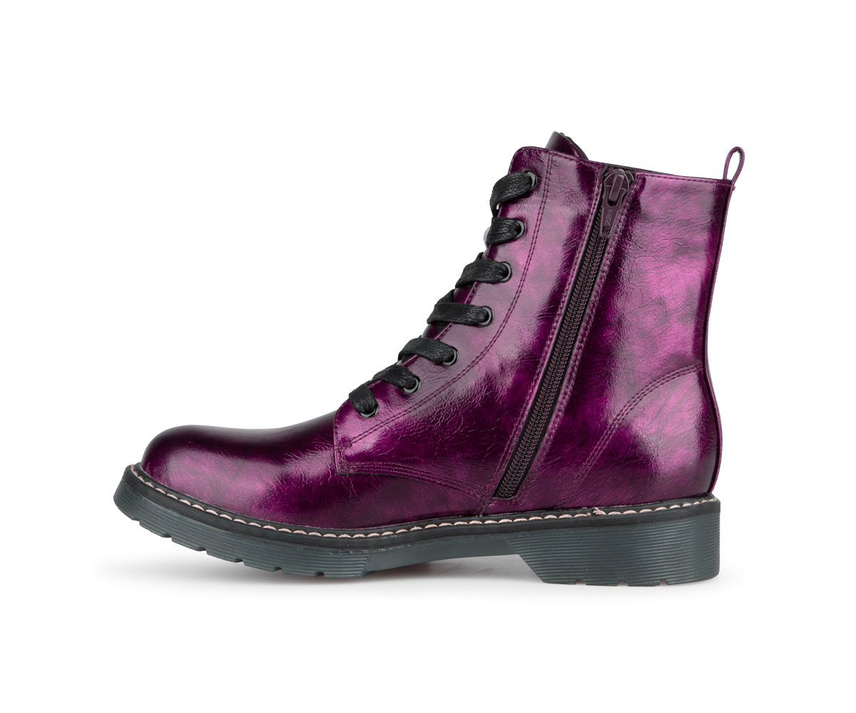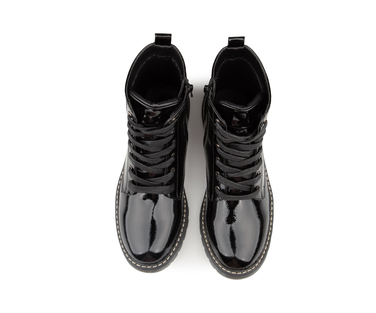 These Alberto ankle boots are perfect for adding an elegant touch to your look while staying comfortable. Made of patent/matte PU, they offer a refined shiny finish. Their jersey lining ensures soft comfort, while the 1.25-inch flat heel provides good stability. Easy to slip on thanks to their zipper and laces, they are ideal for your active days.