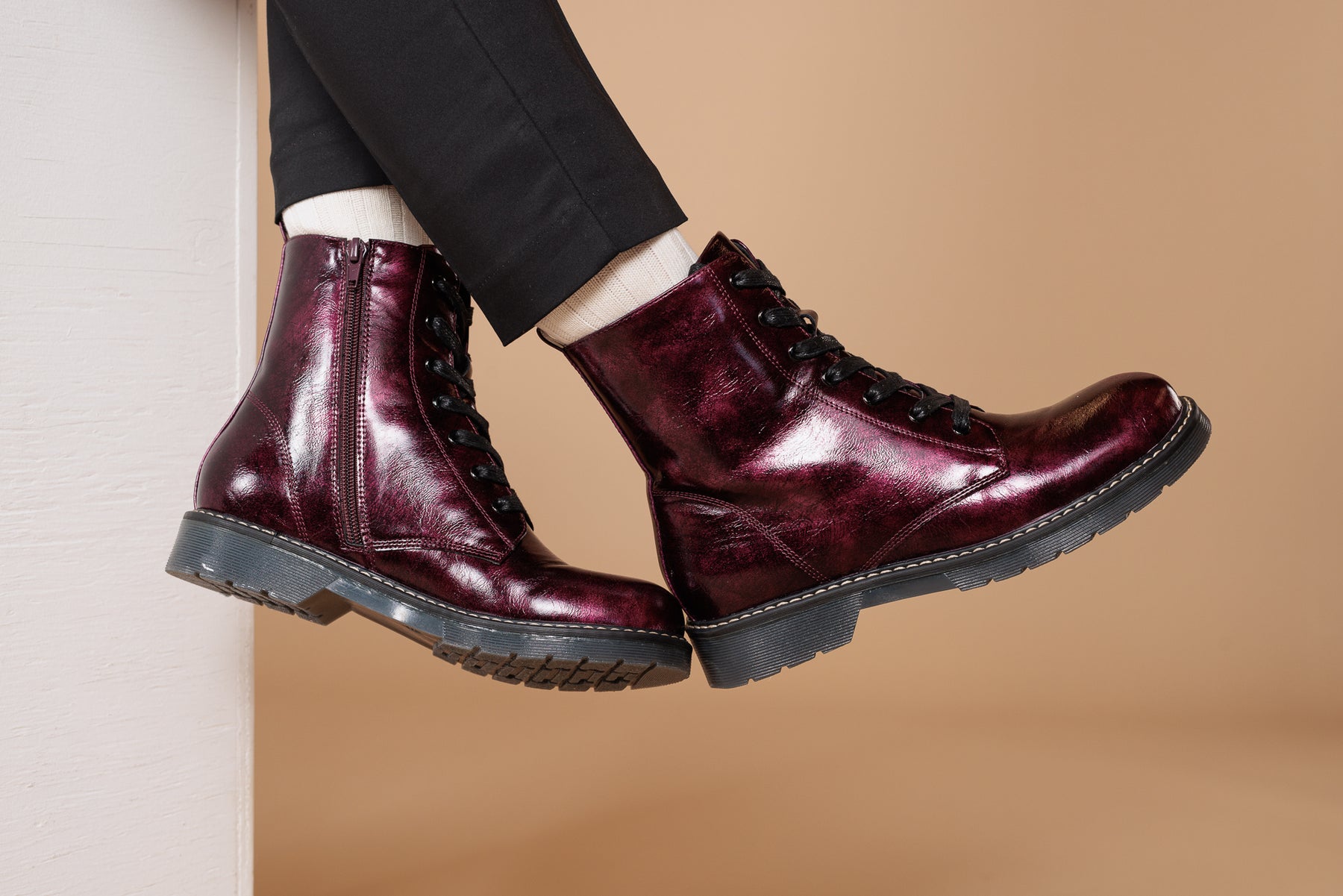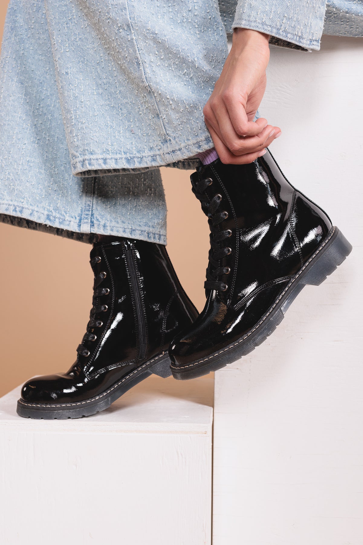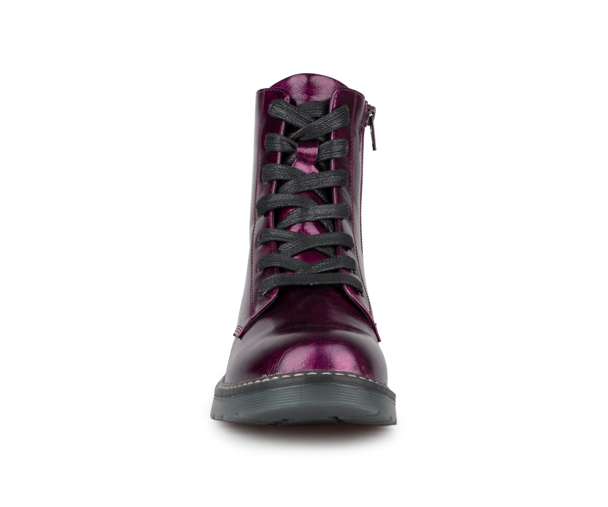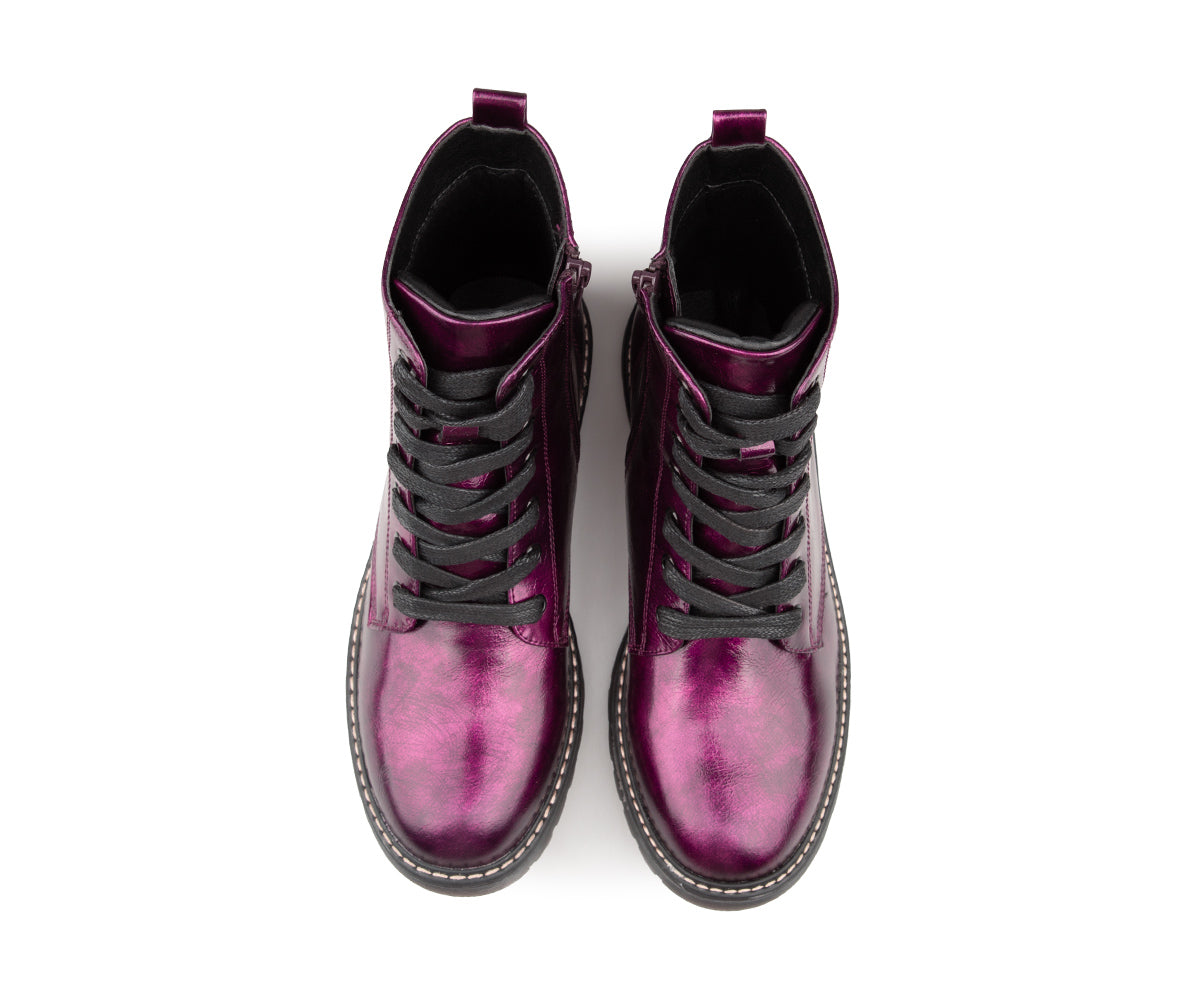 These Alberto ankle boots are perfect for adding an elegant touch to your look while staying comfortable. Made of patent/matte PU, they offer a refined shiny finish. Their jersey lining ensures soft comfort, while the 1.25-inch flat heel provides good stability. Easy to slip on thanks to their zipper and laces, they are ideal for your active days.