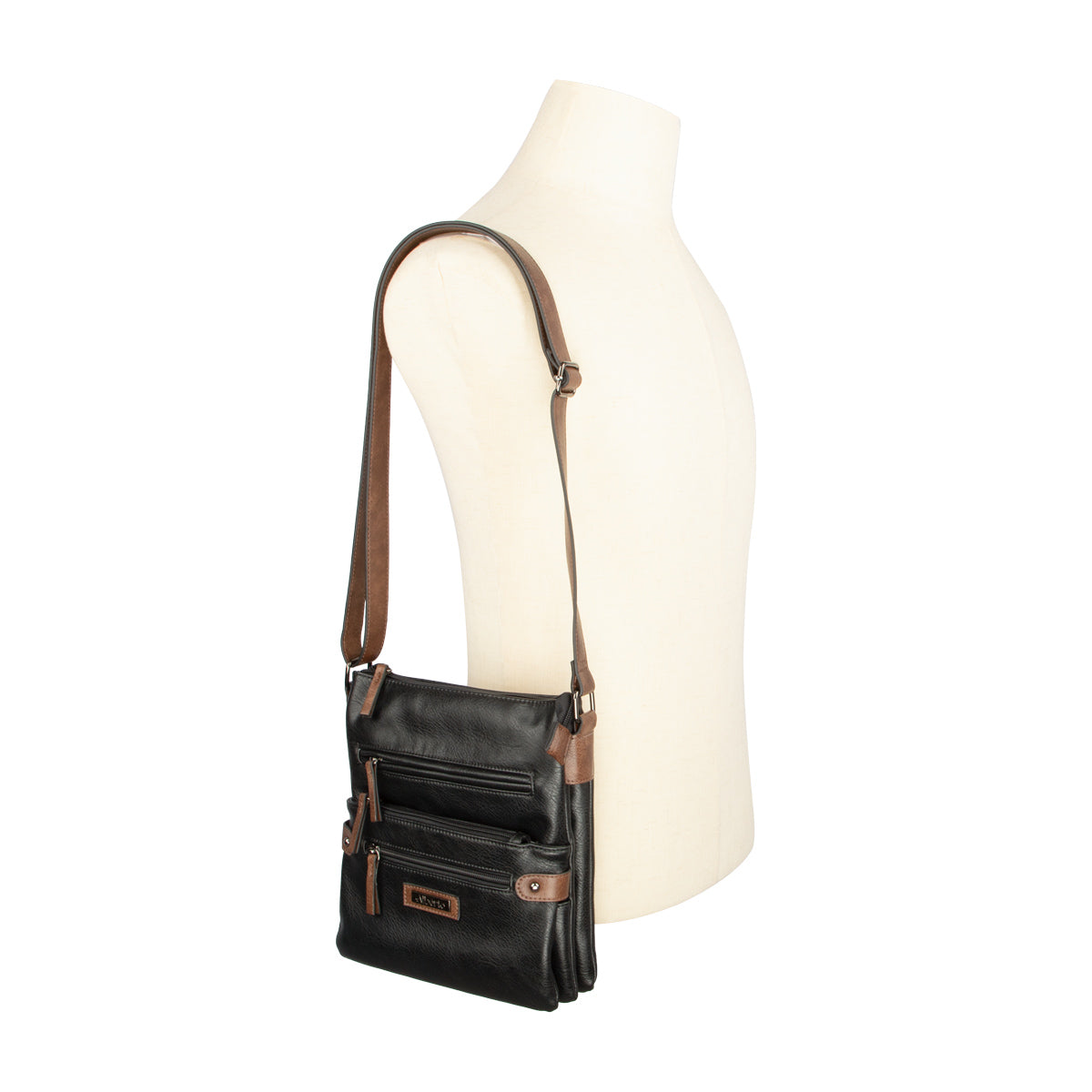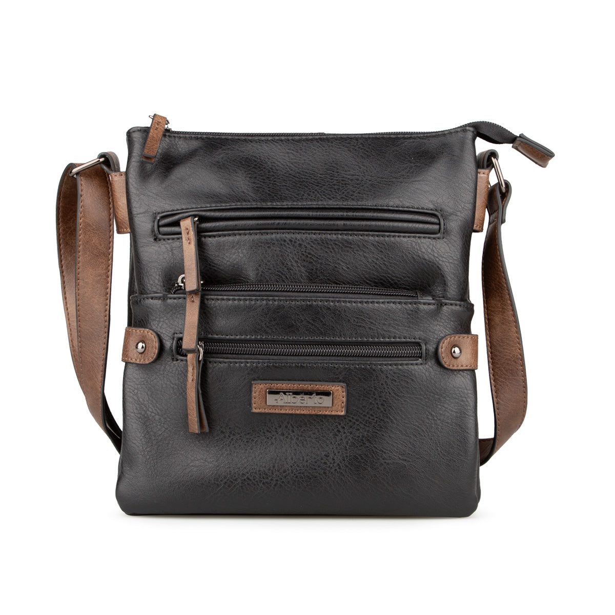 Fall for the practical style of the Alberto women's handbag. Made of synthetic leather with a printed fabric interior, it can be worn on the shoulder or as a crossbody thanks to its adjustable strap. Its ideal size and multiple inner and outer pockets offer optimized storage for all your days.