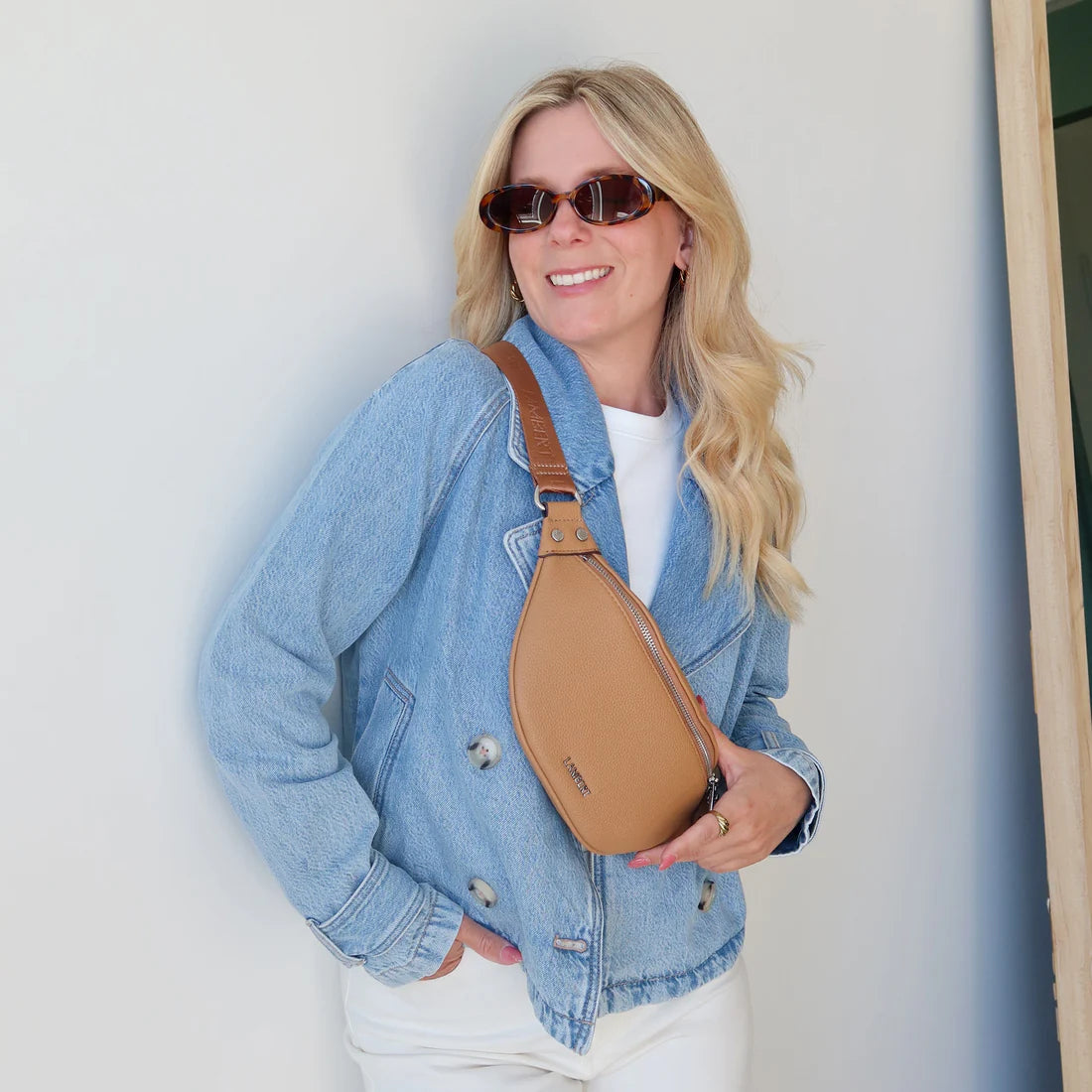 Born from an exclusive collaboration with Sarah Couture, the Sarah belt bag combines sleek style and functionality. Its compact size allows you to carry the essentials without bulk, perfect for busy days. It features a spacious main compartment, three card slots, a convenient zippered back pocket, and an integrated key holder to keep everything within reach.