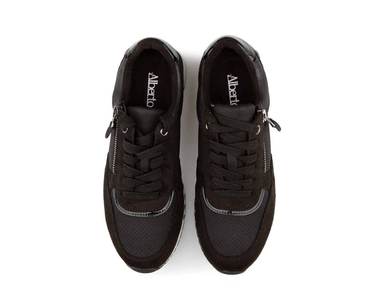 These Alberto women's shoes stand out with their 1.5 inch wedge heel and practical design featuring laces and a zipper. Made of PU and microfiber, they provide comfort and style, with a removable insole and durable TPR outsole.