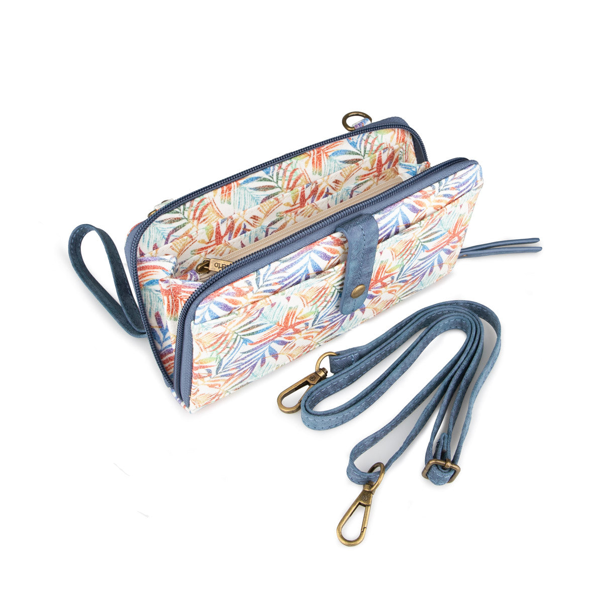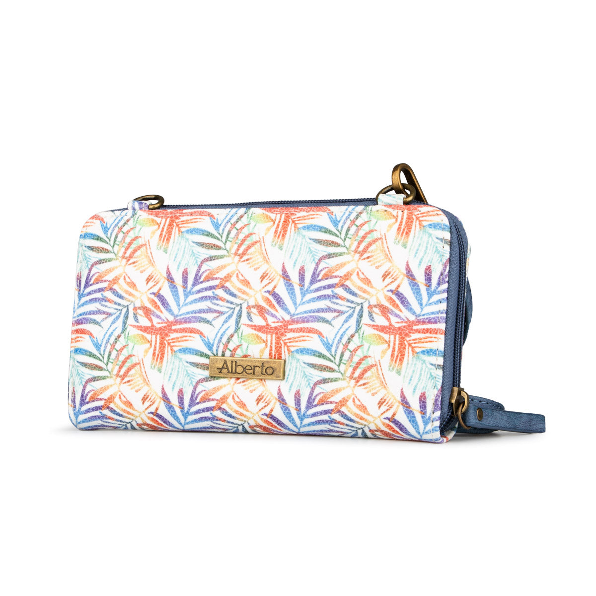 The Alberto wallet for women is distinguished by its two removable straps offering versatility of use. Equipped with a secure zipper, it reveals multiple compartments, adding a practical touch to its elegant design.