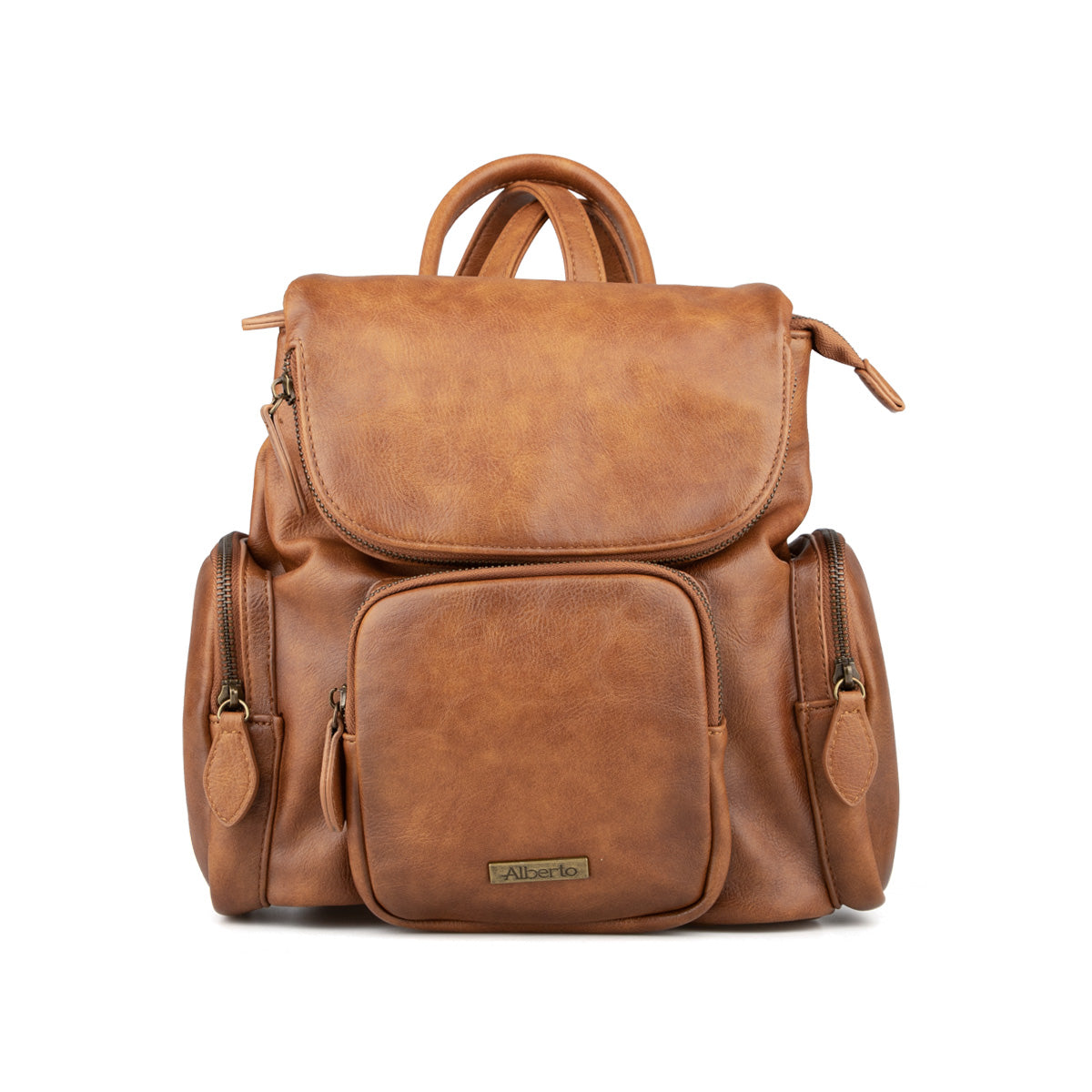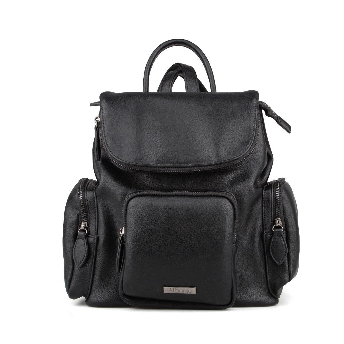 Practical and stylish, this Alberto women's backpack is made of synthetic leather with a printed fabric interior. Its adjustable shoulder strap and handle ensure optimal comfort, while its many inner and outer pockets allow for organized and quick storage of your personal belongings.