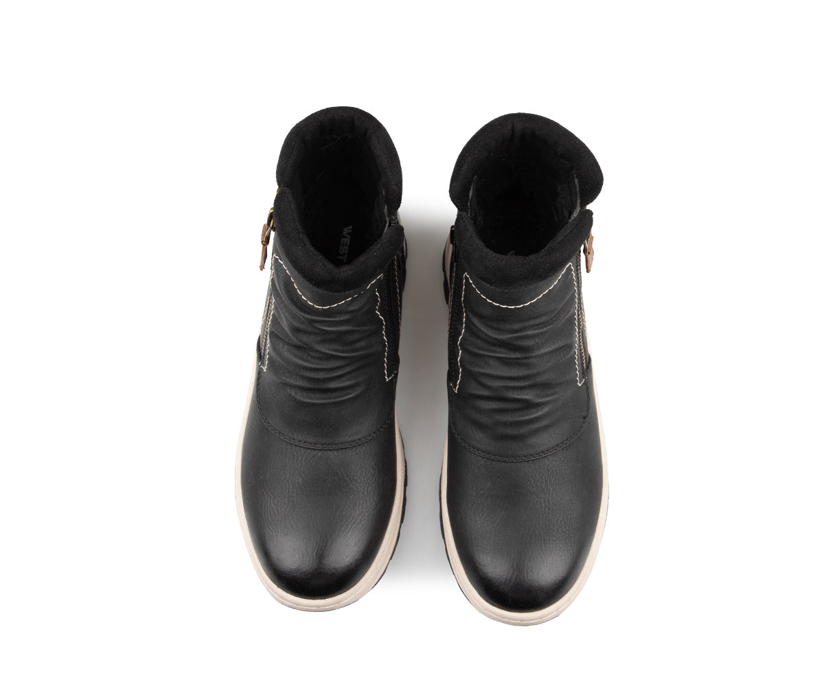West Way Women's Lined Boots offer the perfect combination of comfort and style with their practical design. Featuring an interior zipper, these short boots are easy to put on and take off. The wedge heel adds an elegant touch while remaining comfortable. The faux fur lining provides pleasant warmth, ideal for cooler days. The removable felt insole provides excellent cushioning, while the TPR outsole ensures long-lasting grip.