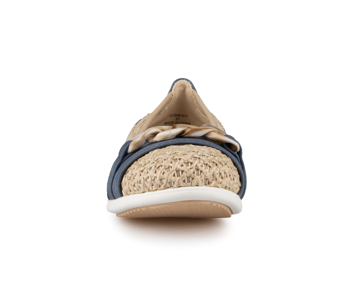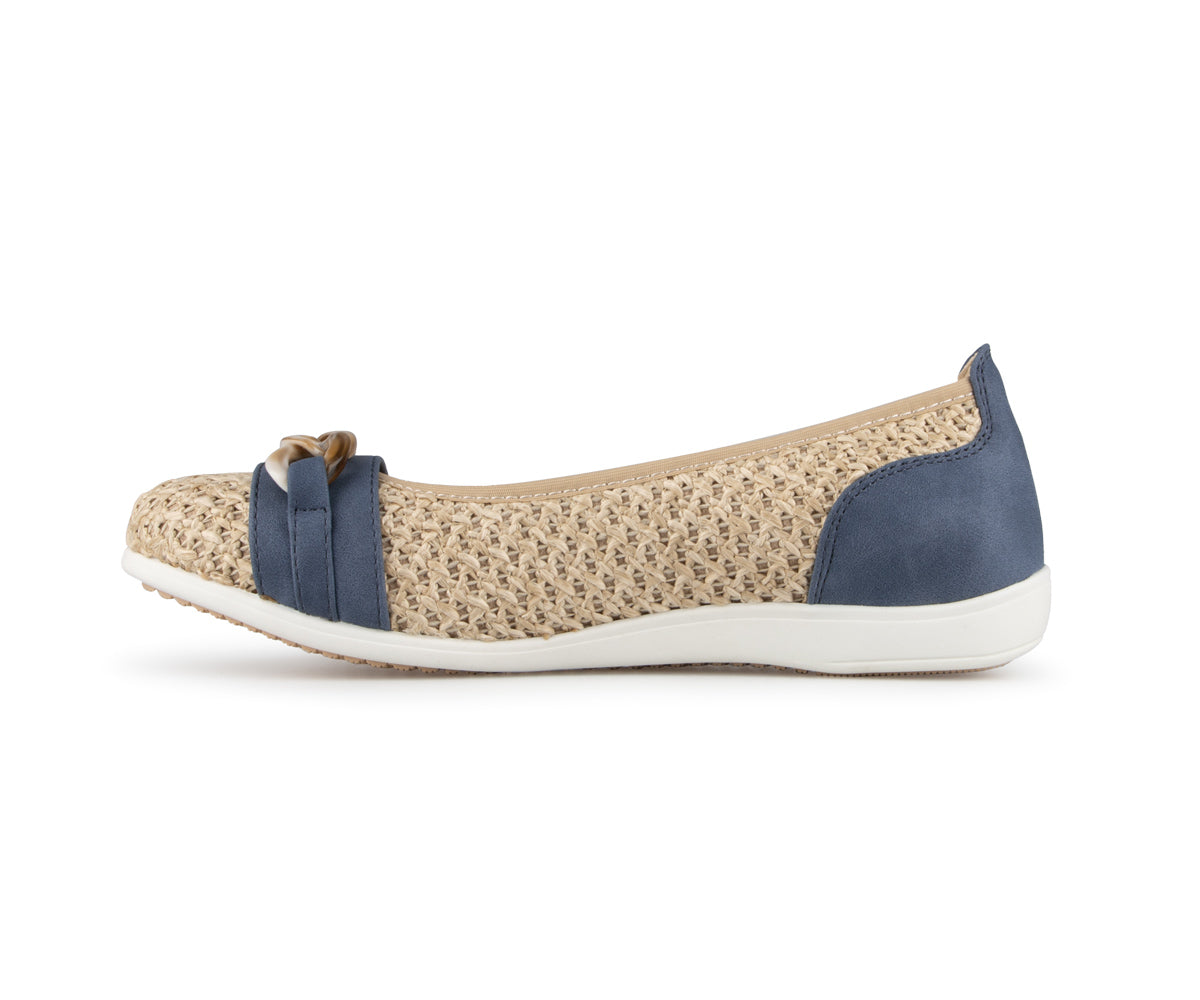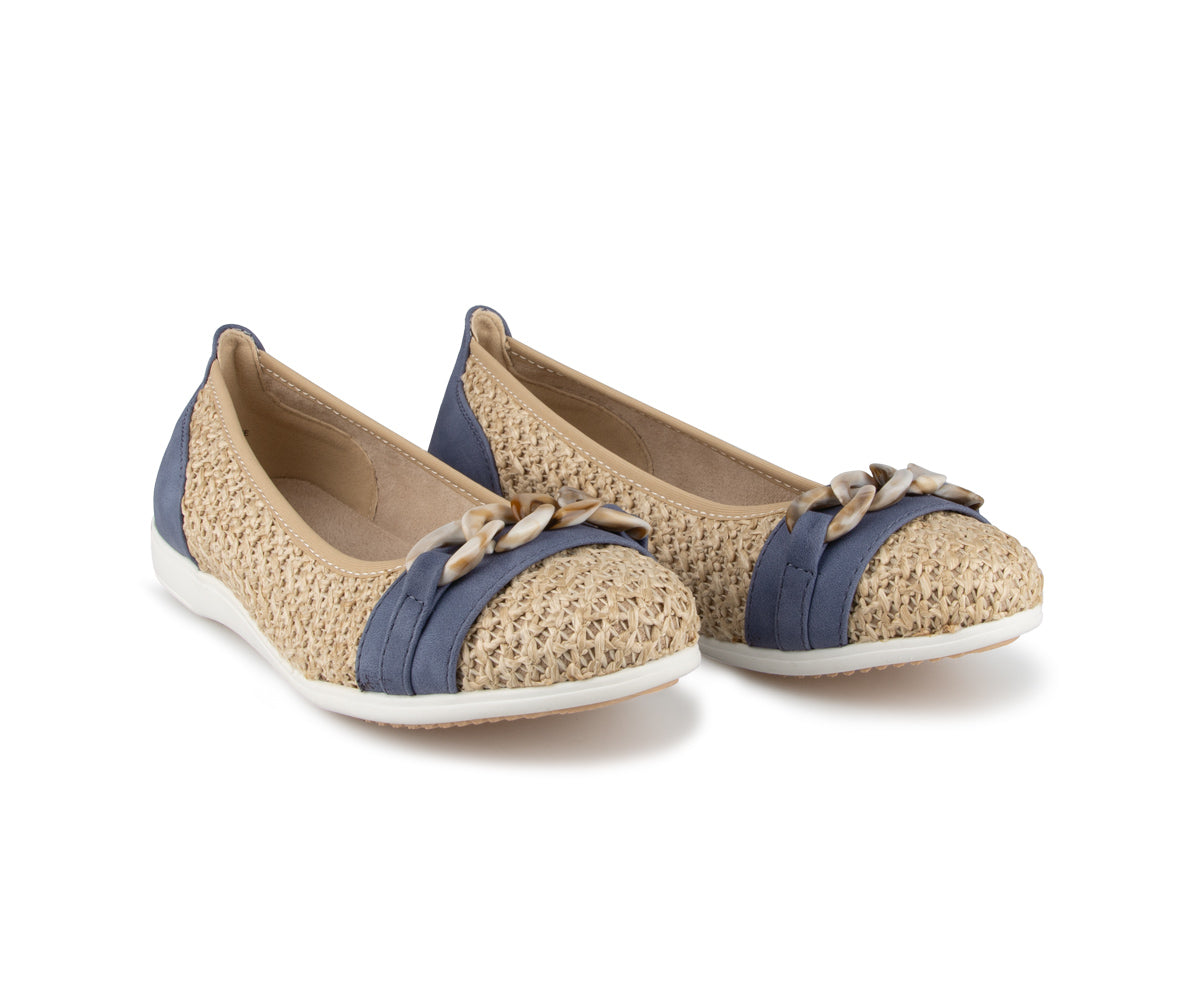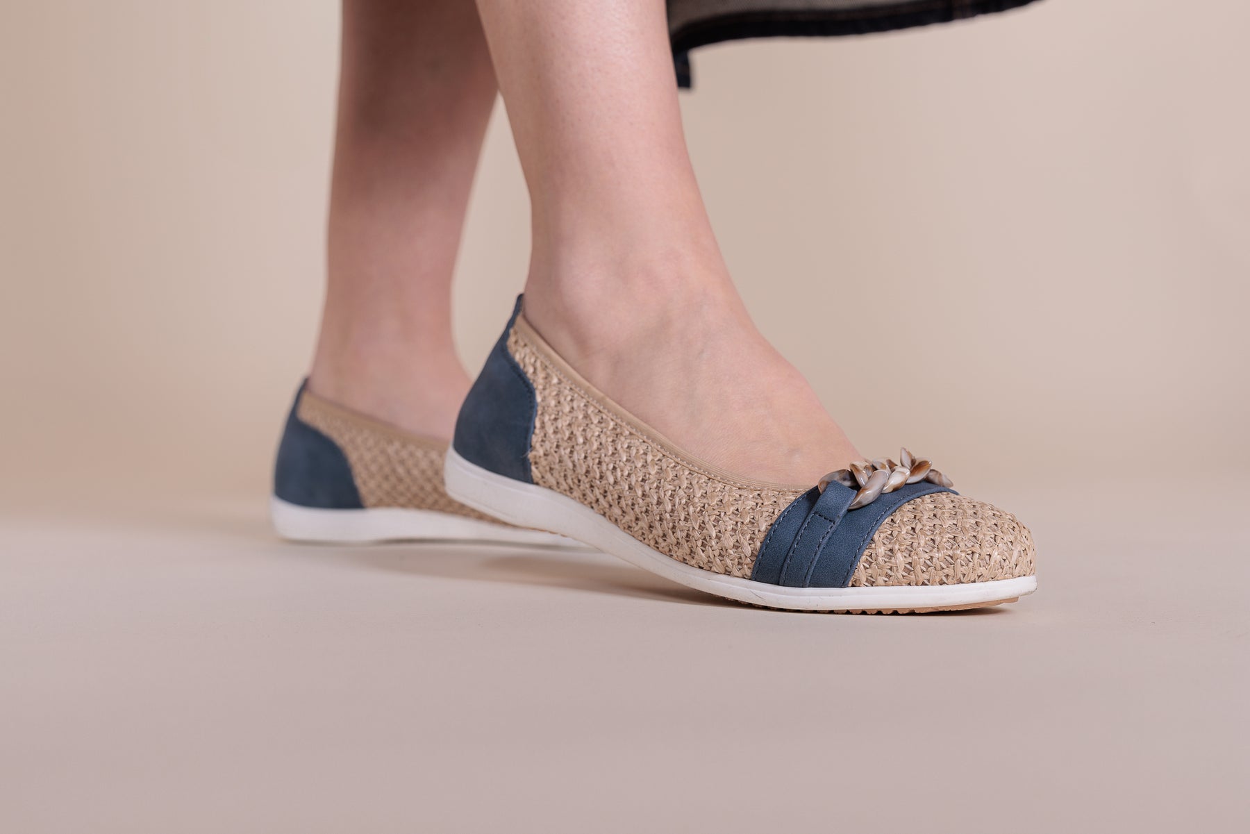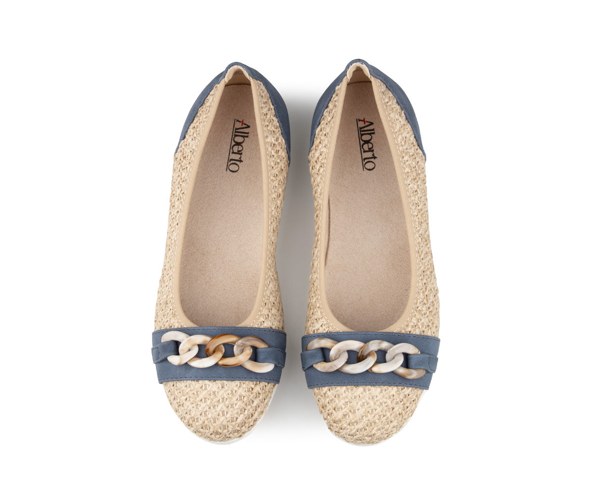 The Alberto Marie-Jane shoe for women combines elegance and practicality. Made from blue synthetic leather and beige straw, this unique model offers a microfiber lining and insole, ensuring optimal comfort. Its TPR outsole provides reliable grip, while its flat heel ensures excellent cushioning for a pleasant daily walk.