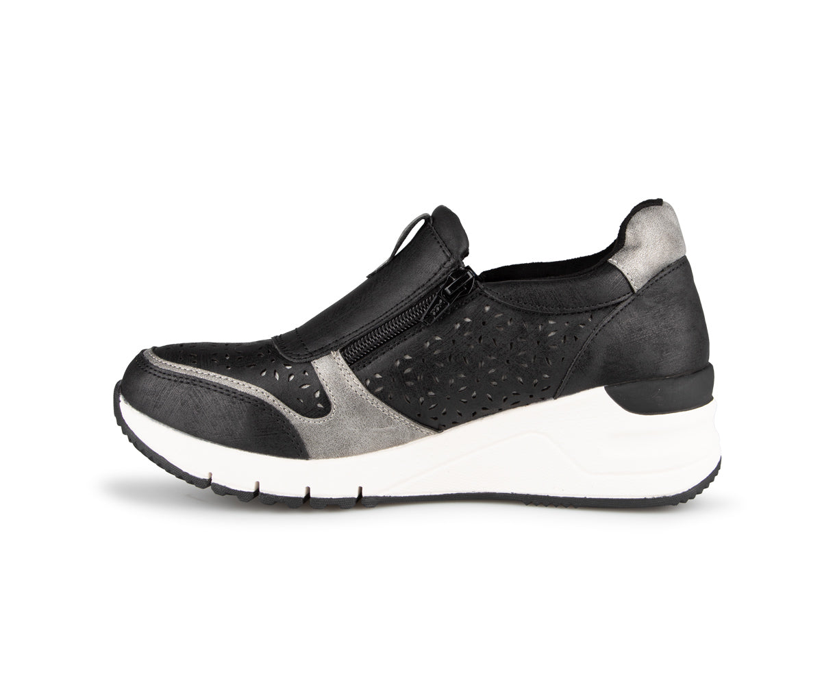 These Alberto shoes for women in synthetic leather feature a YKK zipper and elastic on the vamp, offering not only style and practicality, but also ease of putting on. In addition, they are equipped with a removable microfiber insole for personalized comfort and a TPR rubber outsole ensuring optimal grip.