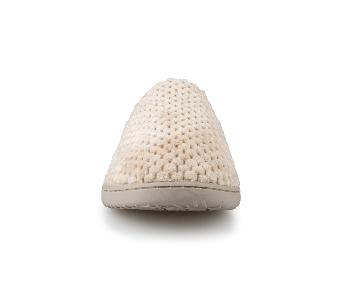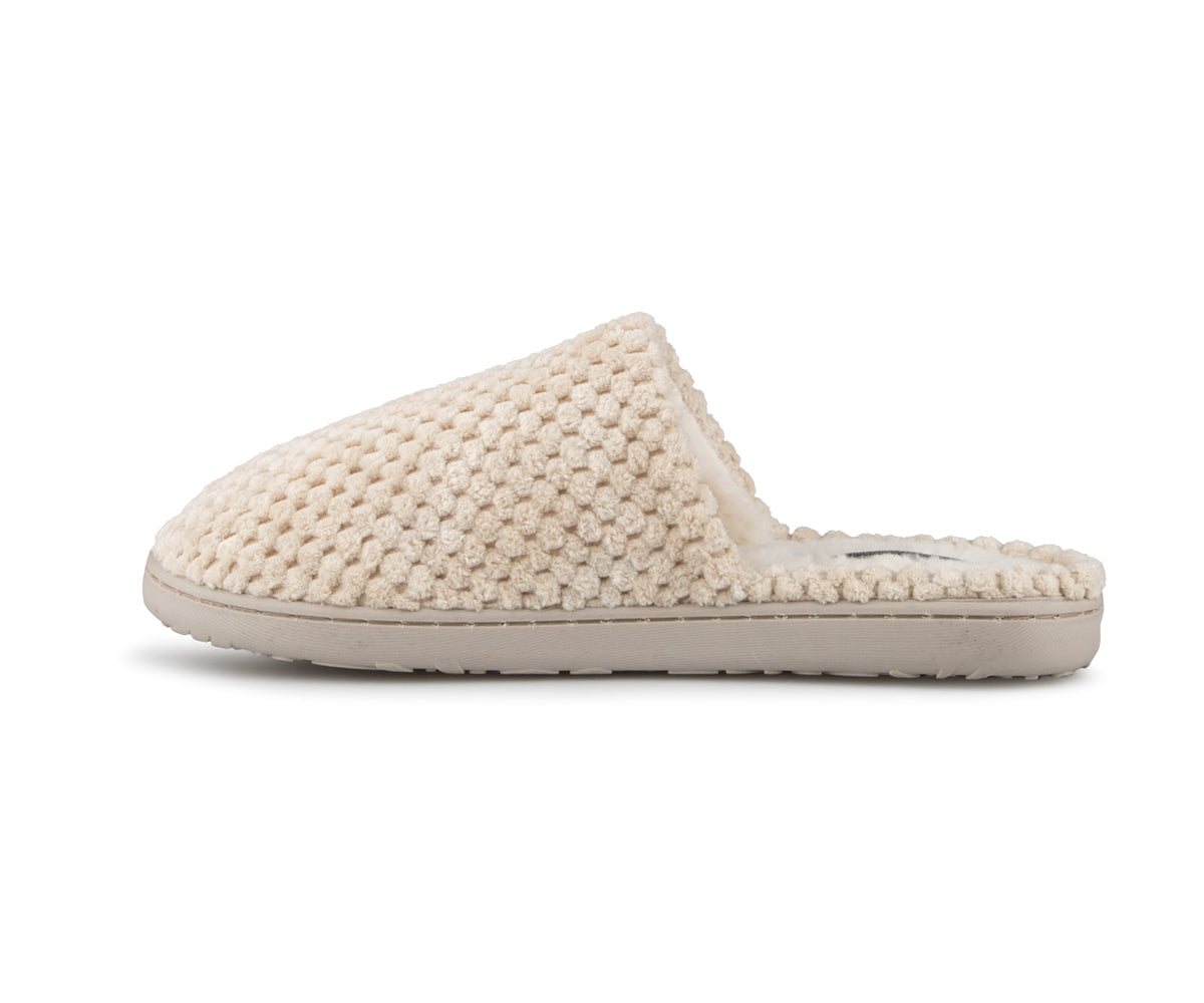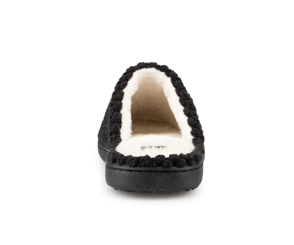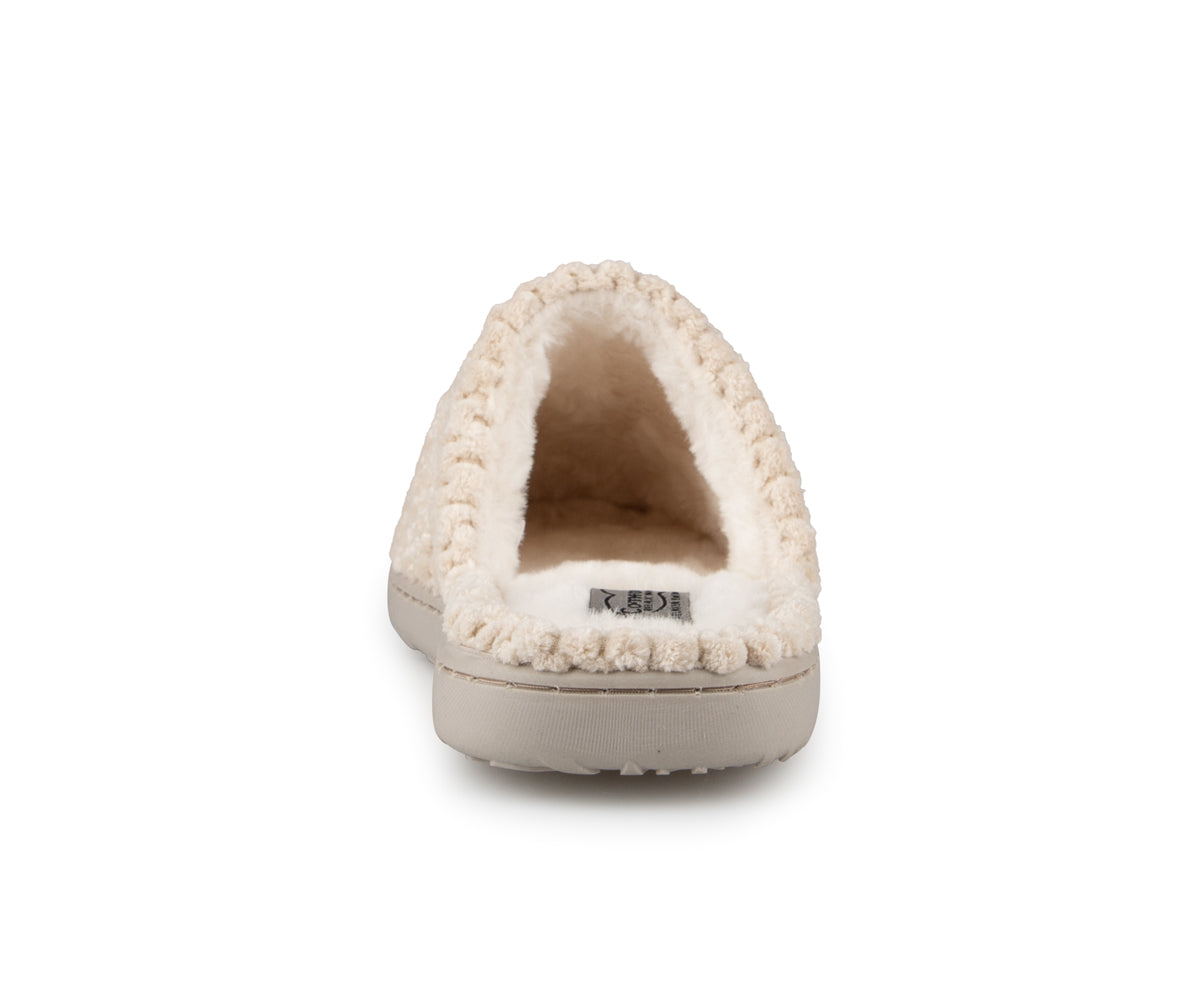 These Comfortcare women's mule slippers are made from very soft materials for optimal comfort. They feature a synthetic fleece lining and matching stitching. The black TPR sole ensures durable grip and is also finished with matching stitching for a clean finish.