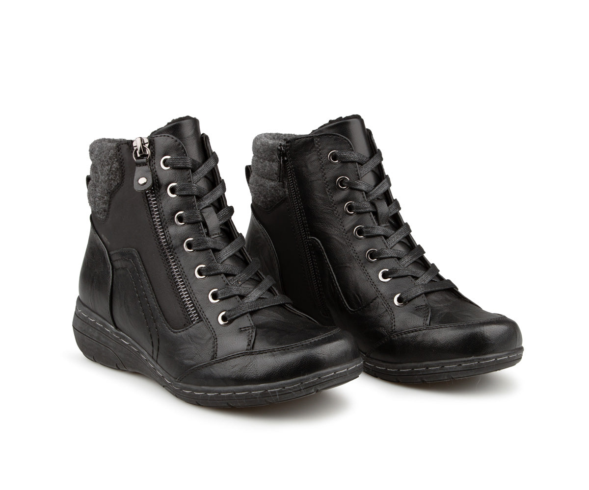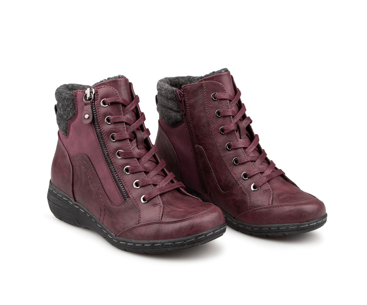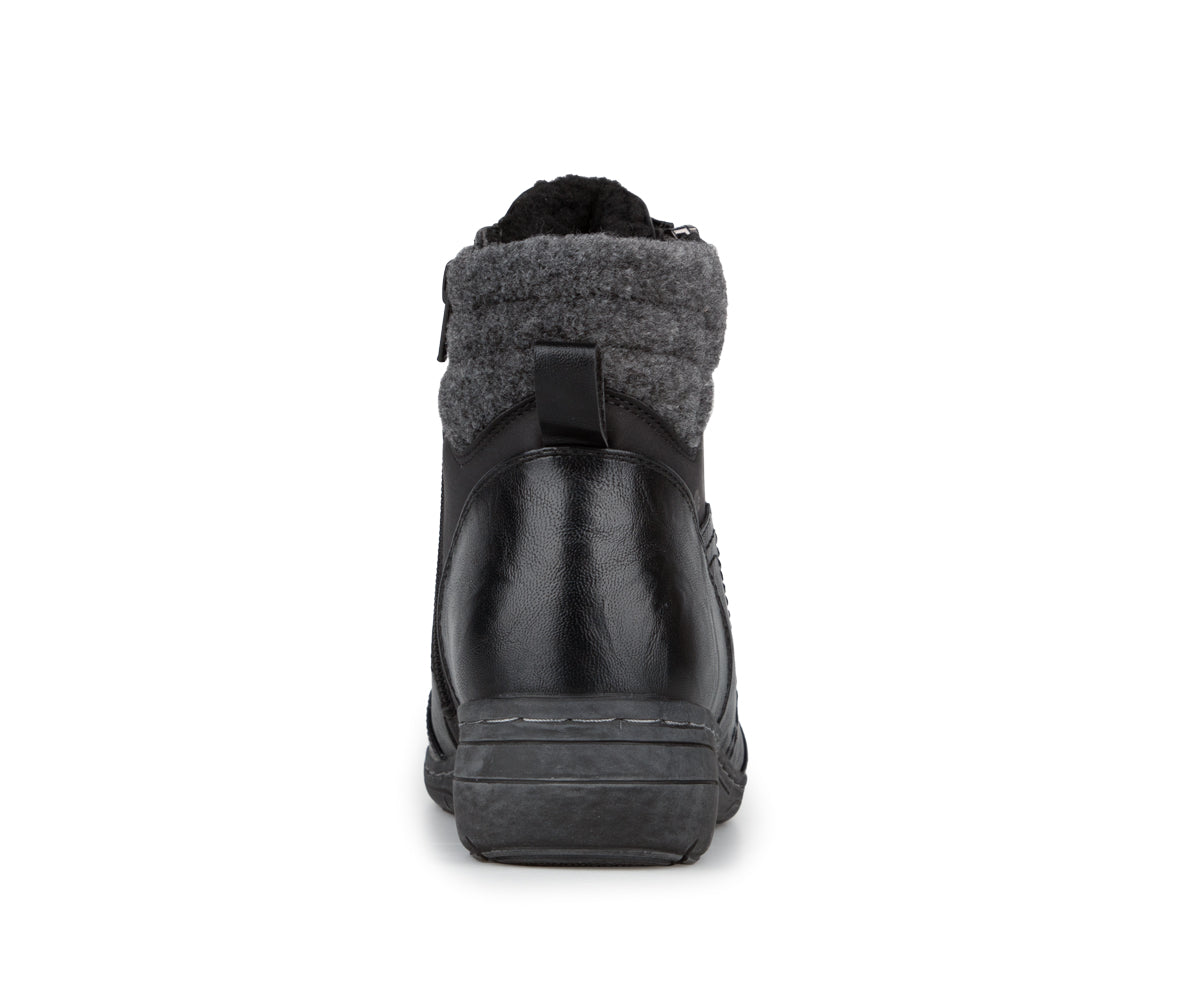 These Ultimate Comfort winter boots for women combine elegance and warmth thanks to their nubuck PU and felt construction. Their synthetic wool lining keeps your feet nice and warm, while the removable felt insole and TPR outsole provide comfort and grip.