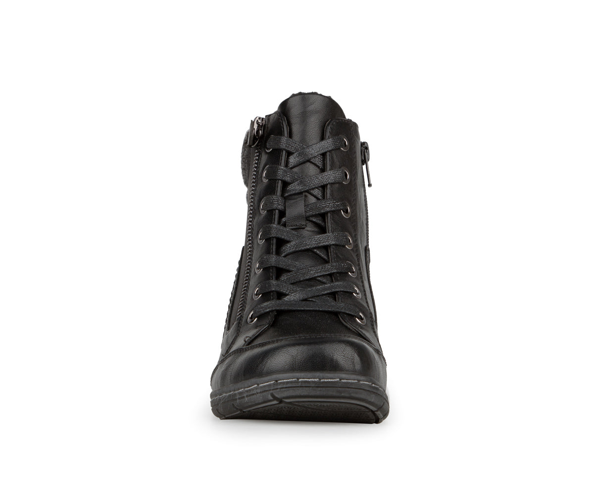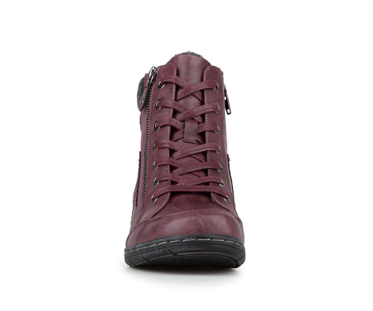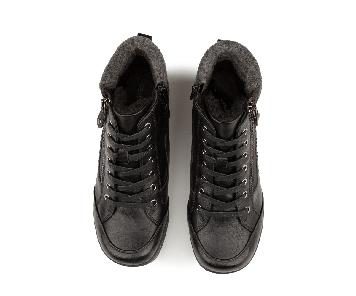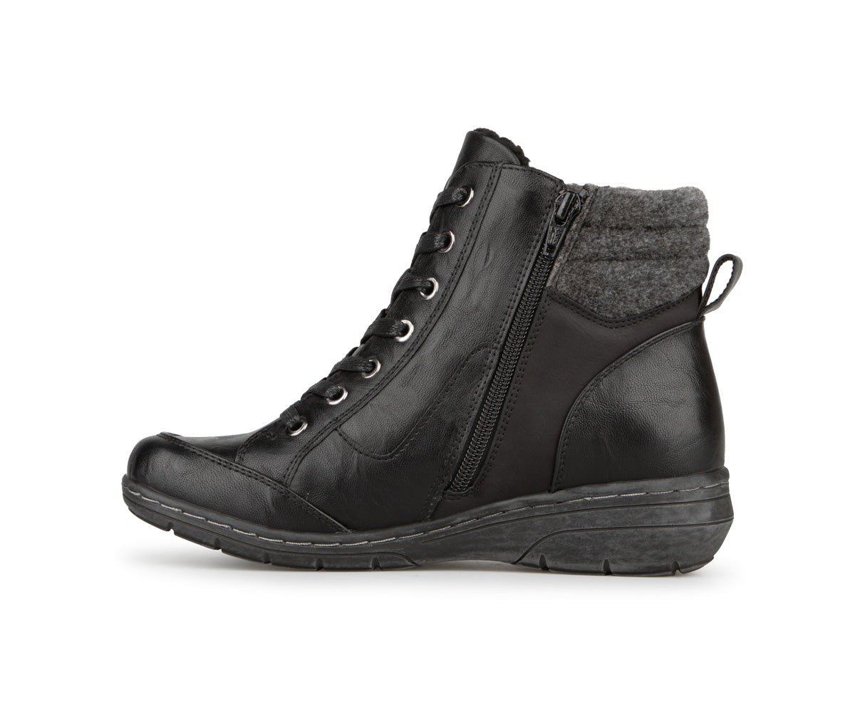 These Ultimate Comfort winter boots for women combine elegance and warmth thanks to their nubuck PU and felt construction. Their synthetic wool lining keeps your feet nice and warm, while the removable felt insole and TPR outsole provide comfort and grip.