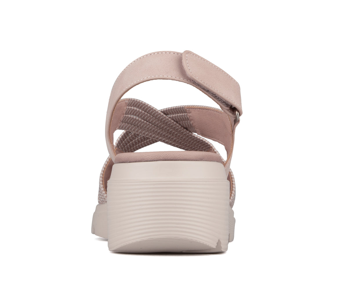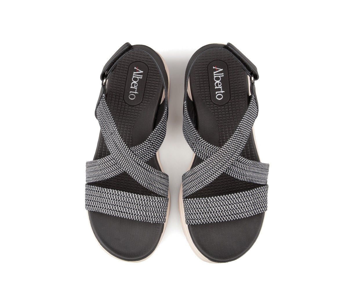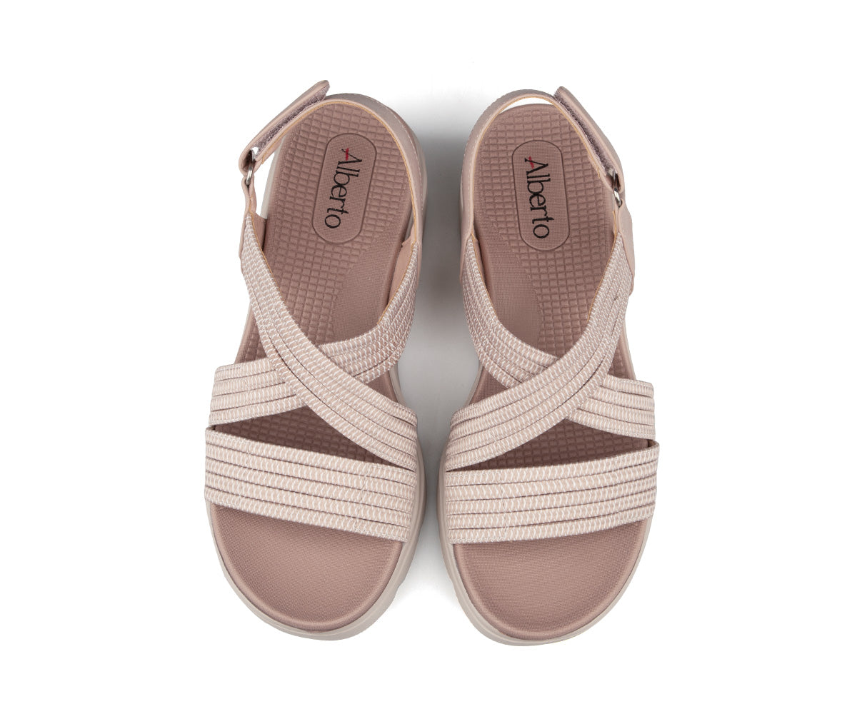 Alberto women's wedge sandals, crafted from synthetic nubuck leather for a stylish and versatile look. The Velcro closure combined with the elastic band ensures a comfortable and easy fit. The PU insole provides good support, while the rubber foam outsole offers lightness and grip.