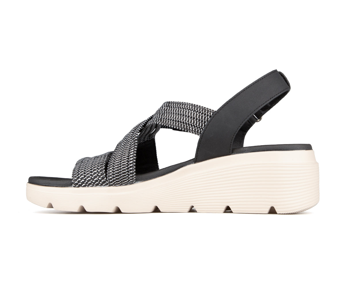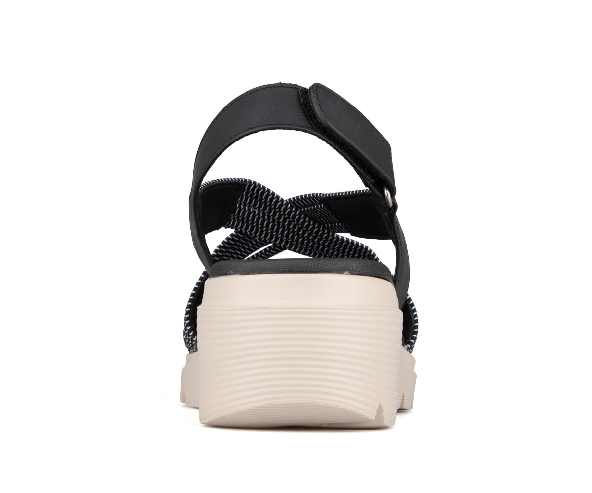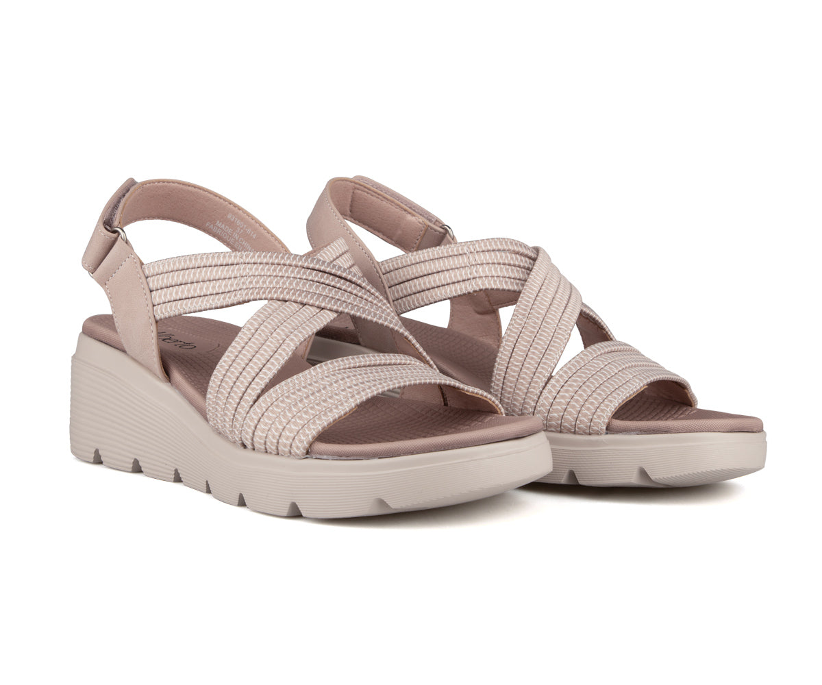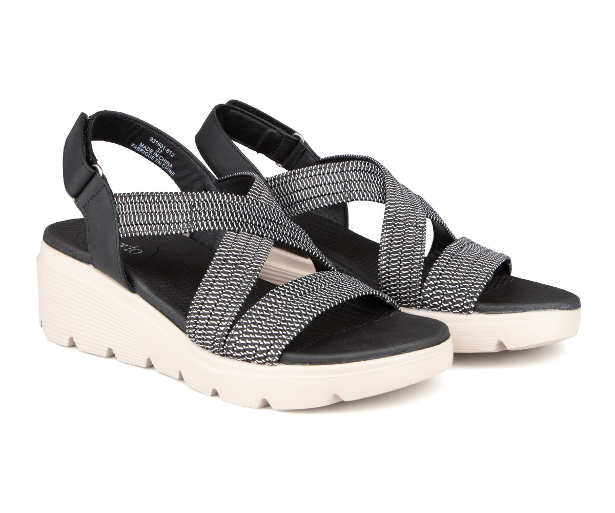 Alberto women's wedge sandals, crafted from synthetic nubuck leather for a stylish and versatile look. The Velcro closure combined with the elastic band ensures a comfortable and easy fit. The PU insole provides good support, while the rubber foam outsole offers lightness and grip.
