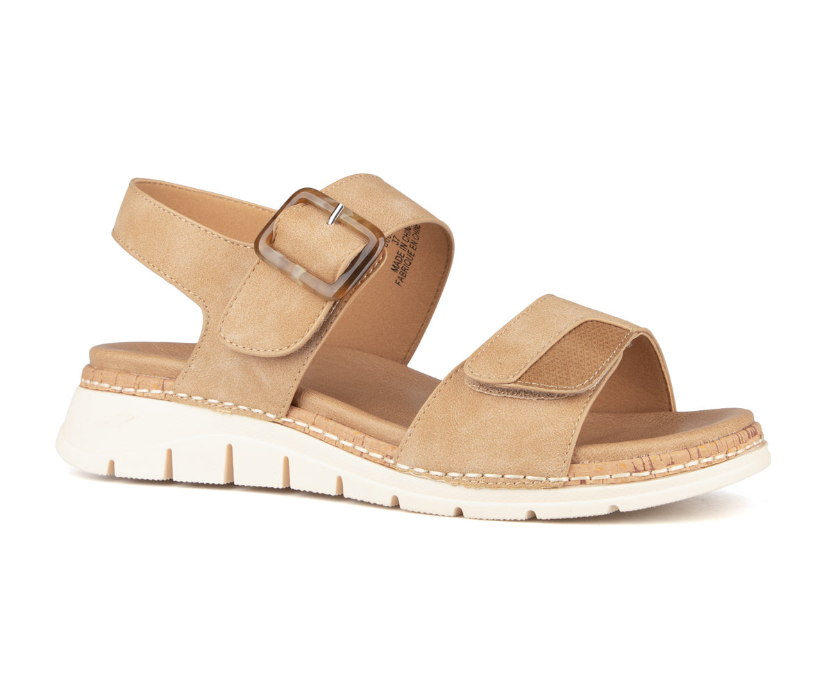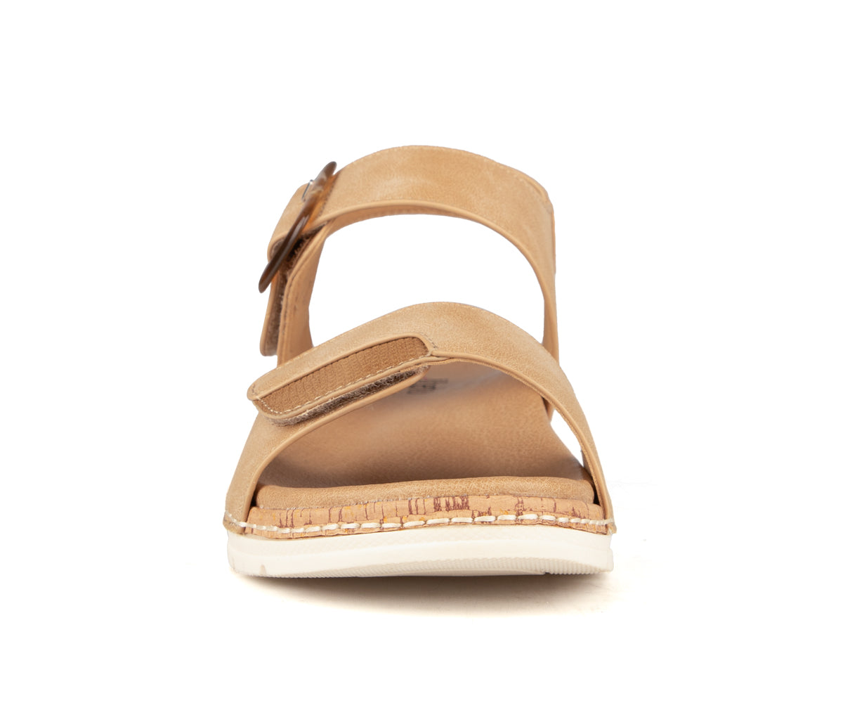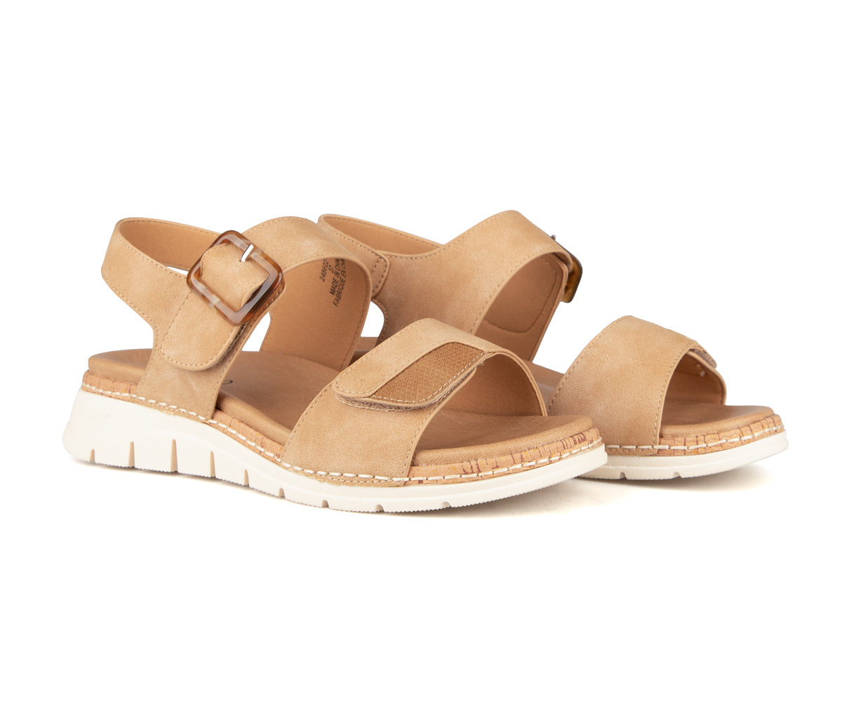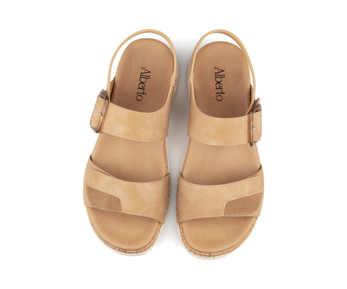 Alberto sandals for women, made from synthetic nubuck leather for an elegant and durable style. The velcro closure makes them easy to put on and allows for a personalized fit, while the wedge heel offers a feminine silhouette with increased stability. The TPR outsole ensures good grip for optimal comfort every day.