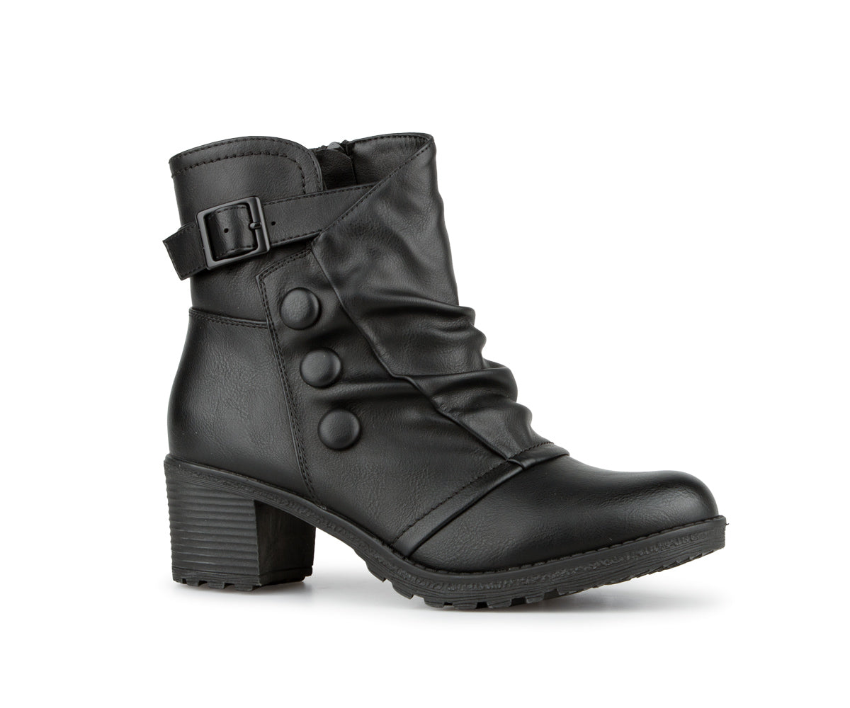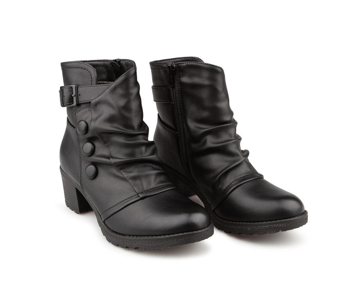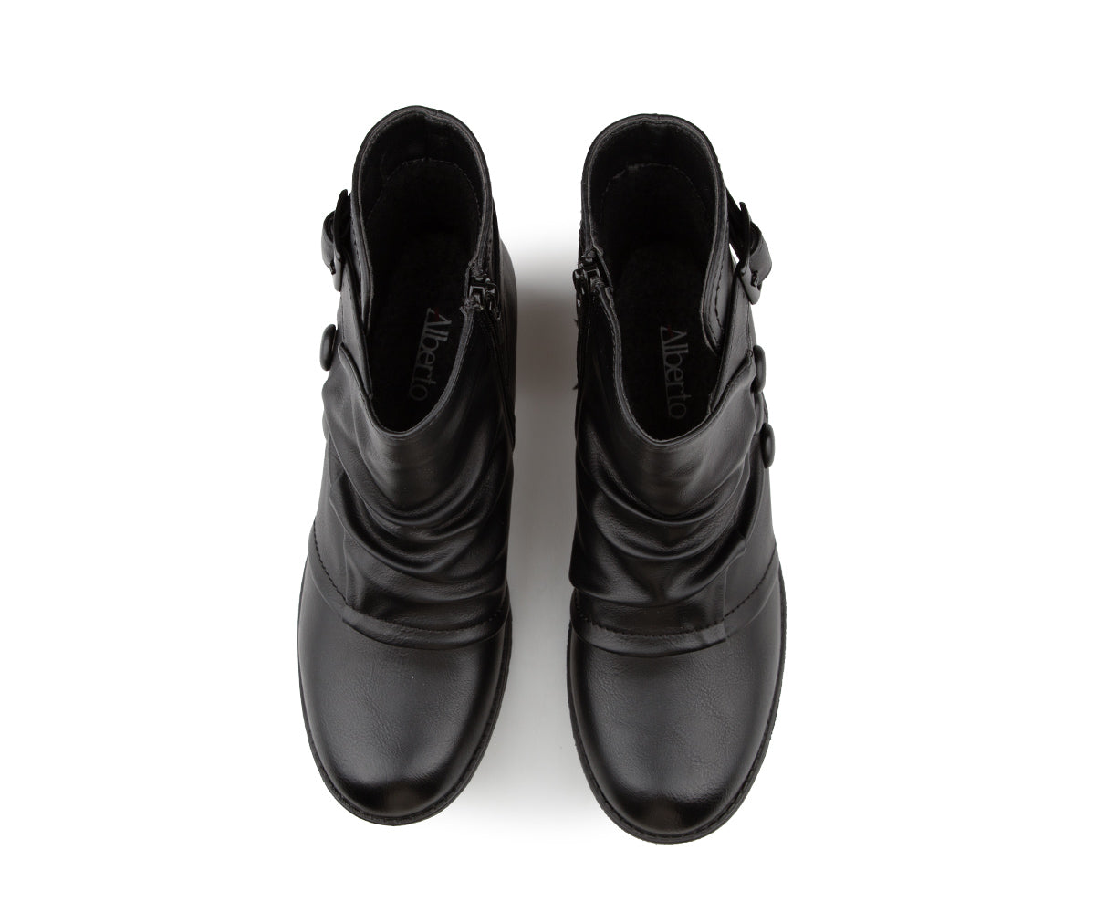 These Alberto short boots for women offer a perfect balance of style and warmth. Made of synthetic leather with a soft synthetic wool lining, they keep your feet nice and warm. Their 2-inch high heel adds an elegant touch, while the YKK zipper makes them easy to put on. Comfortable thanks to their felt insole and durable TPR outsole.