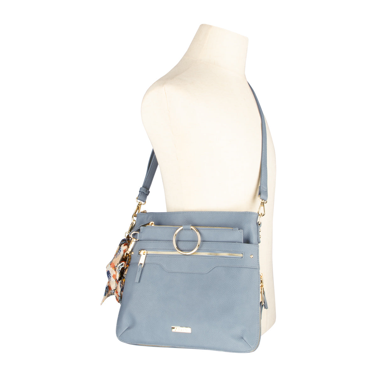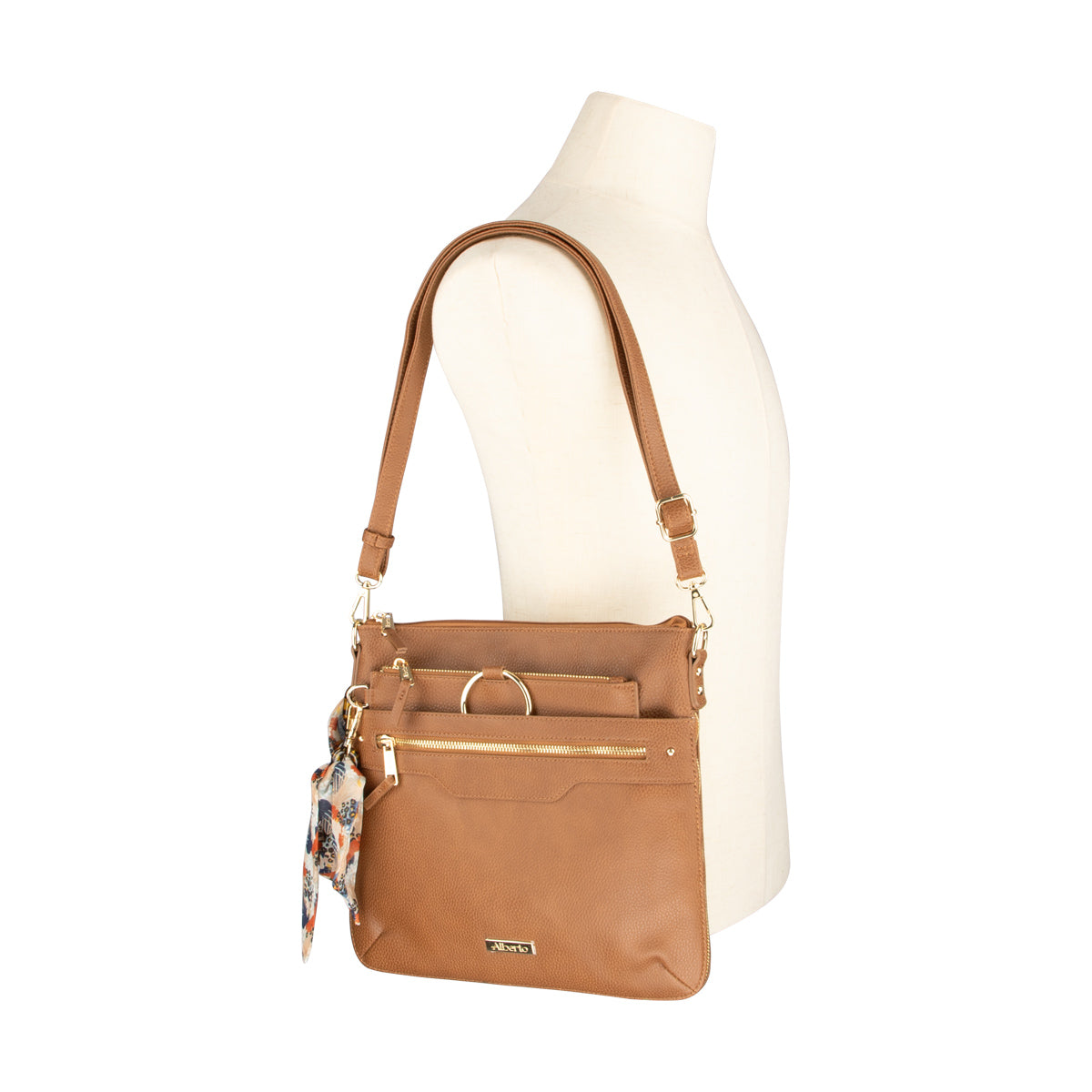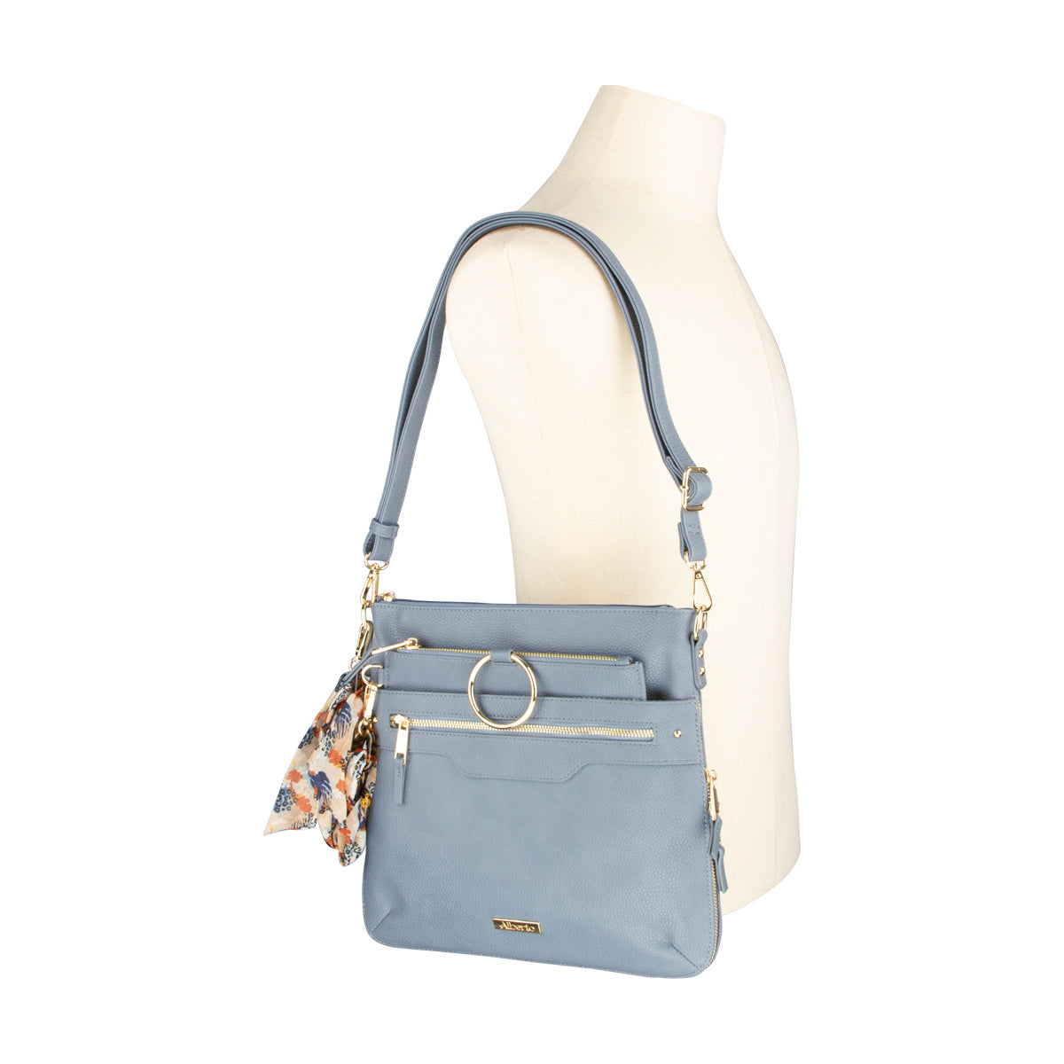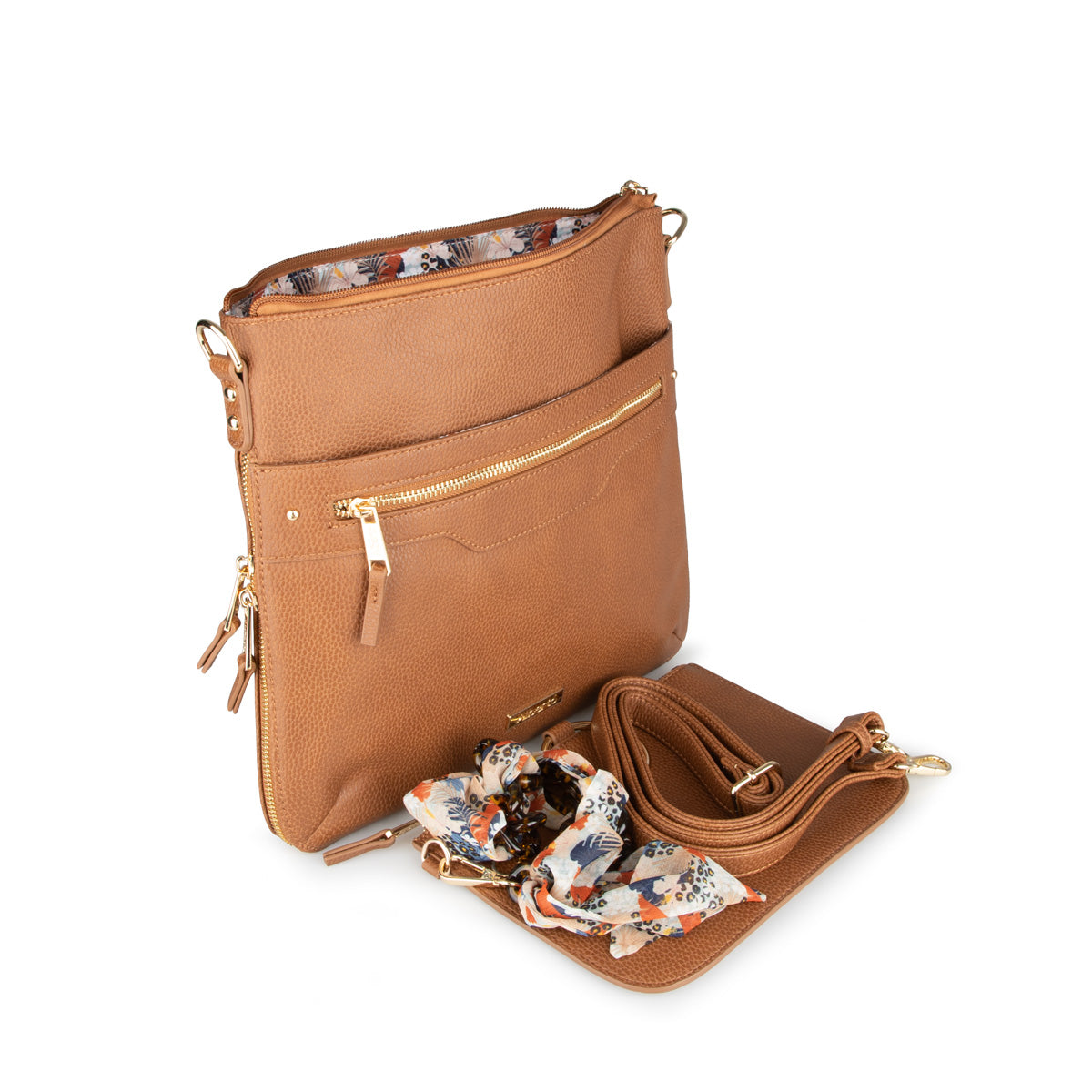 This Alberto shoulder handbag for women is not only practical but also stylish. It has a removable pouch, ideal for storing your small essential items safely. Plus, a decorative scarf adds an extra touch of style to your look. The zipper around the contour of the bag offers an expansion option, allowing you to adapt the size of the bag according to your needs.