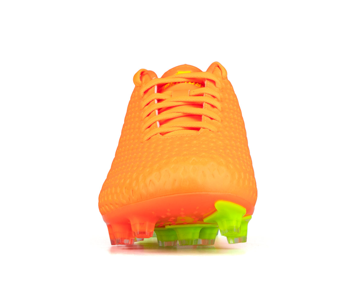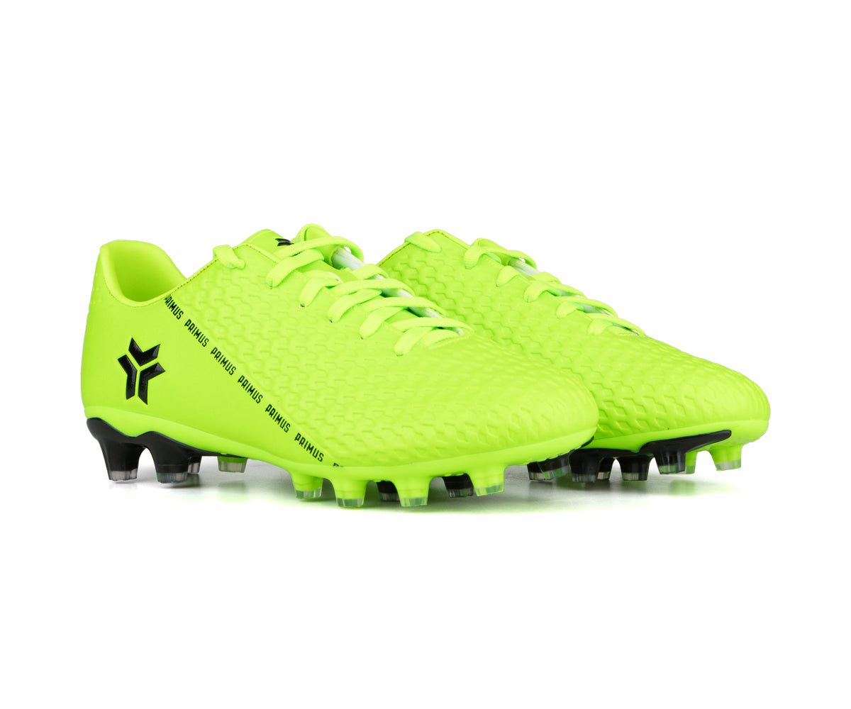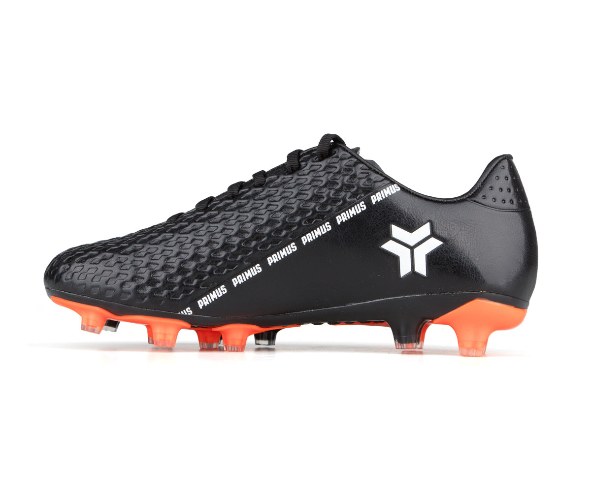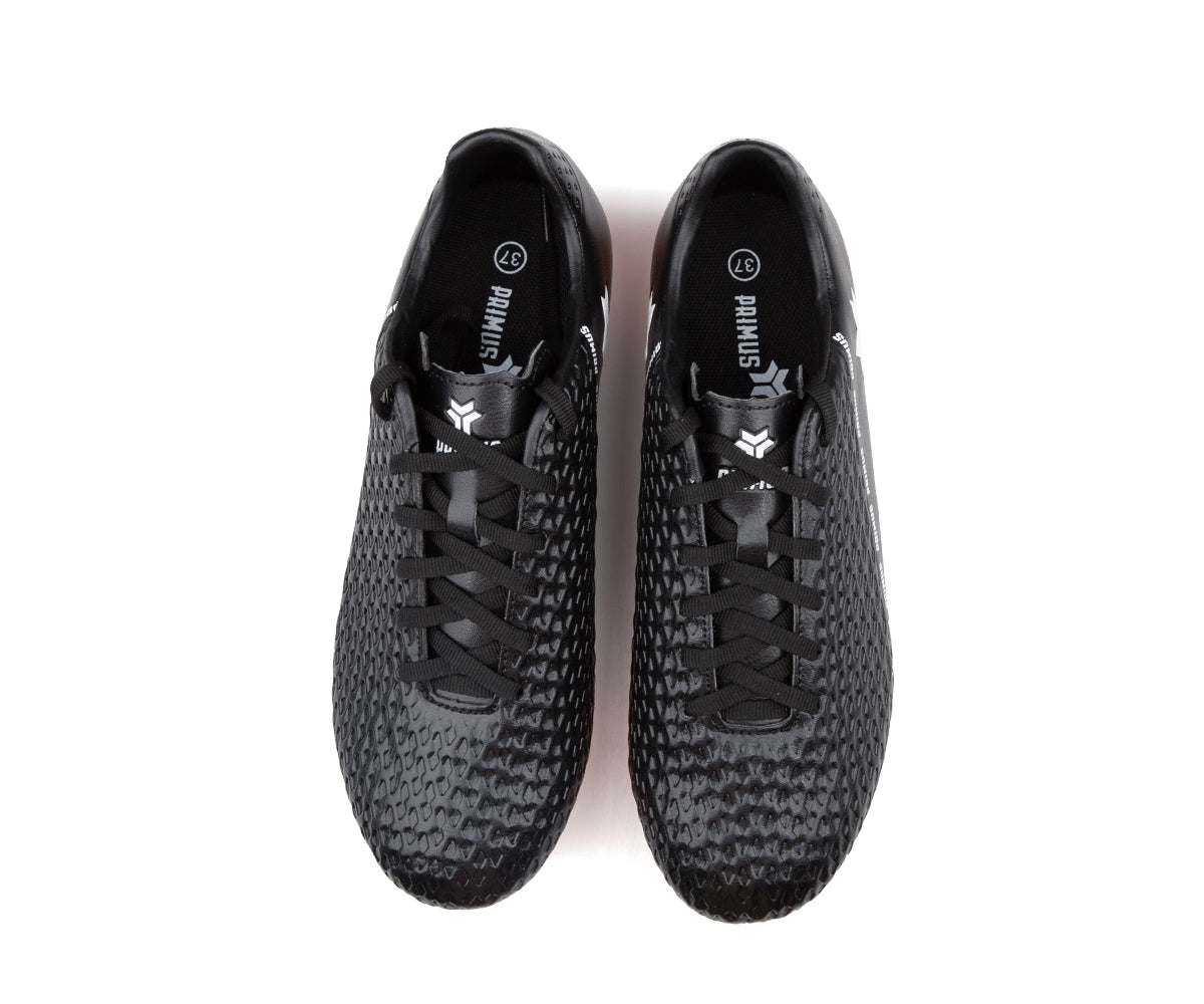 Primus kids' soccer shoes designed for outdoor grass surfaces. Their durable synthetic upper provides good support, while the TPU sole with cleats ensures optimal traction on the field. The classic lacing allows for a precise fit to support them in every game.