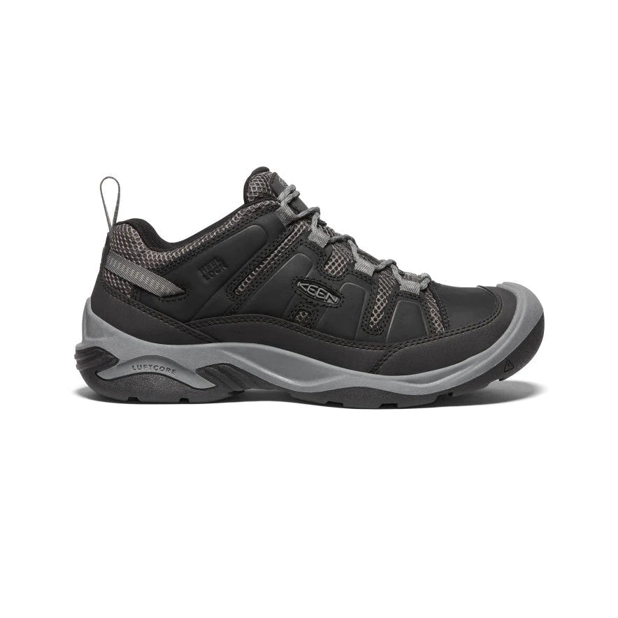 Chaussure de randonnée pour homme Keen Circadia vent. Dessus en cuir et tissu maillé. Semelle extérieure en caoutchouc.