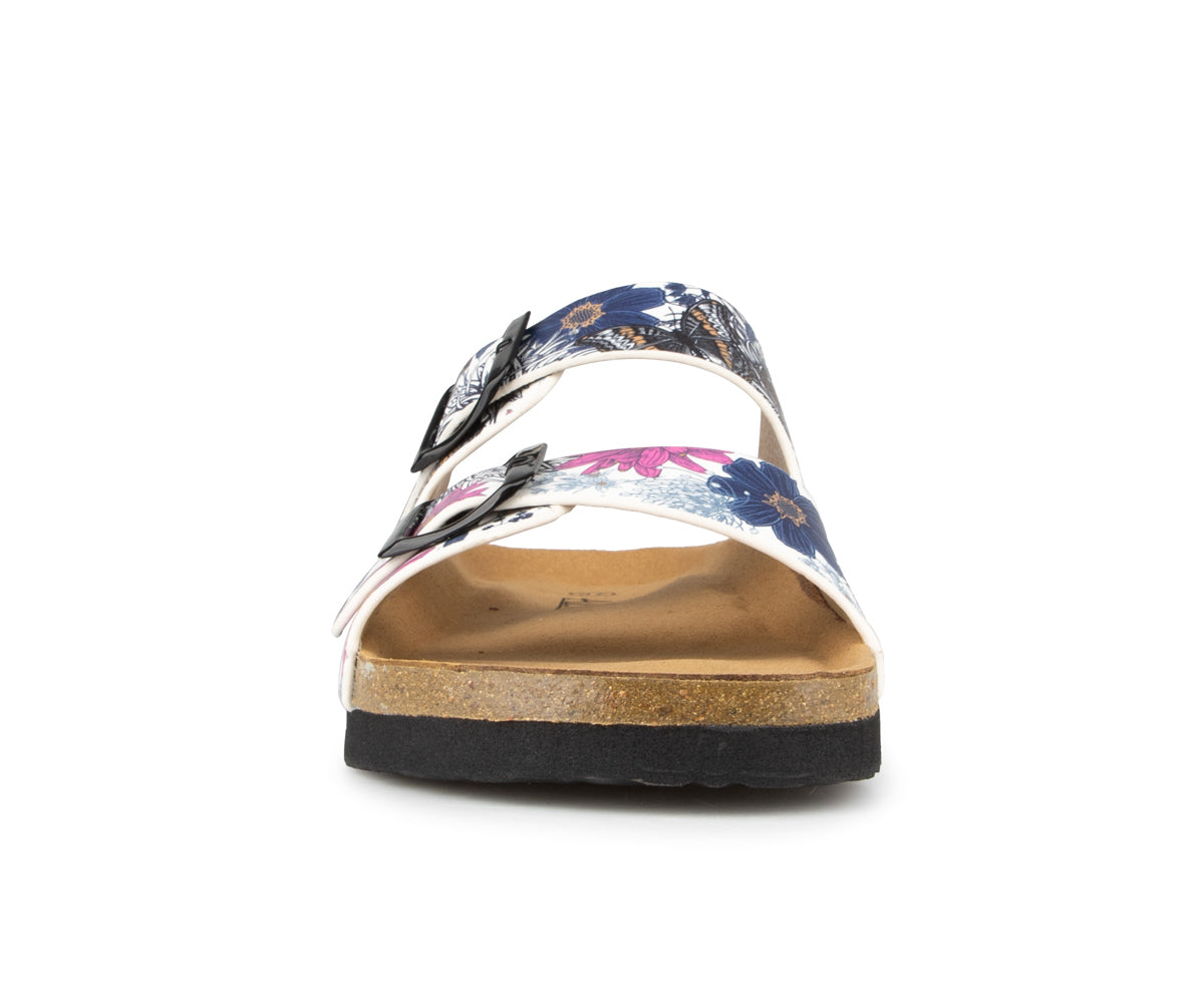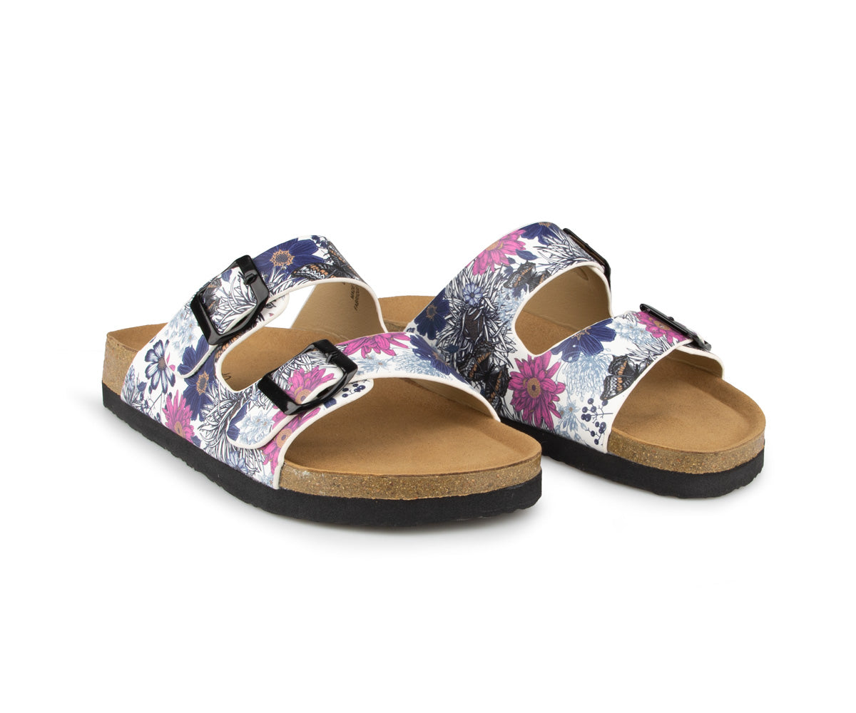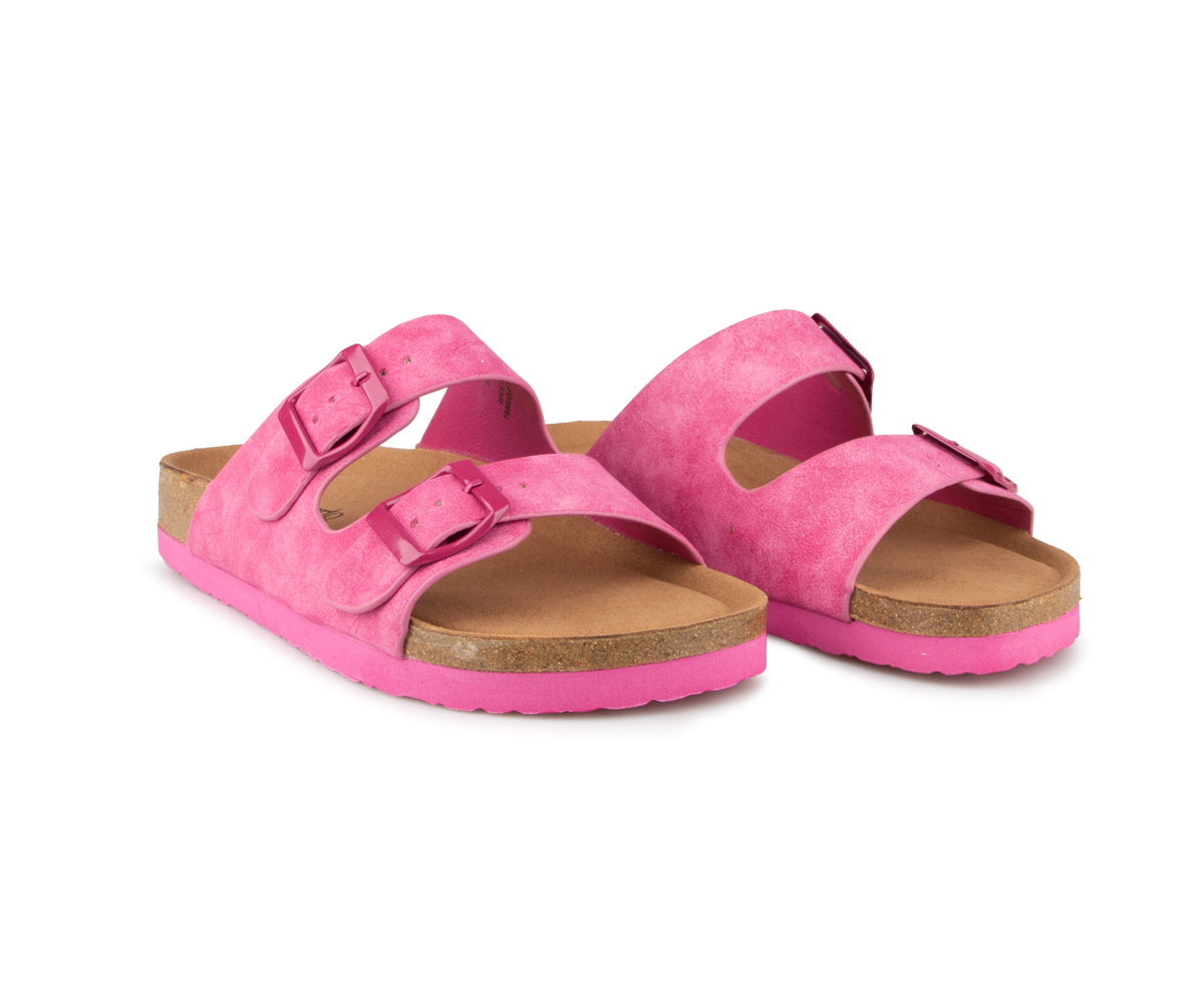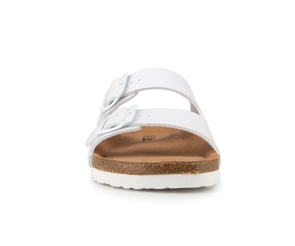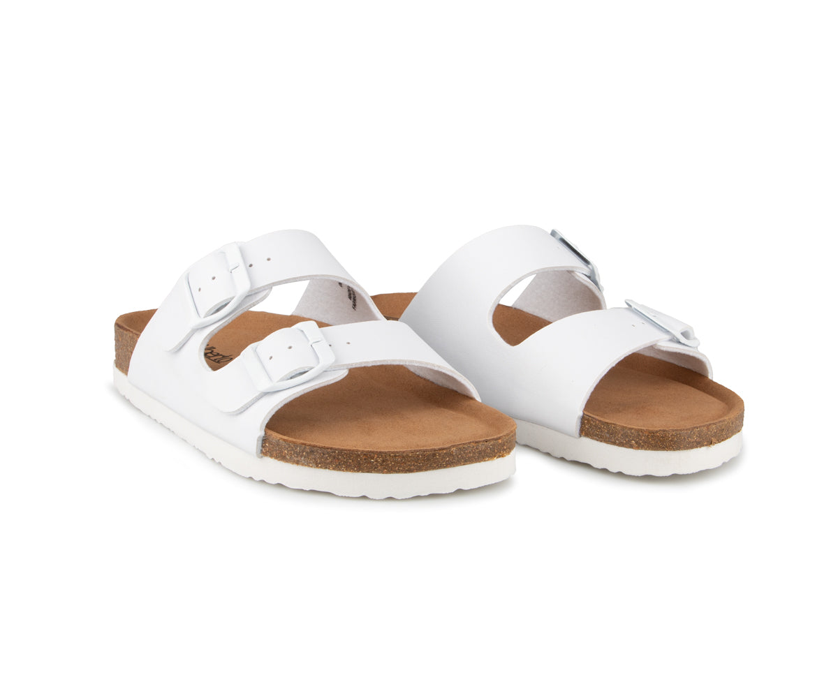 Les sandales de type mule Alberto pour femme combinent confort et style décontracté. Fabriquées avec une empeigne en cuir synthétique et une semelle en microfibre effet liège, elles offrent un design élégant et pratique. La semelle extérieure en EVA garantit légèreté et adhérence, tandis que les deux boucles ajustables sur le dessus permettent un ajustement parfait.