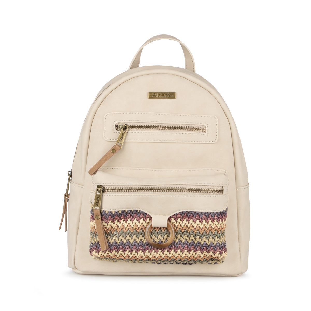 Apportez une touche bohème chic à votre quotidien avec ce sac à dos Alberto pour femme. Confectionné en cuir synthétique et en paille multicolore, il allie originalité et fonctionnalité. Doté d'une poignée, de sangles ajustables et d'une bandoulière réglable, il s’adapte à toutes vos envies. Son grand compartiment avec fermeture éclair permet de transporter vos essentiels en toute sécurité.