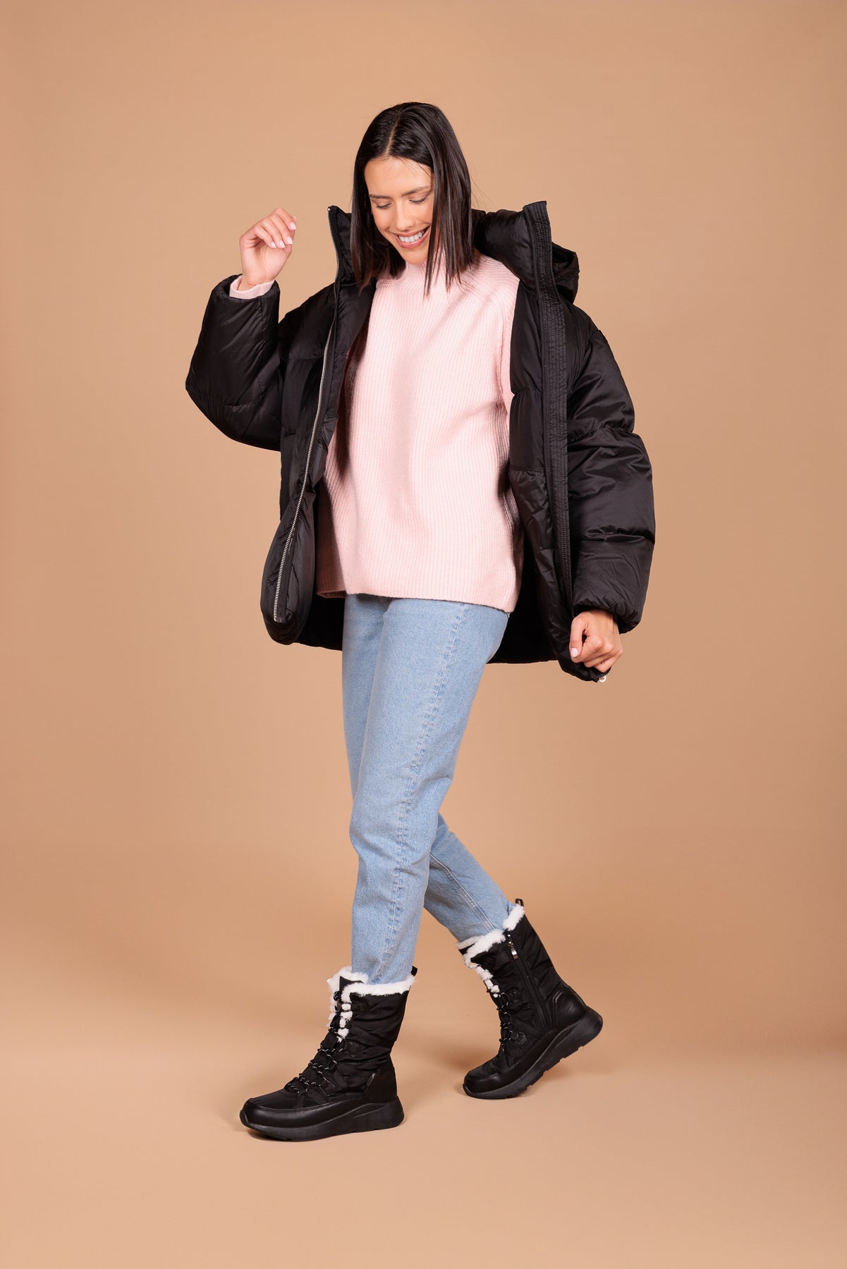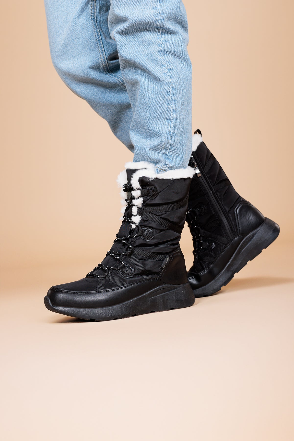 Ces bottes d'hiver Blue Rocky pour femmes allient chaleur, confort et protection contre l’humidité. La tige en nylon et cuir synthétique assure durabilité et résistance, tandis que la membrane imperméable Aquatex garde vos pieds au sec. L’isolation de 200 g procure chaleur et confort lors des journées froides, et la semelle extérieure en caoutchouc offre adhérence et stabilité sur les surfaces glissantes. Parfaites pour les activités hivernales.