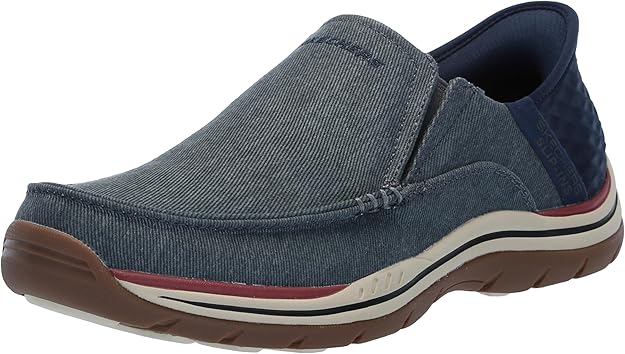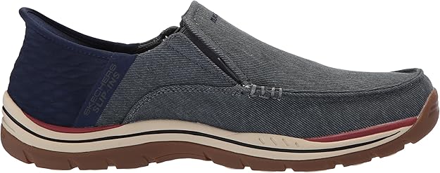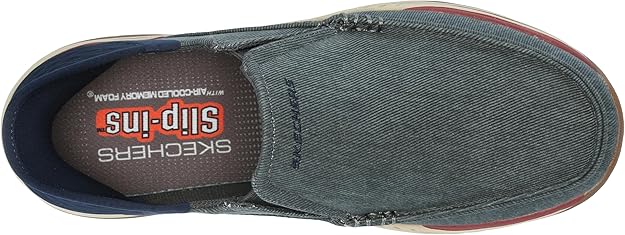 Ces souliers à enfiler Skechers Slip-ins® pour hommes combinent style et fonctionnalité avec une empeigne en toile et en matériau synthétique. Dotés d'un panneau de talon innovant, ils permettent un enfilage facile sans les mains. Le coussinet de talon exclusif Heel Pillow™ assure un maintien optimal, tandis que la conception Relaxed Fit® offre plus d'espace au niveau des orteils et de l’avant-pied pour un confort supérieur. La semelle intérieure coussinée Skechers Air-Cooled Memory Foam® garantit un amorti respirant tout au long de la journée. Fabriqués avec des matériaux 100 % végétaliens, ces souliers sont parfaits pour les hommes soucieux du confort et de l’éthique.