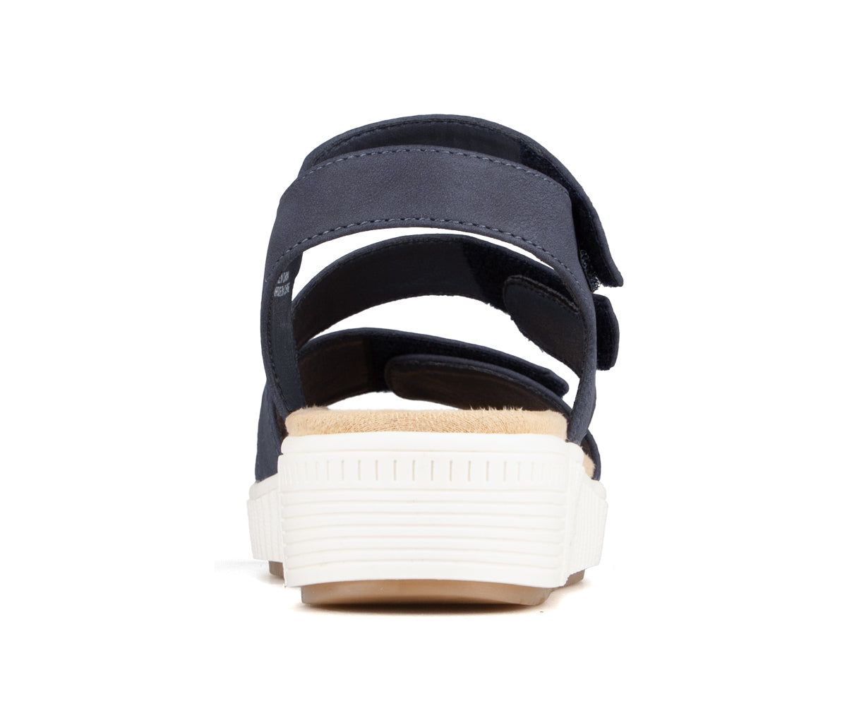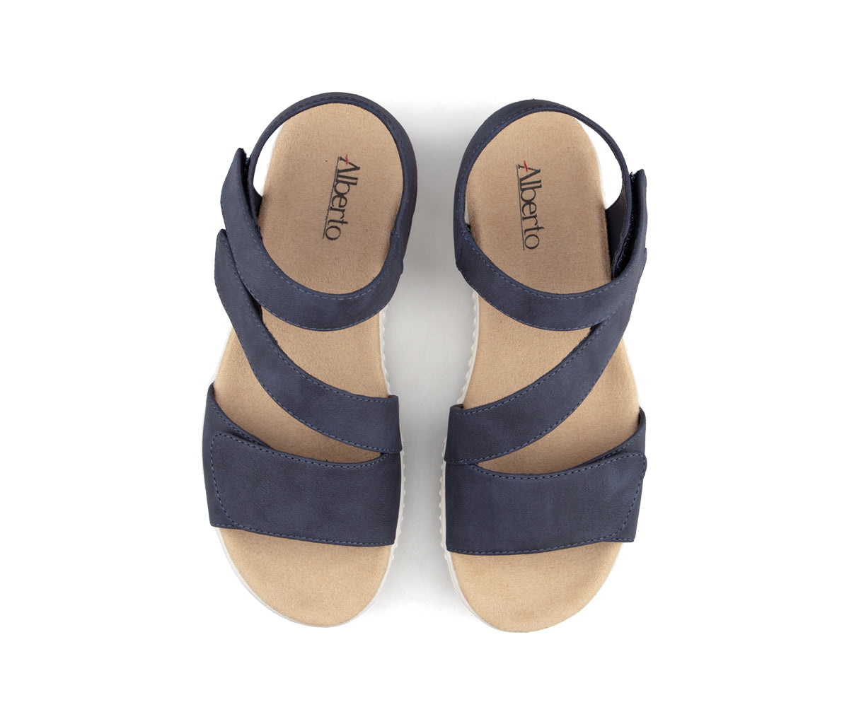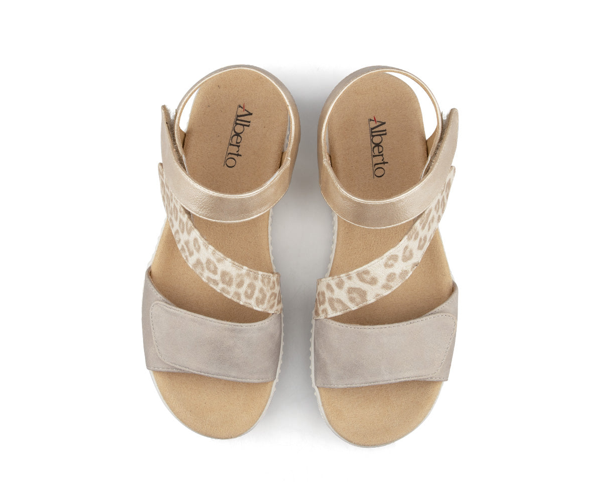 Sandales à talon compensé Alberto pour femmes en cuir synthétique nubuck, parfaites pour allier élégance et confort au quotidien. La fermeture velcro assure un ajustement rapide et sécuritaire. La semelle intérieure en microfibre procure une sensation douce sous le pied, tandis que la semelle extérieure en TPR offre stabilité et adhérence.
