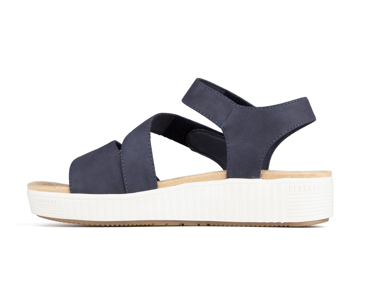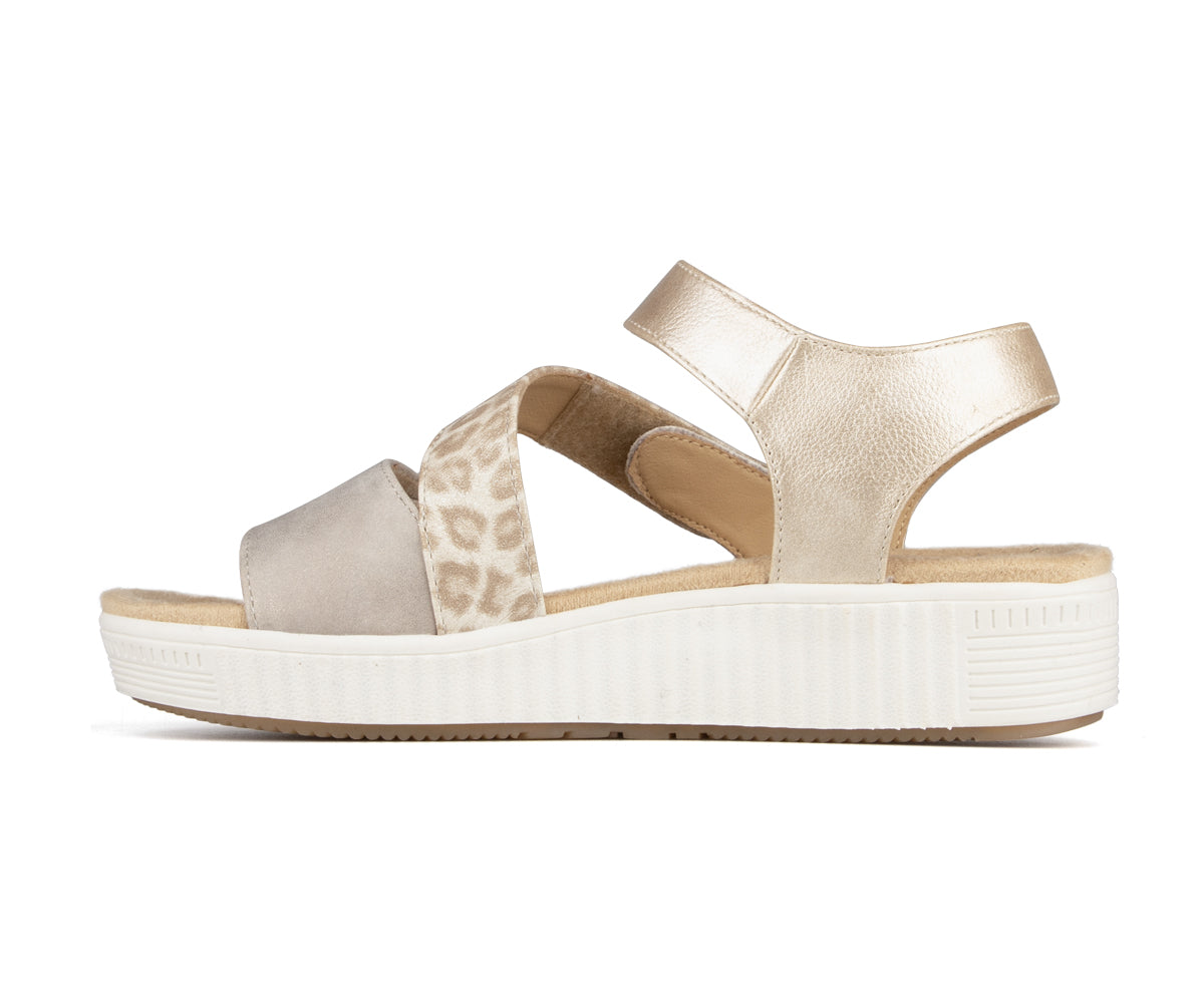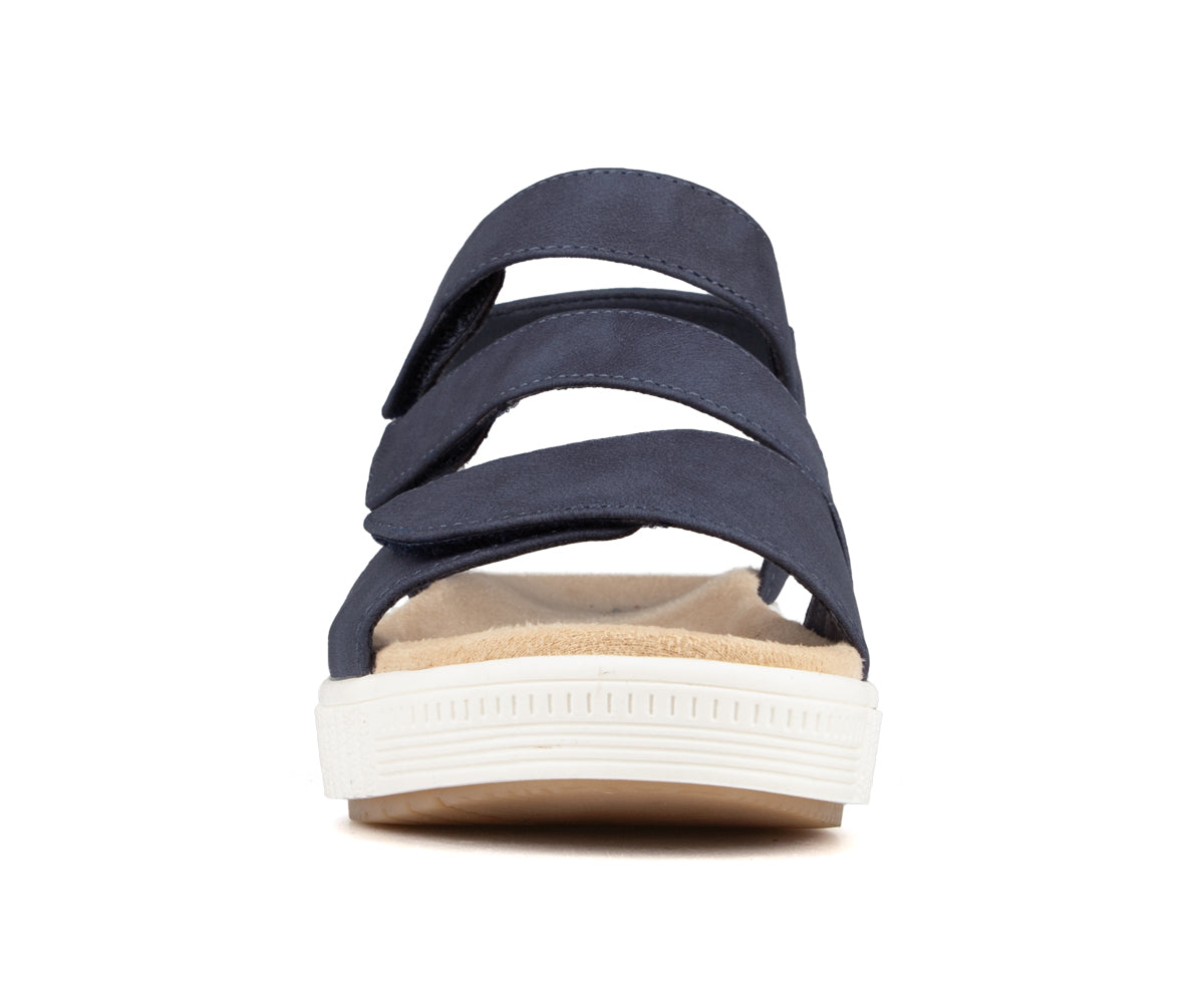 Sandales à talon compensé Alberto pour femmes en cuir synthétique nubuck, parfaites pour allier élégance et confort au quotidien. La fermeture velcro assure un ajustement rapide et sécuritaire. La semelle intérieure en microfibre procure une sensation douce sous le pied, tandis que la semelle extérieure en TPR offre stabilité et adhérence.